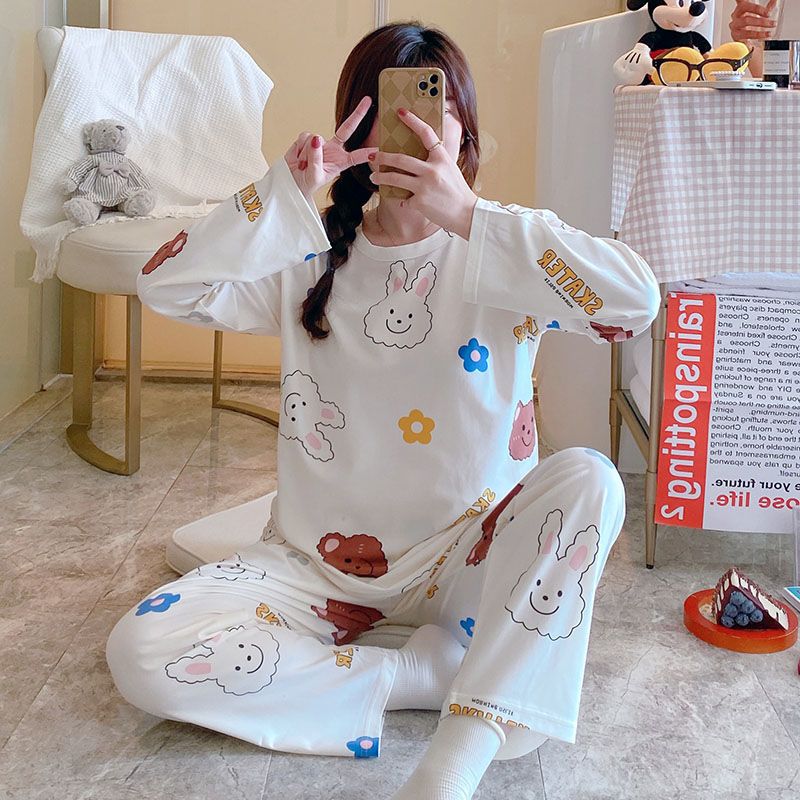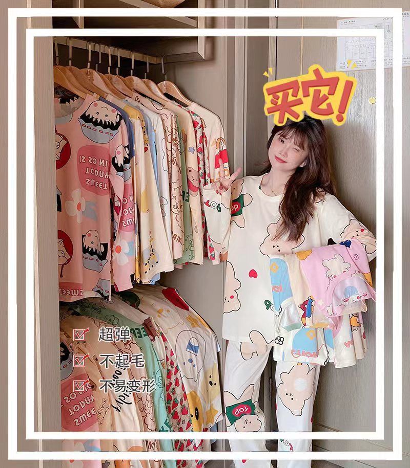 新款睡衣睡衣女春秋可爱长袖可出门休闲时尚洋气网红家居服套装