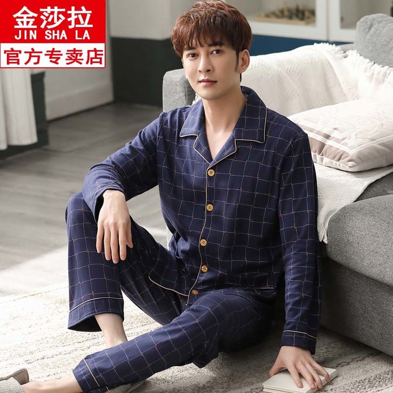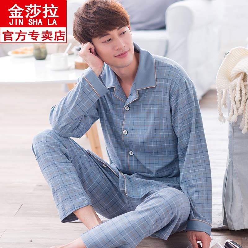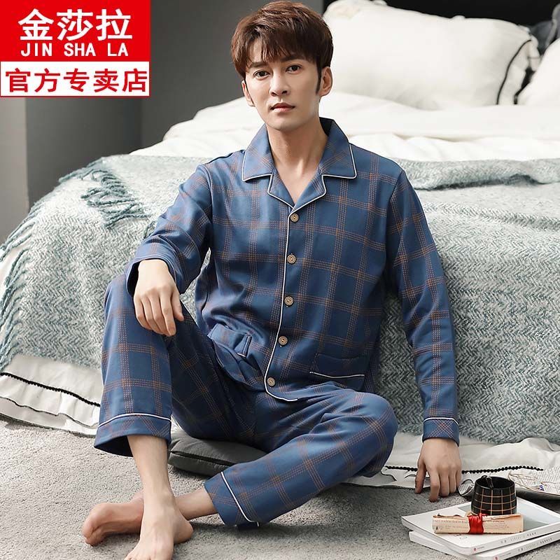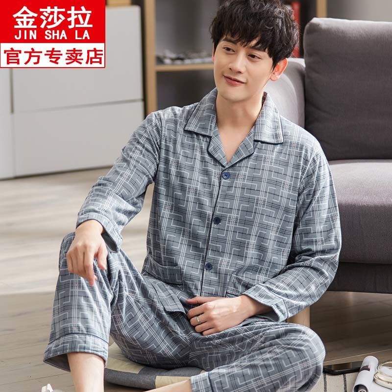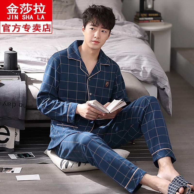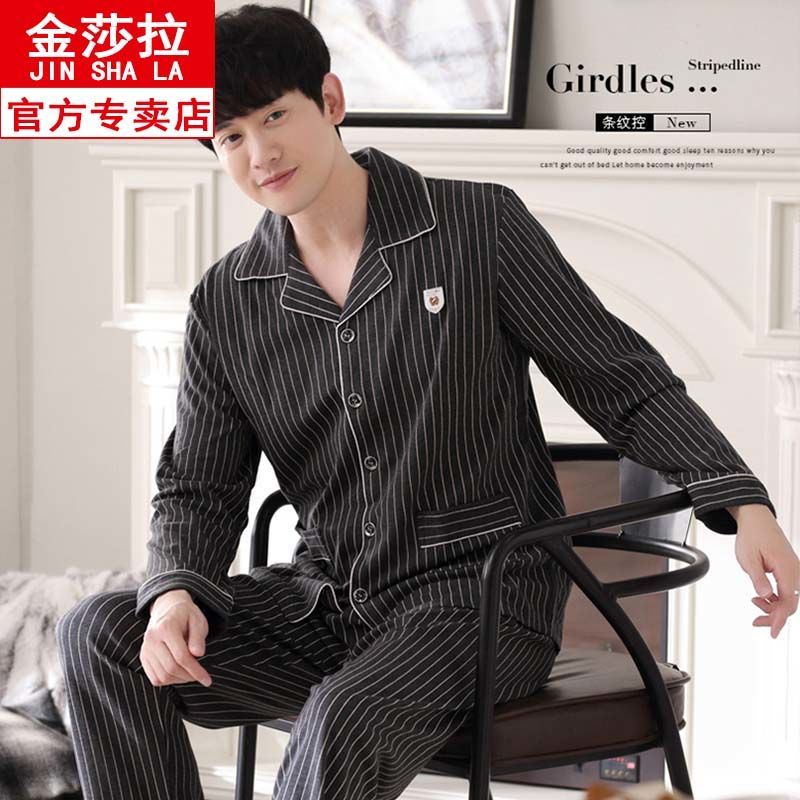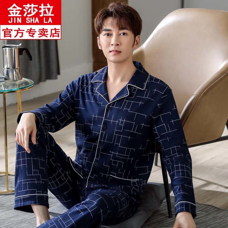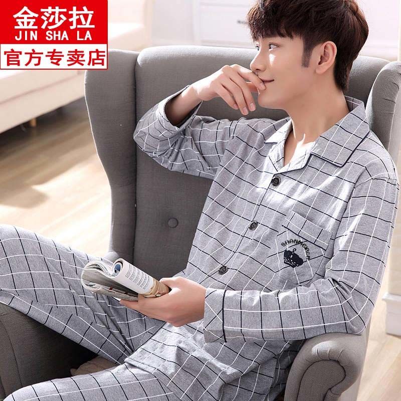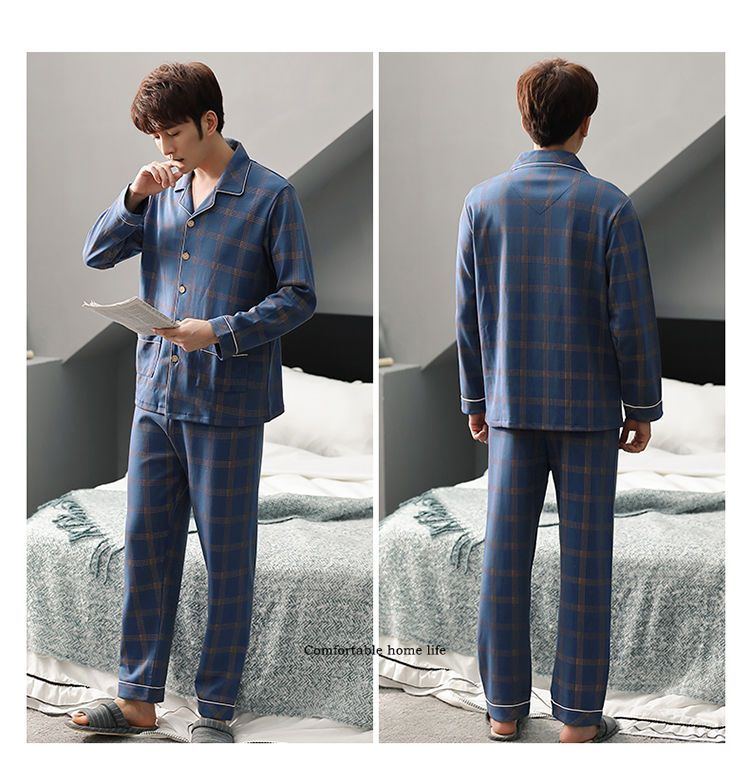 100%纯棉睡衣秋冬季男长袖春秋款男士青少中年开衫休闲家居服套装