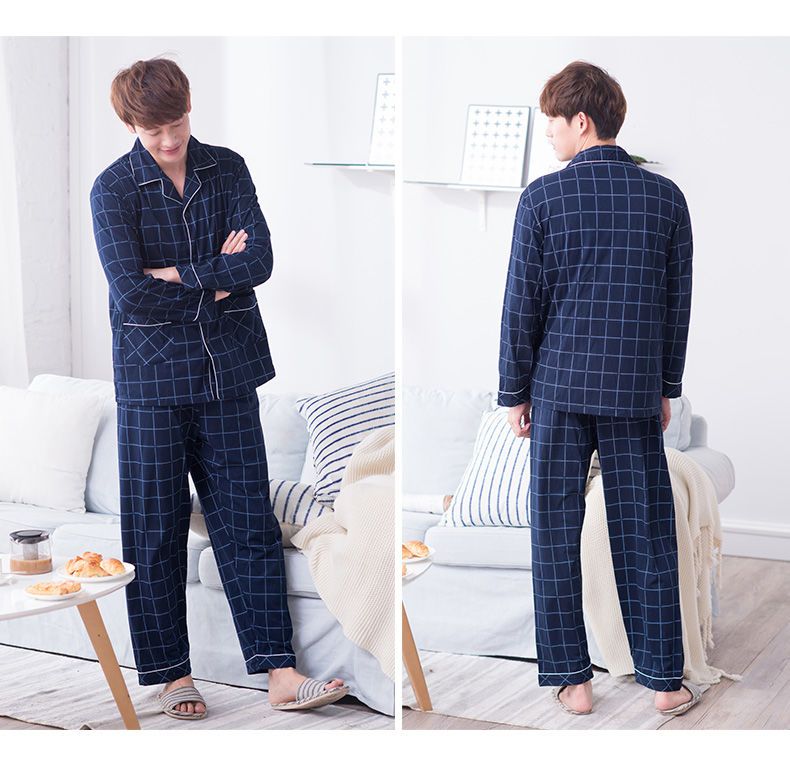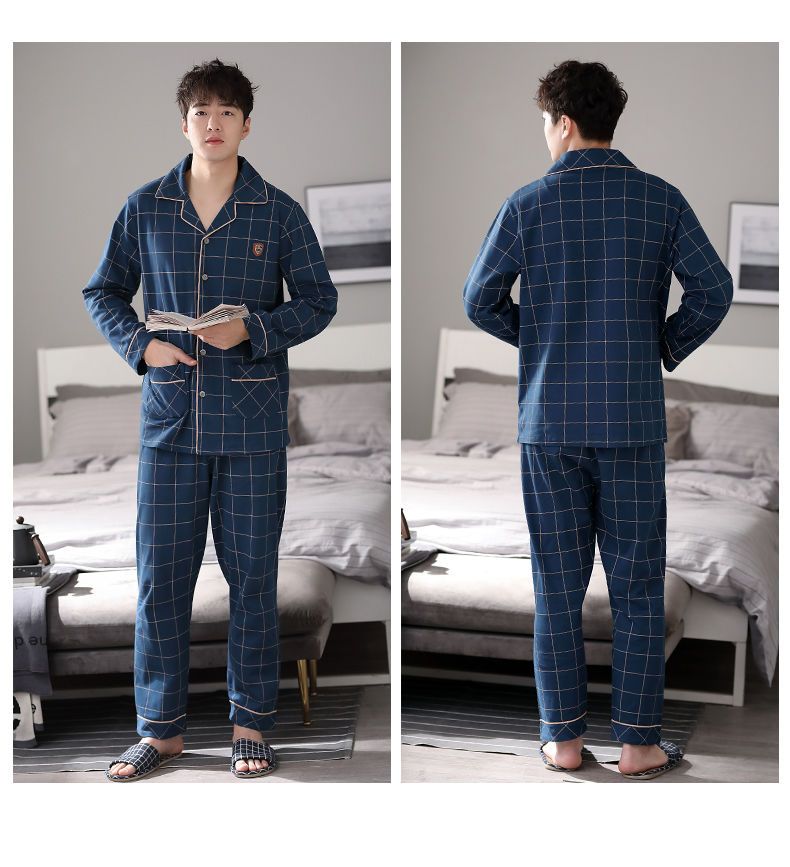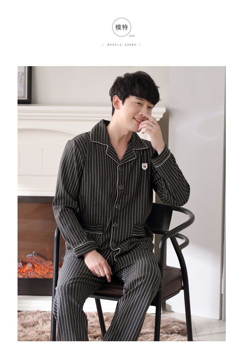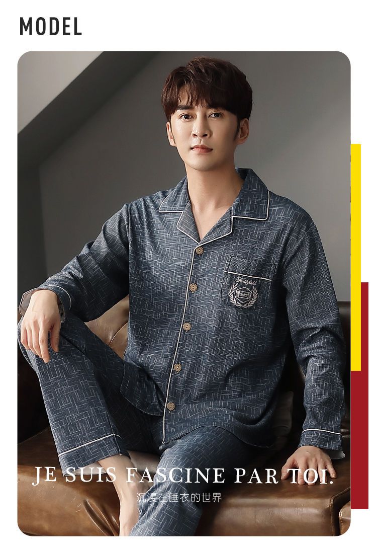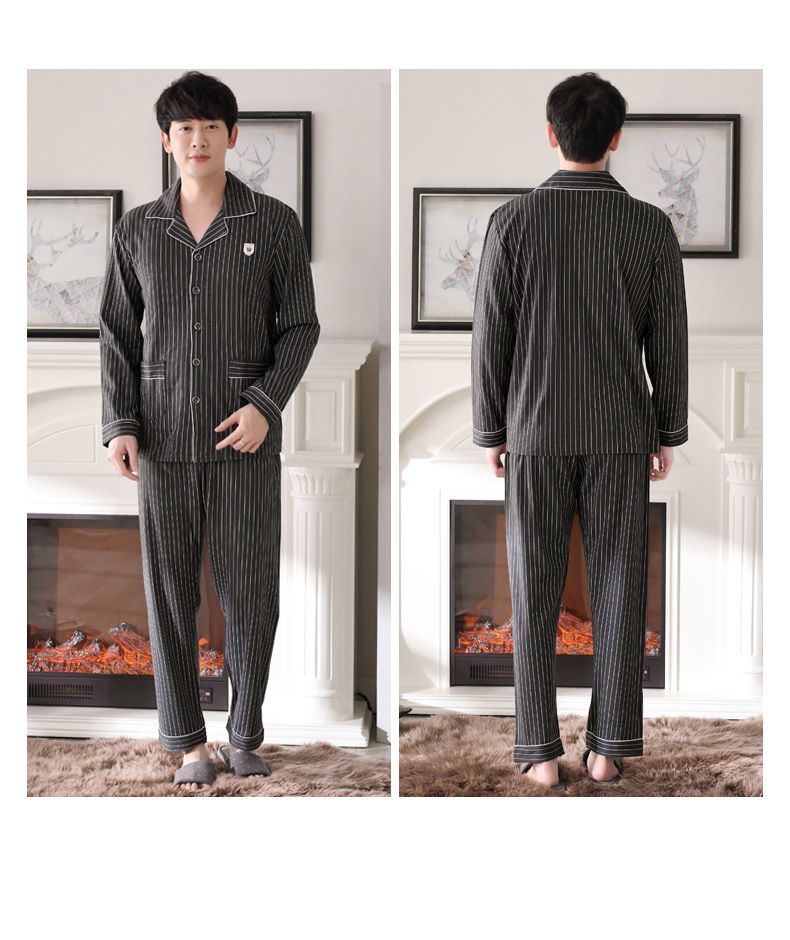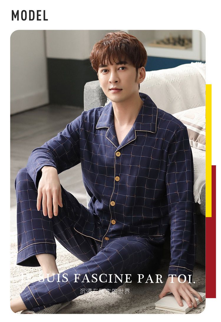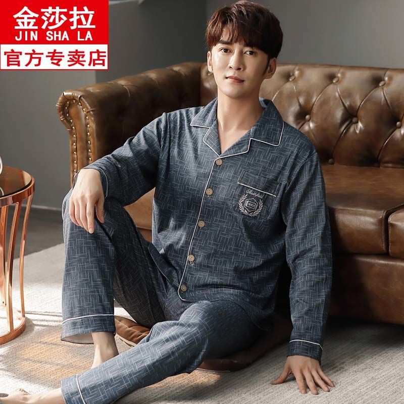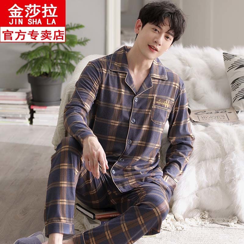 100%纯棉睡衣秋冬季男长袖春秋款男士青少中年开衫休闲家居服套装