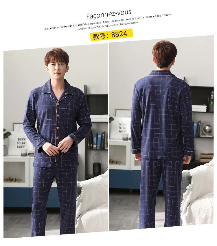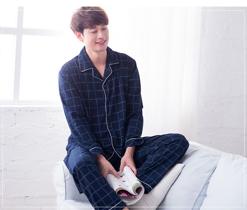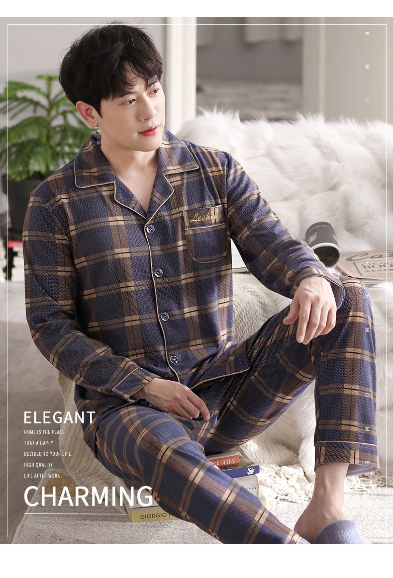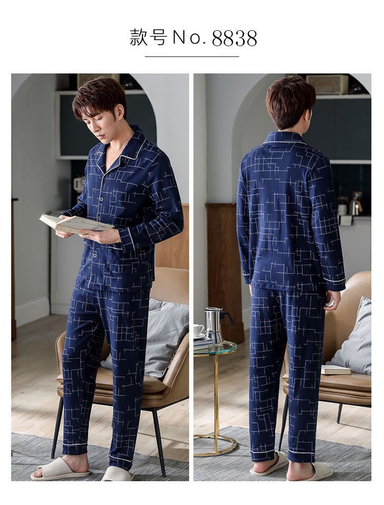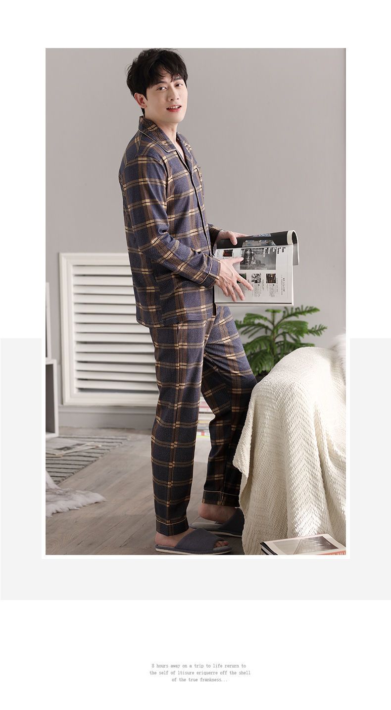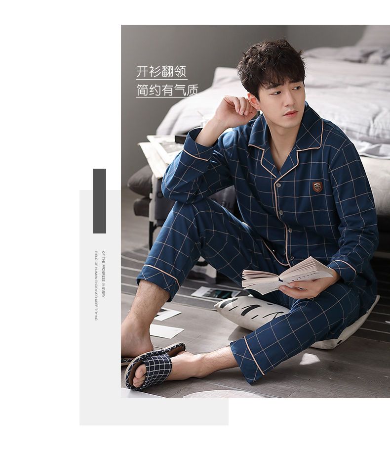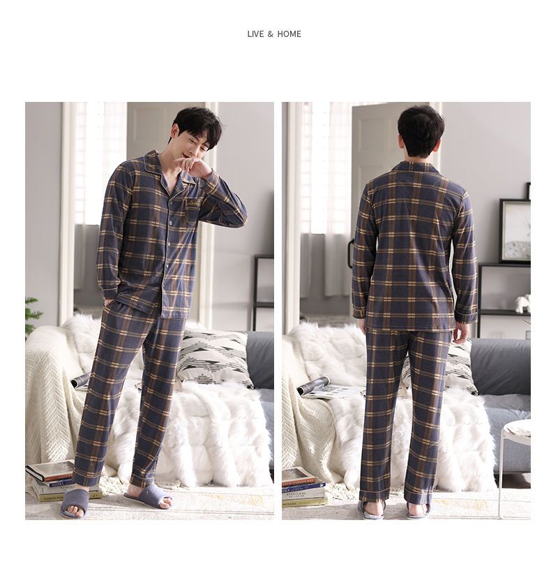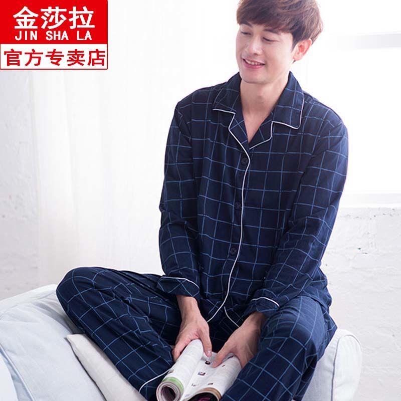 100%纯棉睡衣秋冬季男长袖春秋款男士青少中年开衫休闲家居服套装