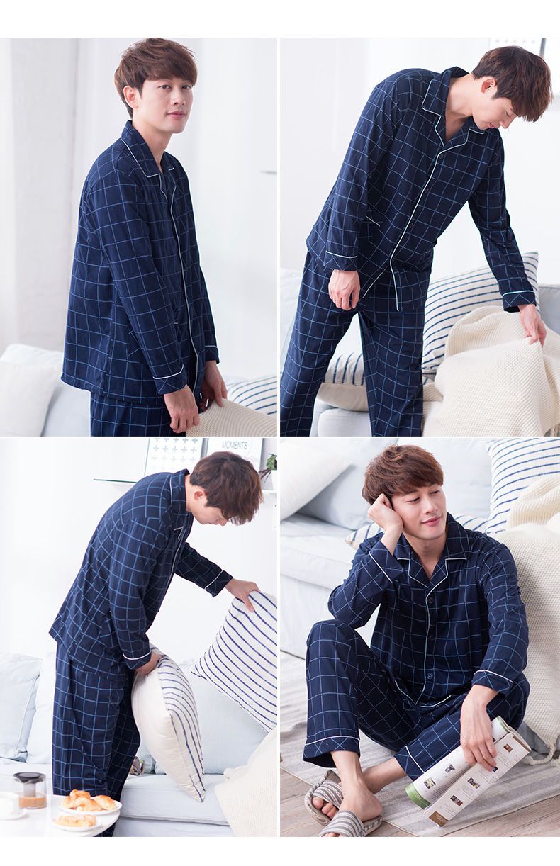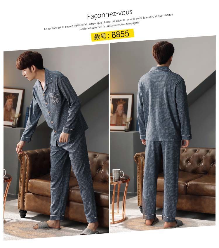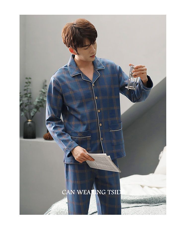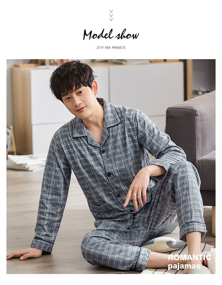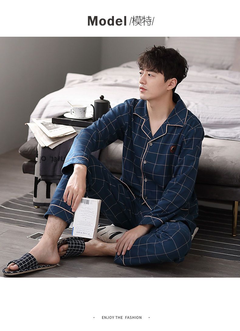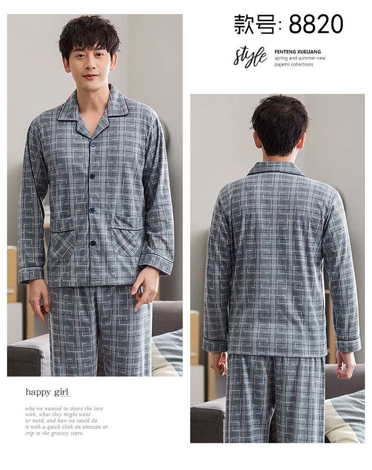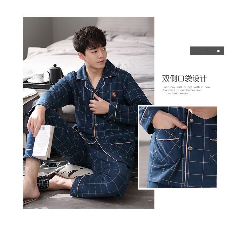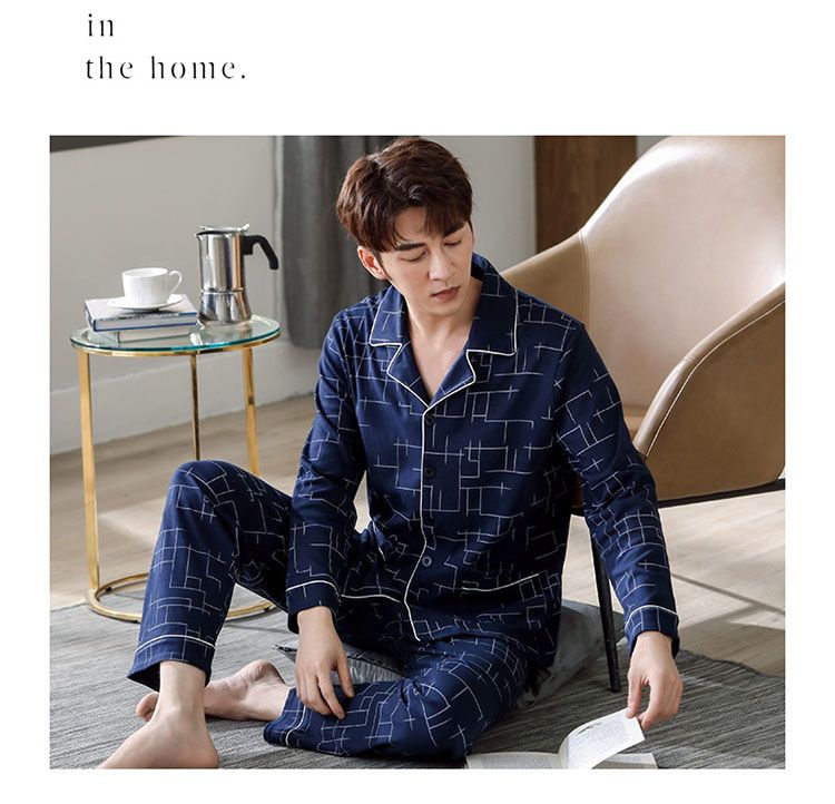 100%纯棉睡衣秋冬季男长袖春秋款男士青少中年开衫休闲家居服套装