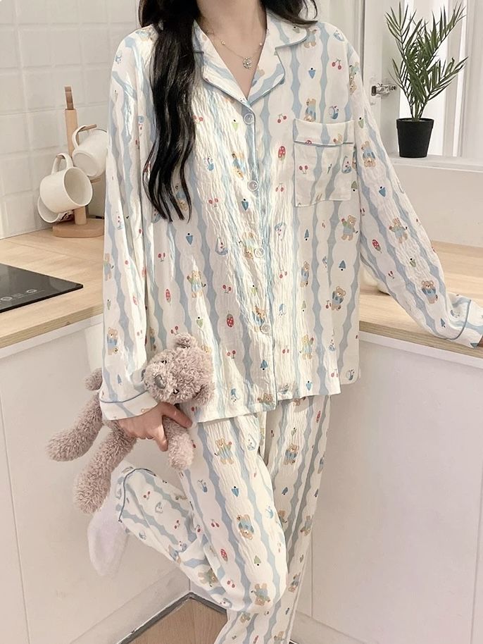 甜美卡通云朵棉睡衣女春秋季长袖长裤学生少女感可外穿家居服套装