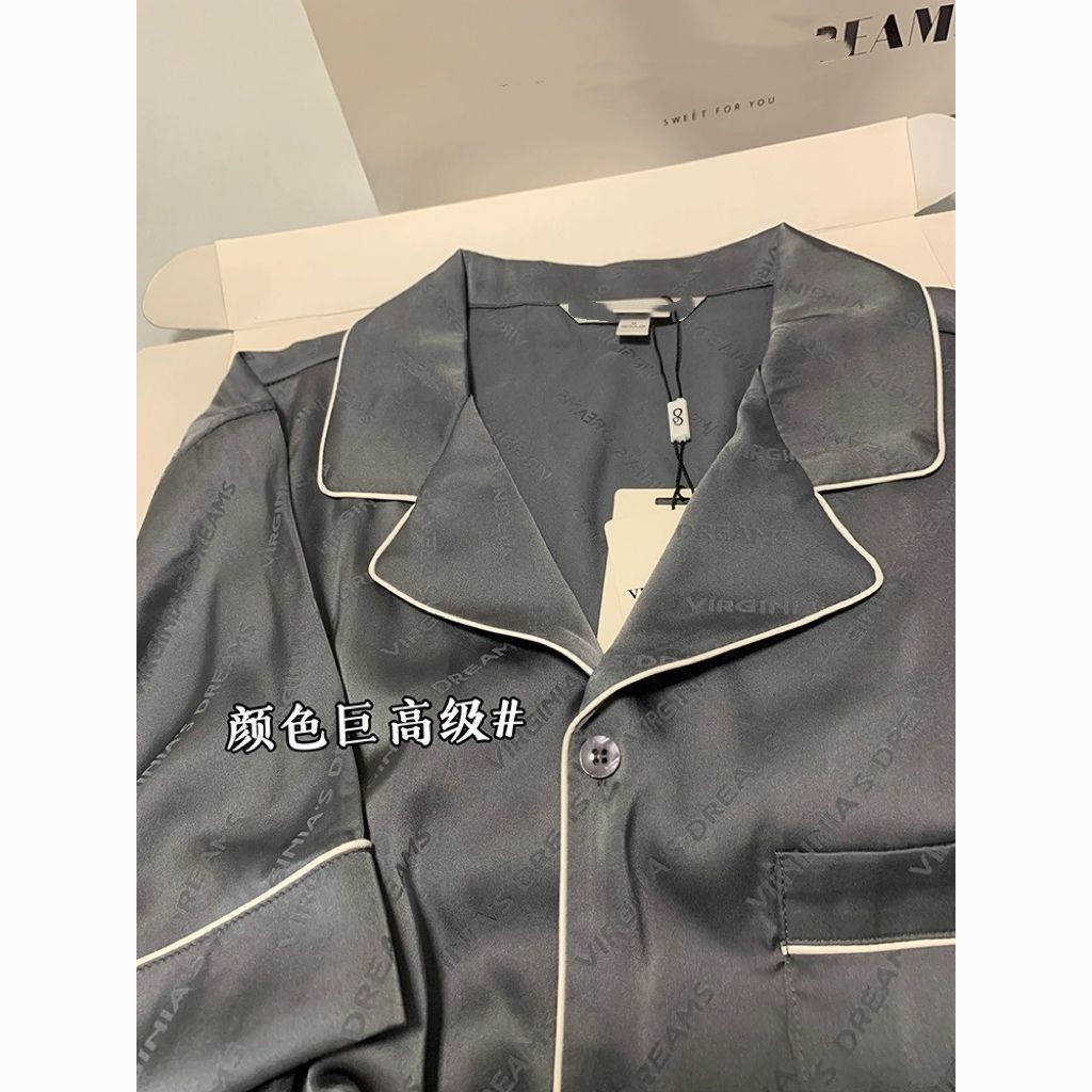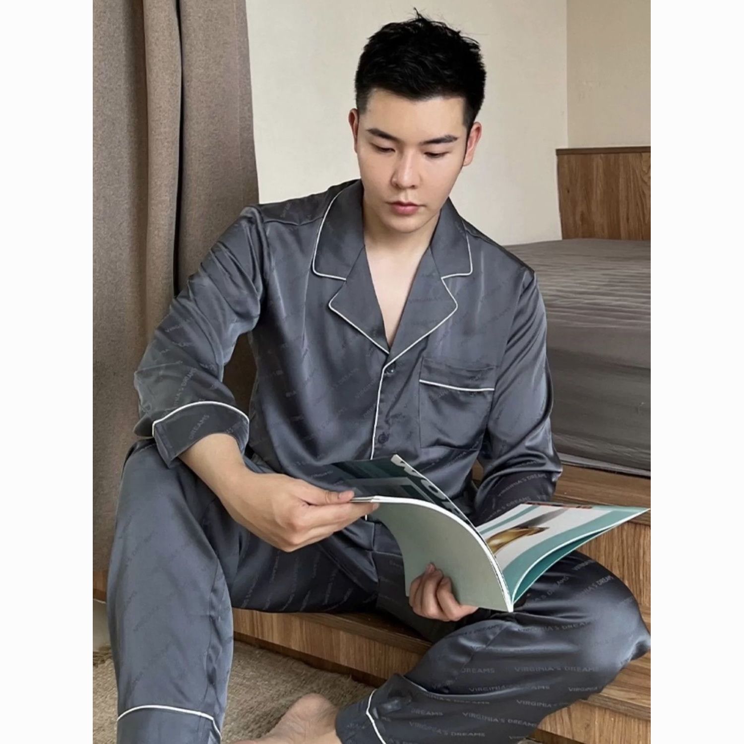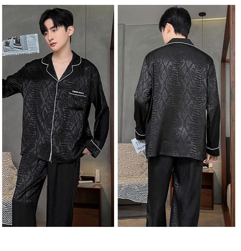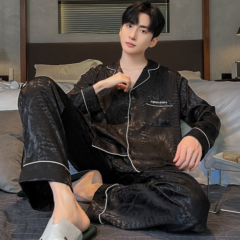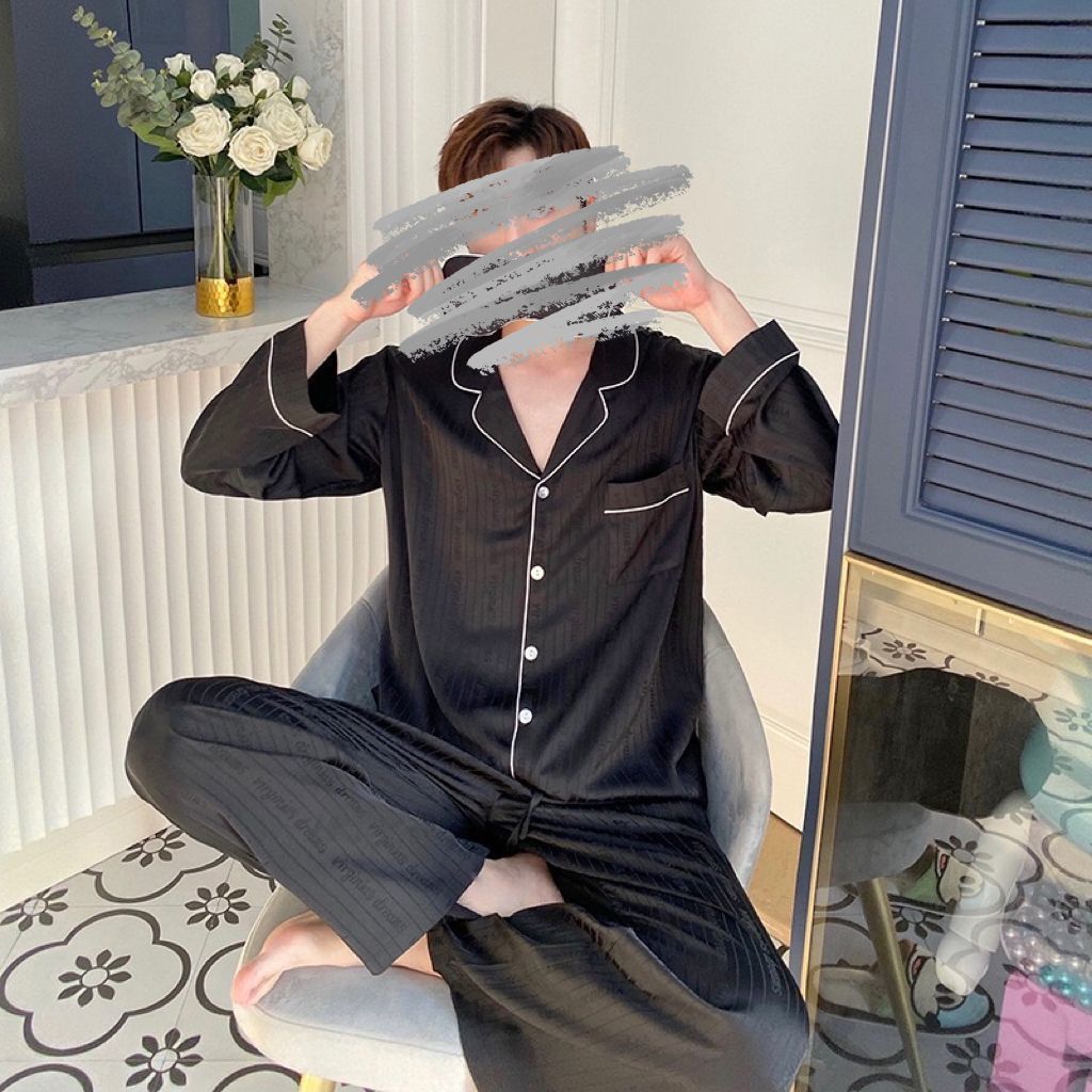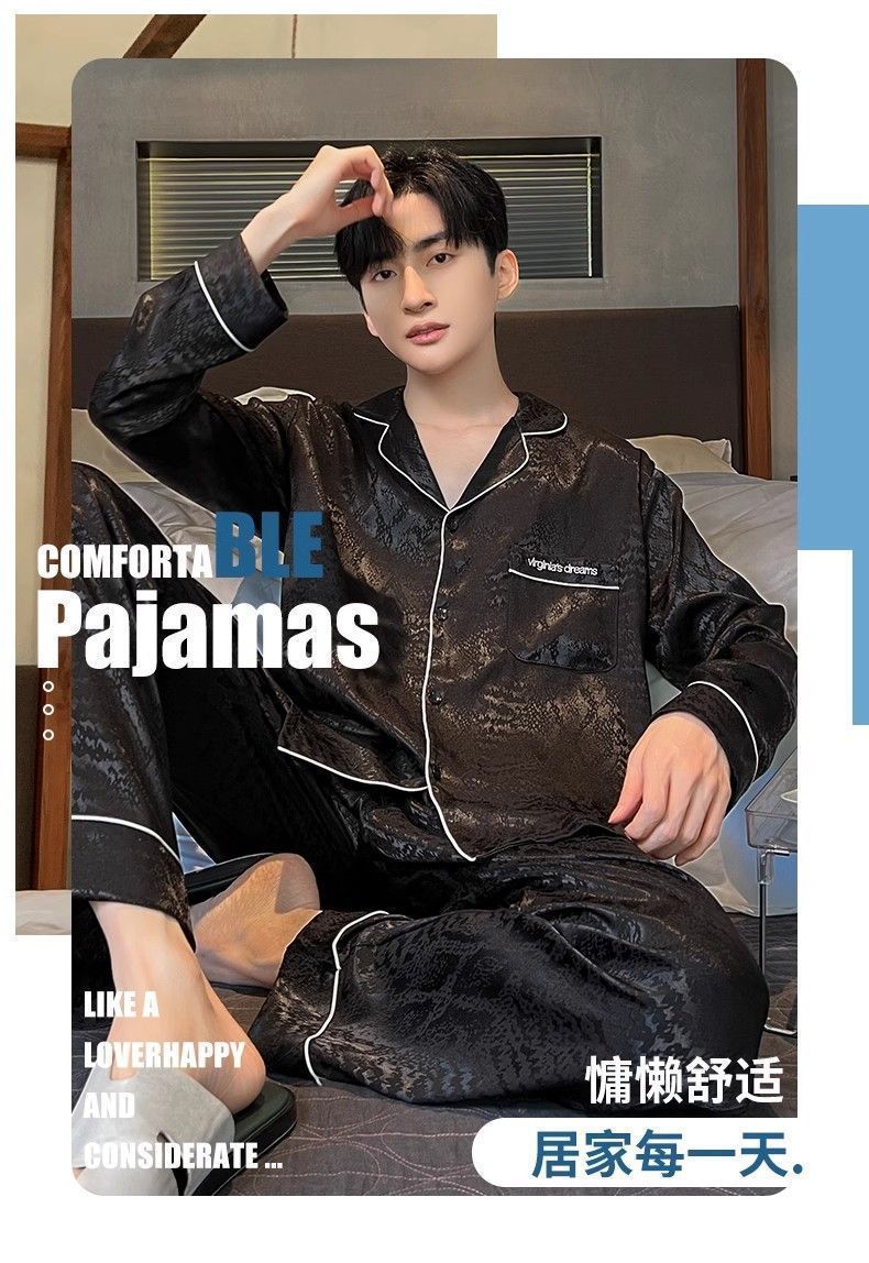 男士睡衣春秋季冰丝豪华薄款长袖男士大码青少年丝绸家居服套装