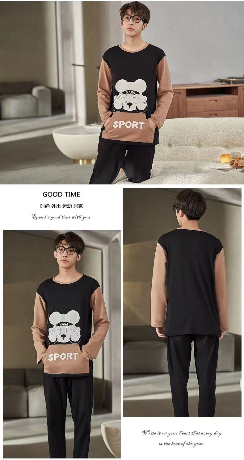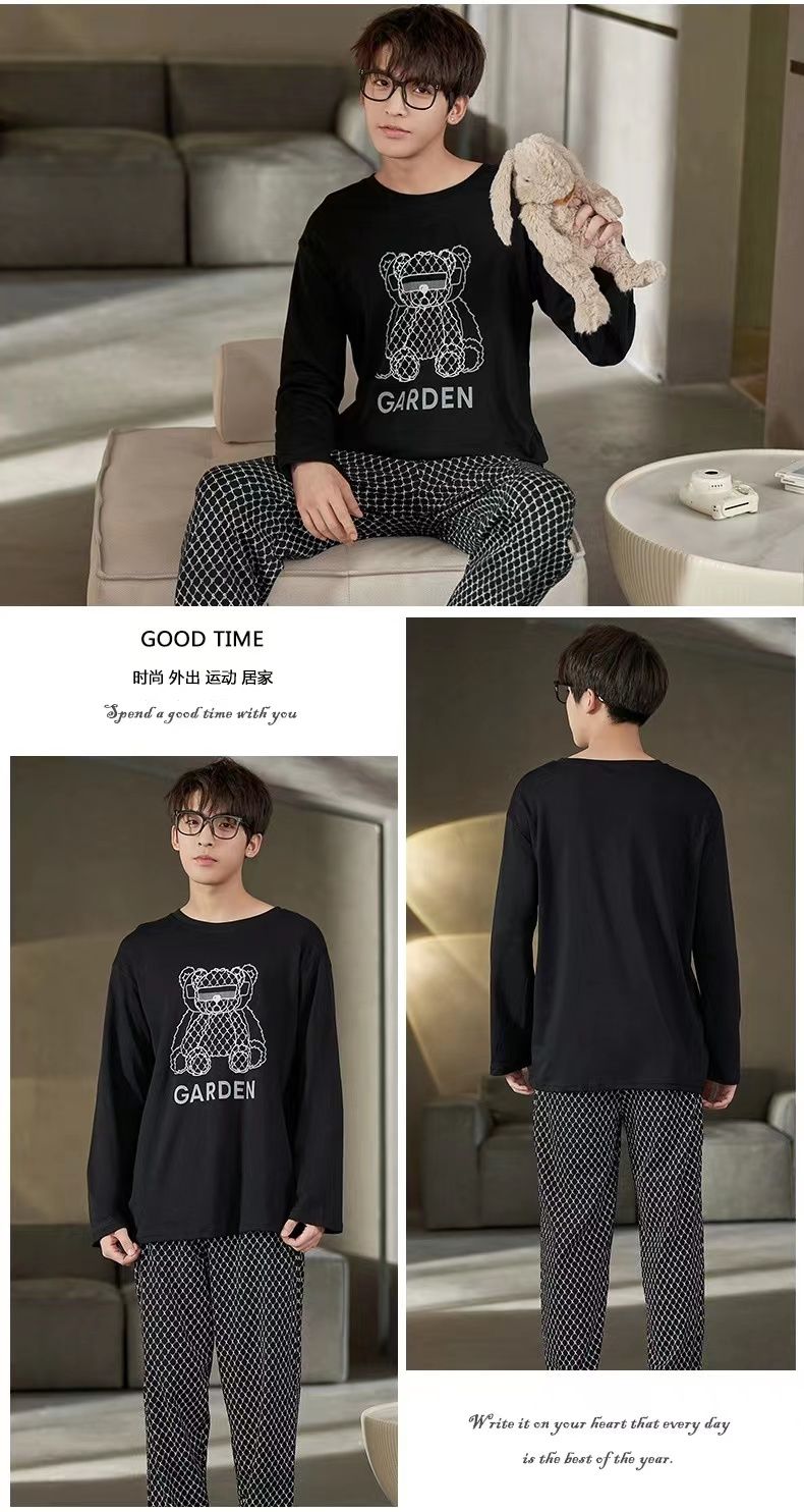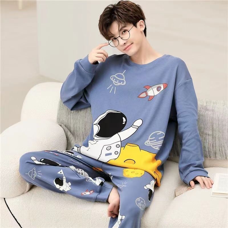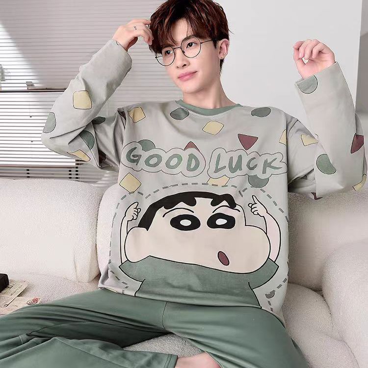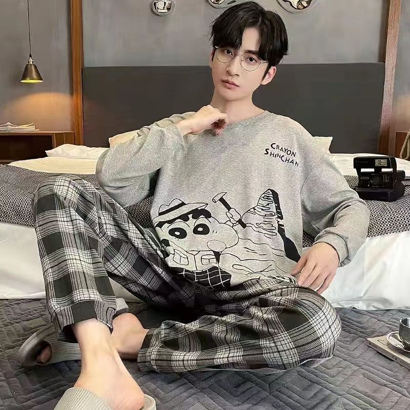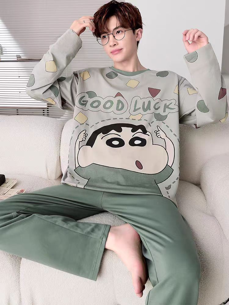 新款春秋季睡衣男长袖可爱小新学生卡通大码青少年薄款套装家居服
