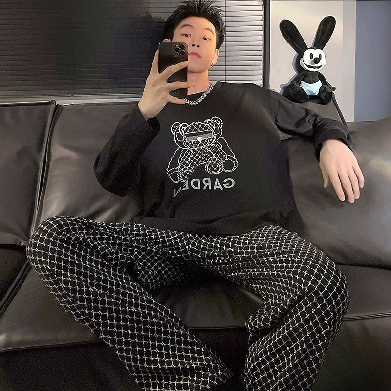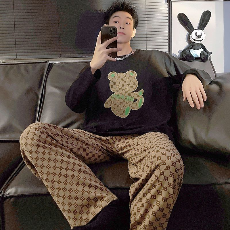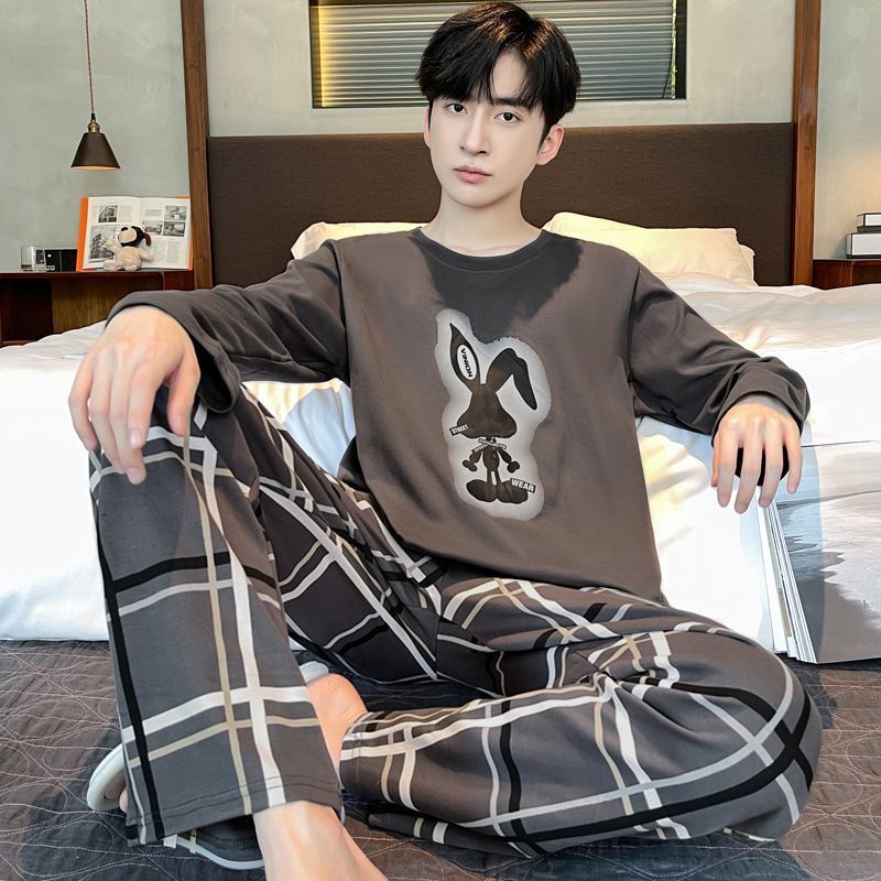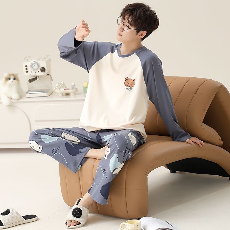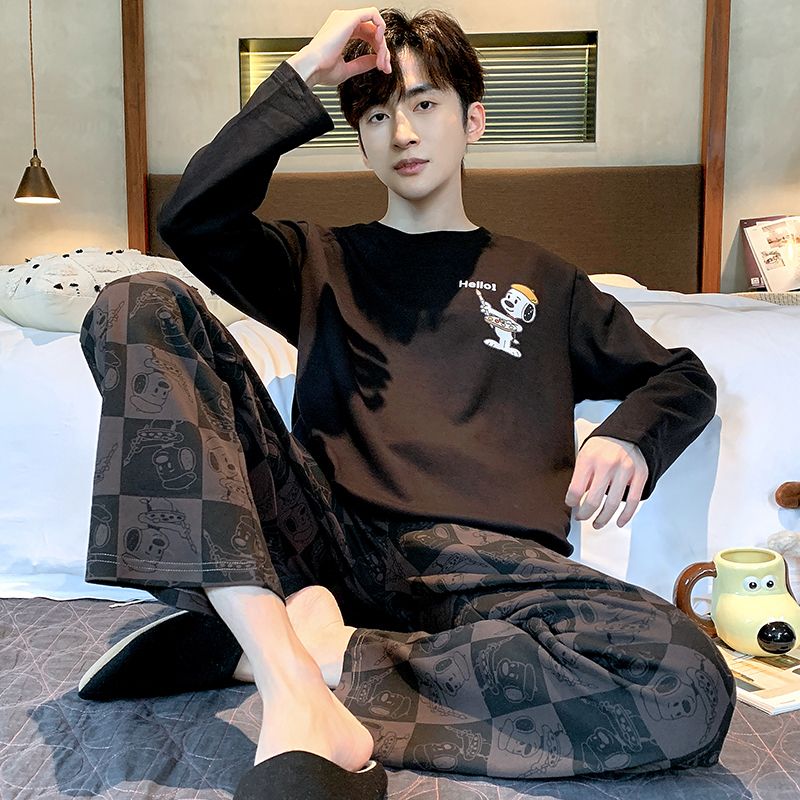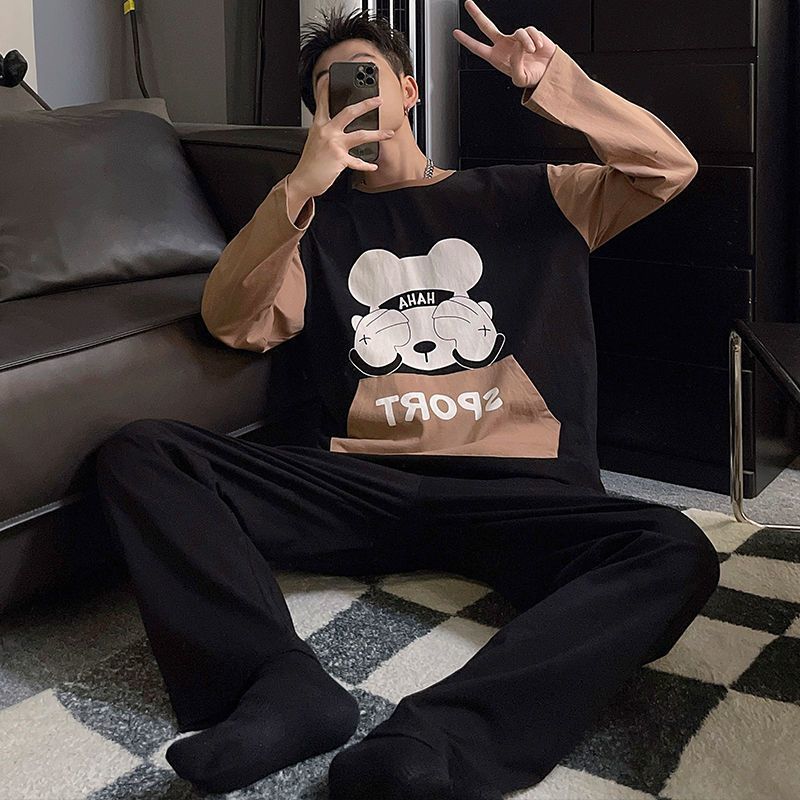 新款春秋季睡衣男长袖可爱小新学生卡通大码青少年薄款套装家居服