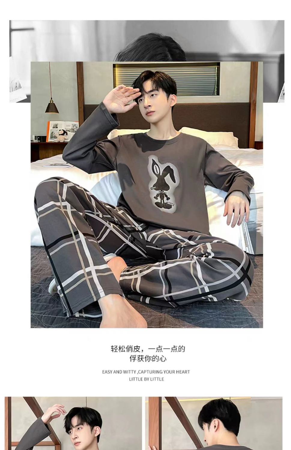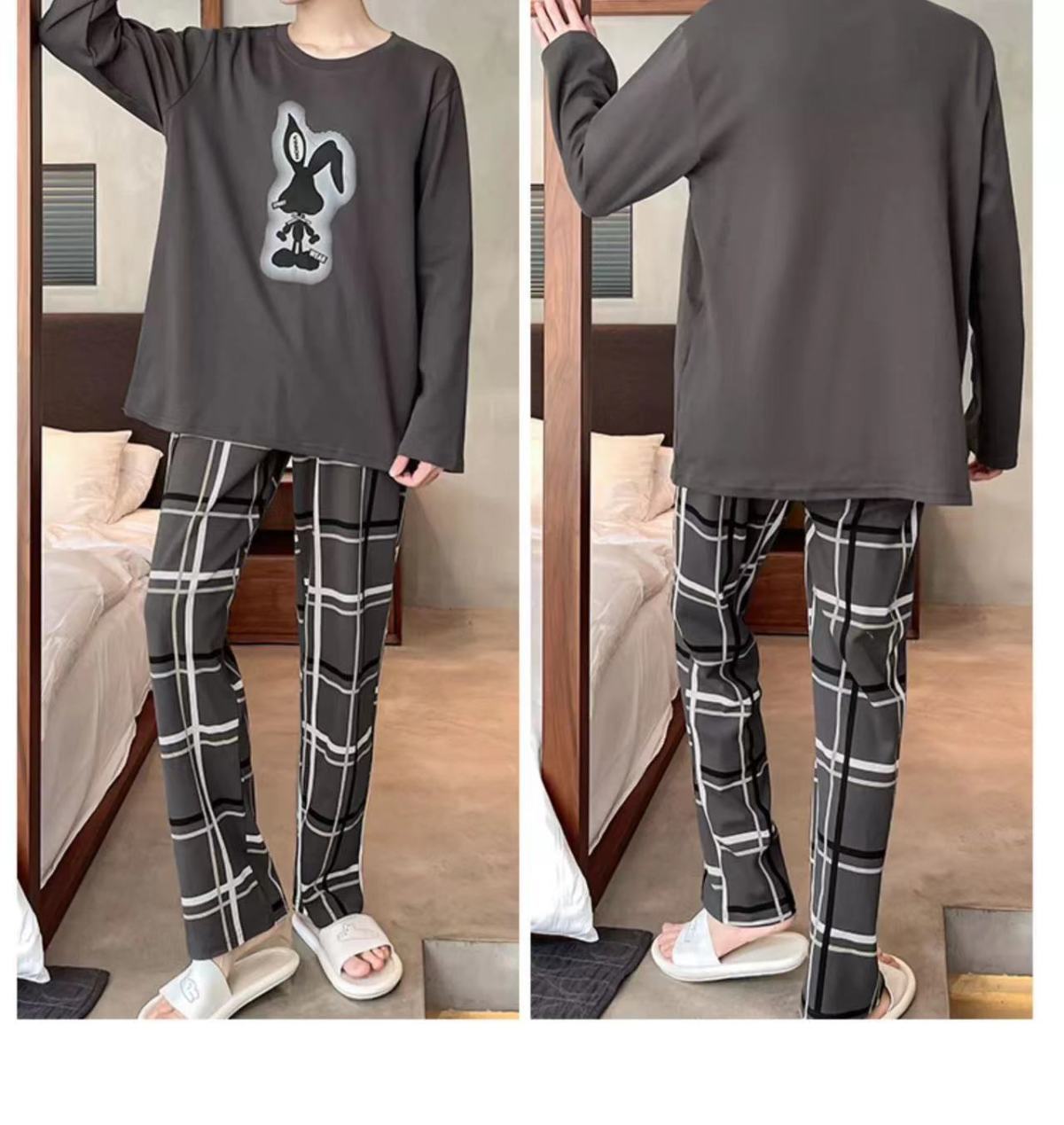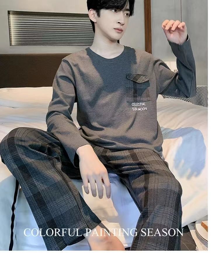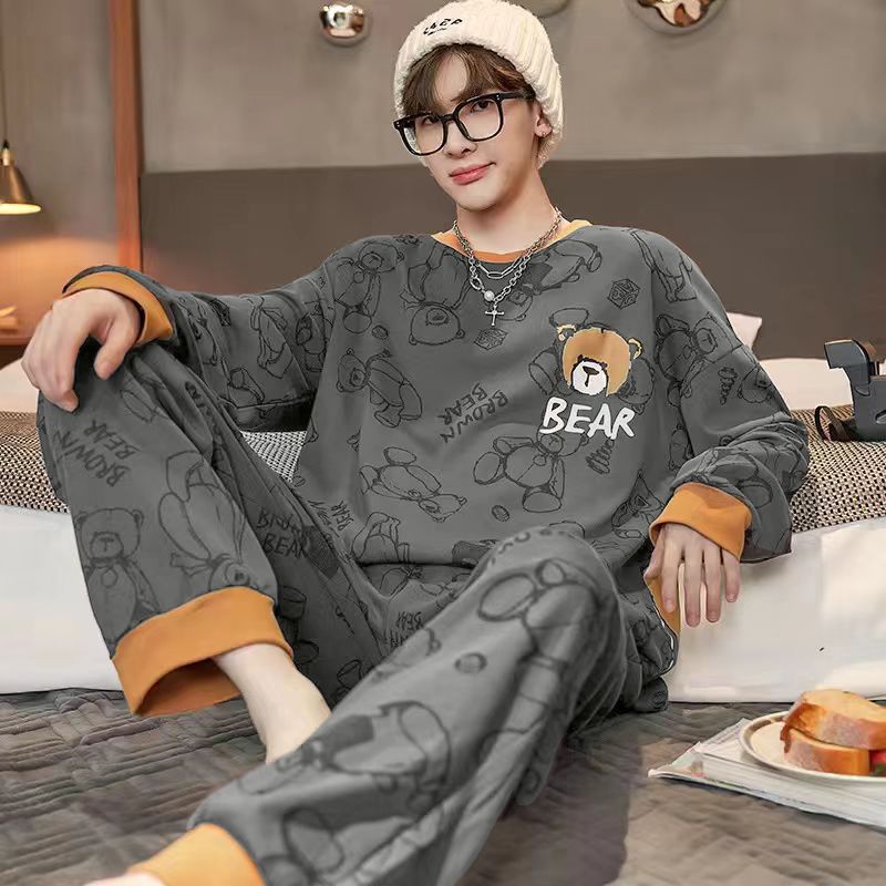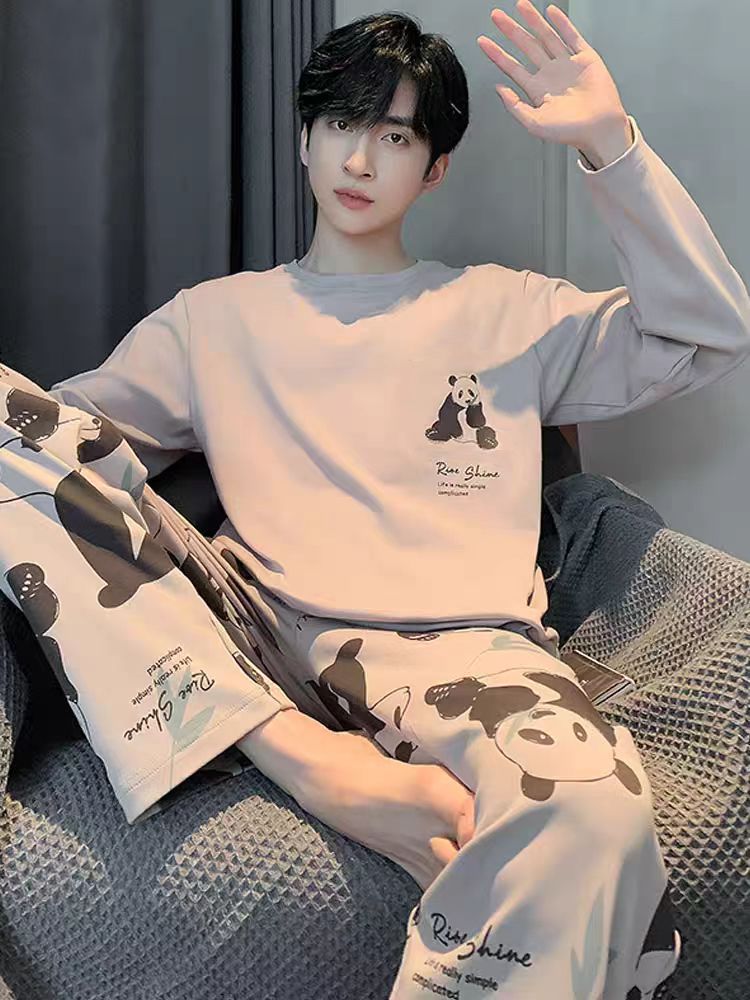 新款春秋季睡衣男长袖可爱小新学生卡通大码青少年薄款套装家居服