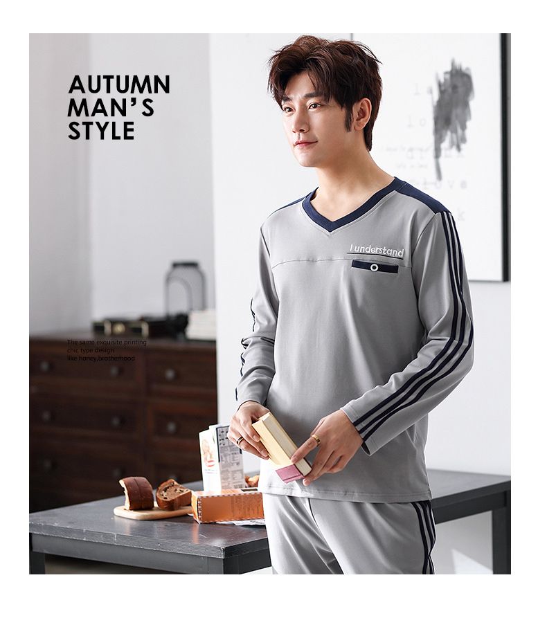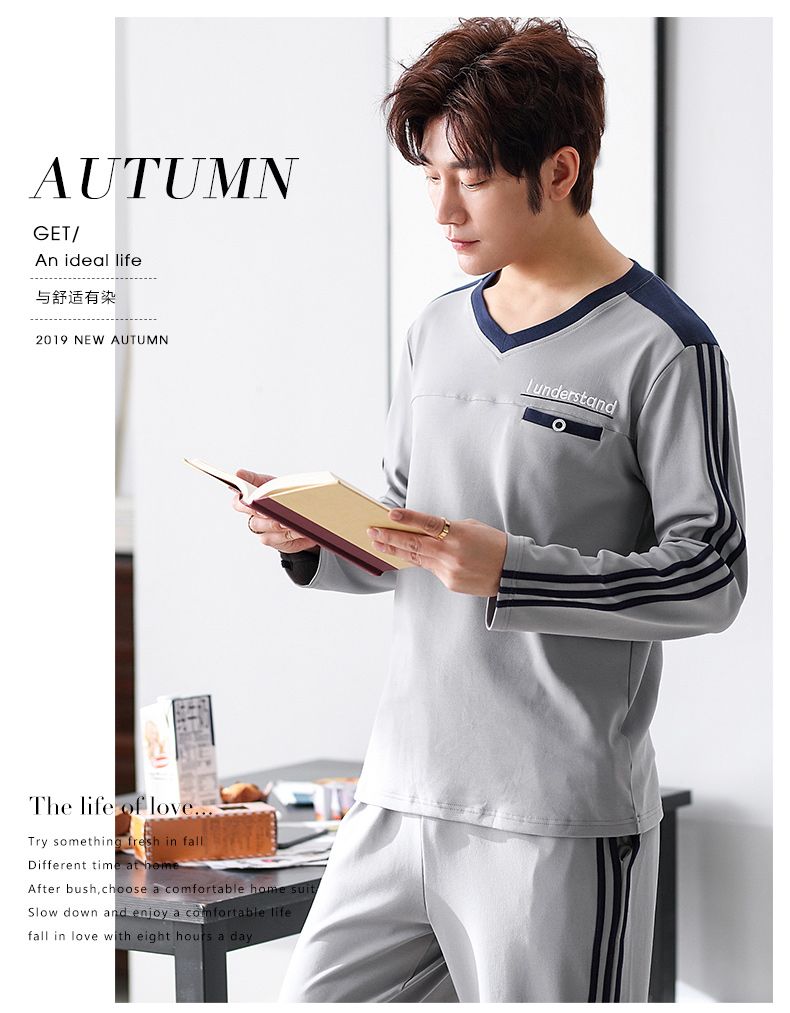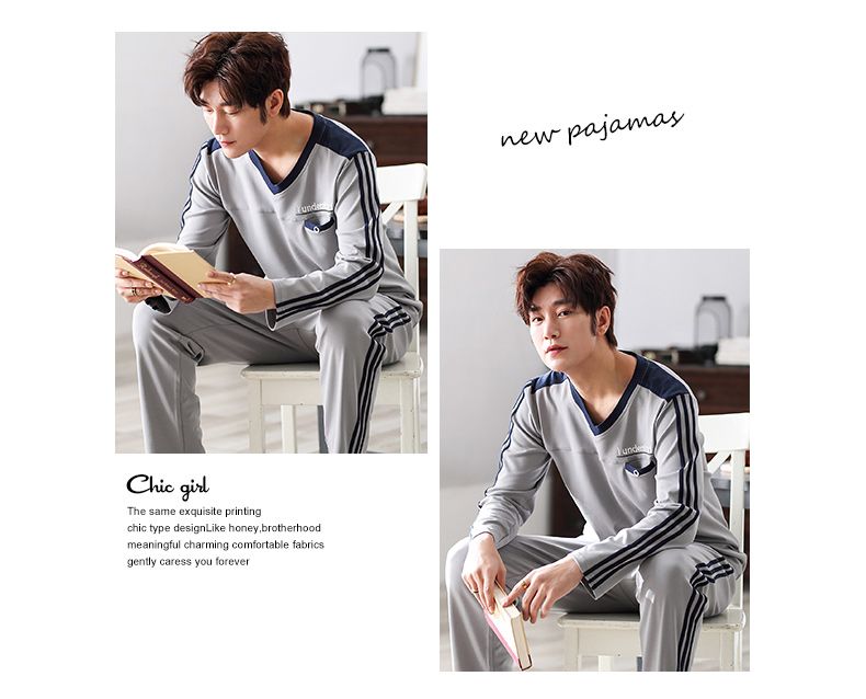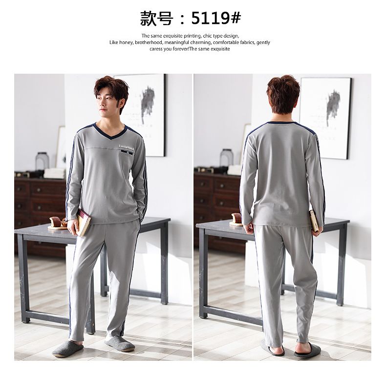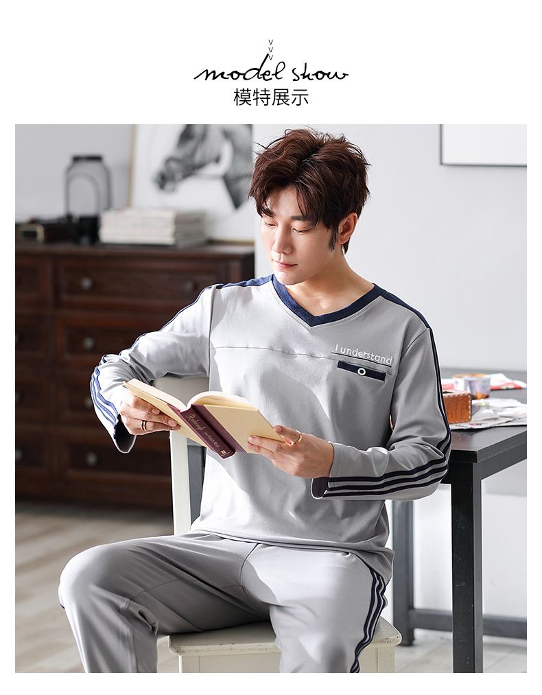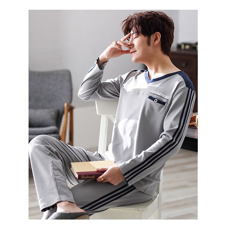 100%纯棉男士睡衣春秋款长袖长裤大码青年宽松夏天薄款家居服套装