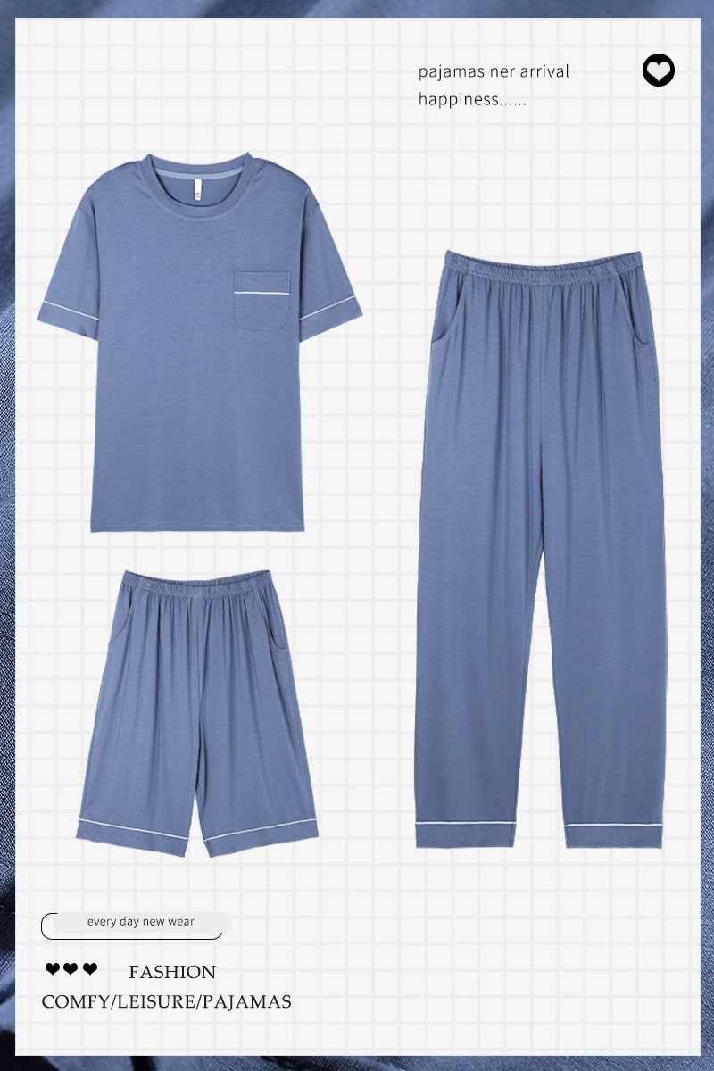 莫代尔睡衣男款男士睡衣短袖短裤长裤夏天家居服套装冰凉感大码