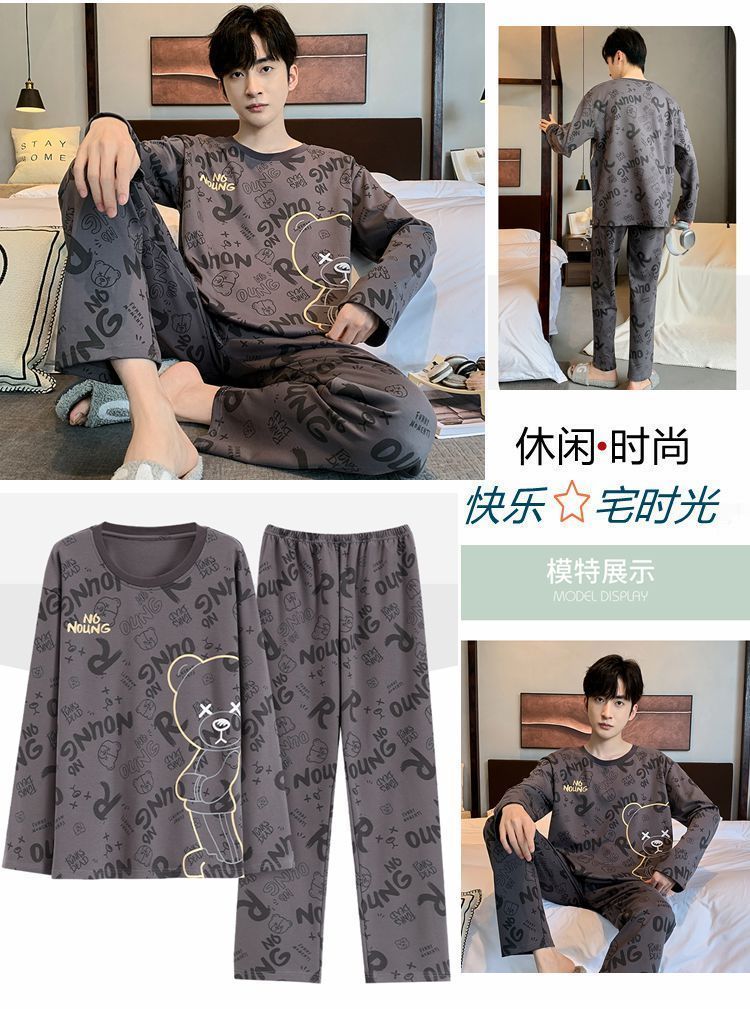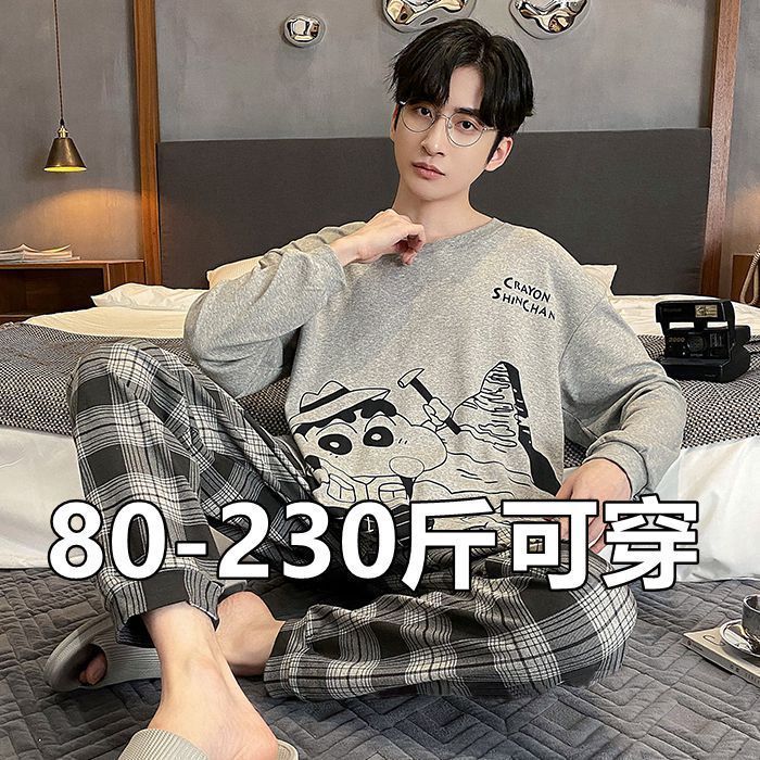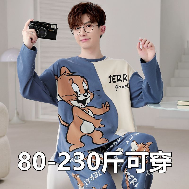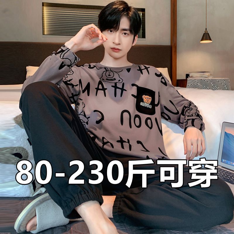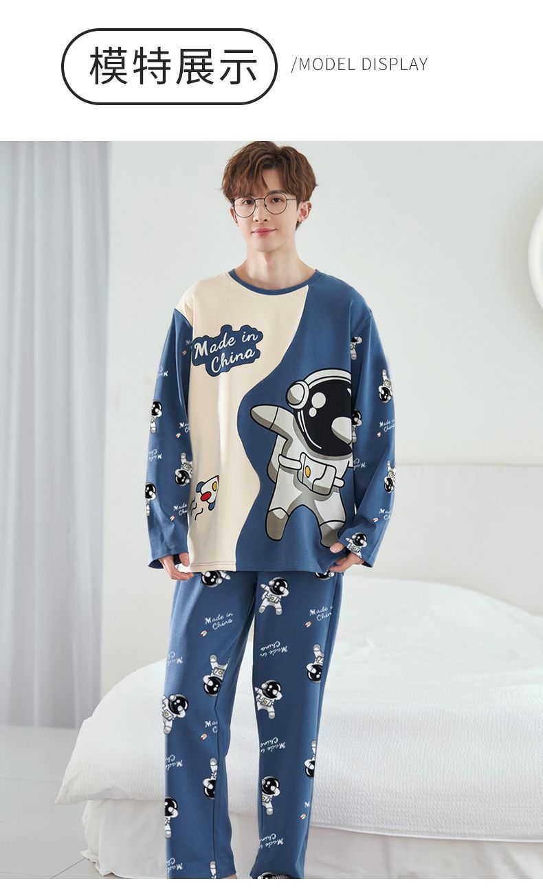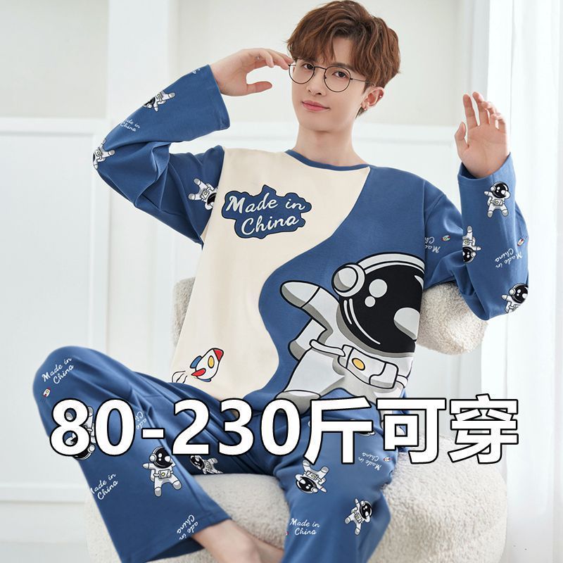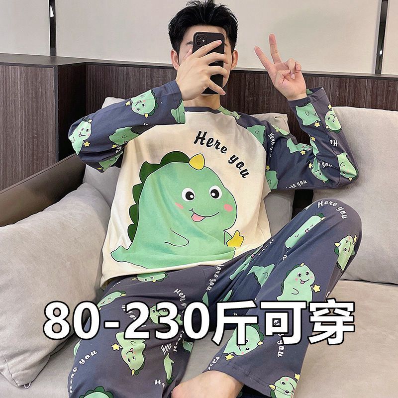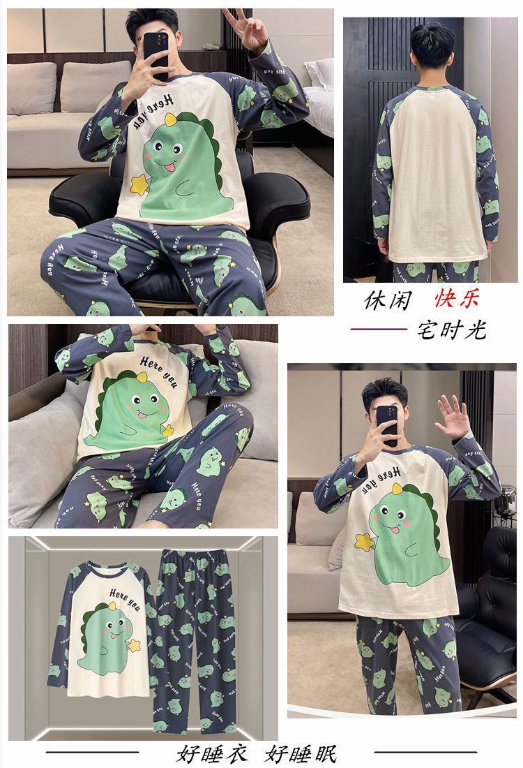 新春秋男士牛奶棉长袖睡衣可爱卡通圆领青少年大码两件套装家居服