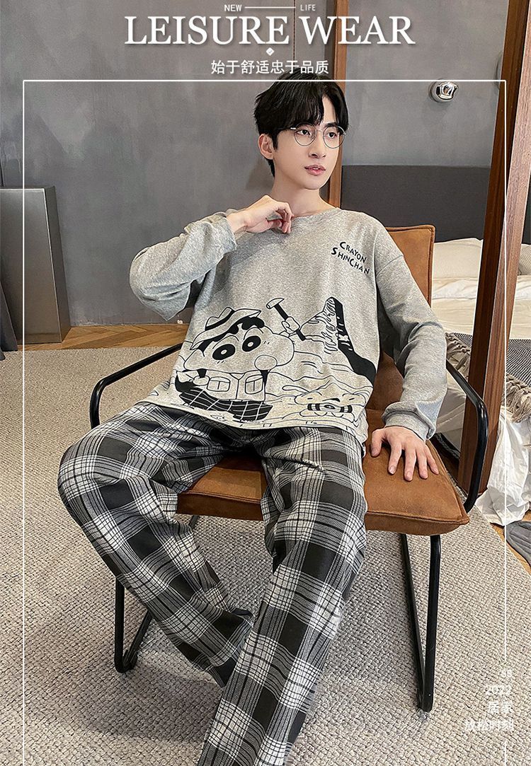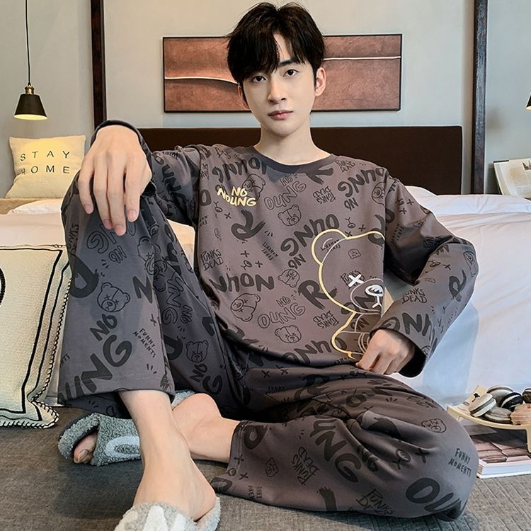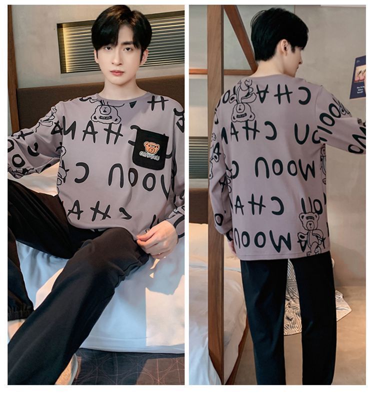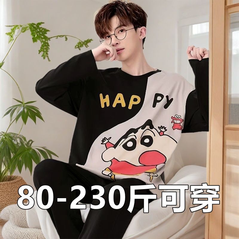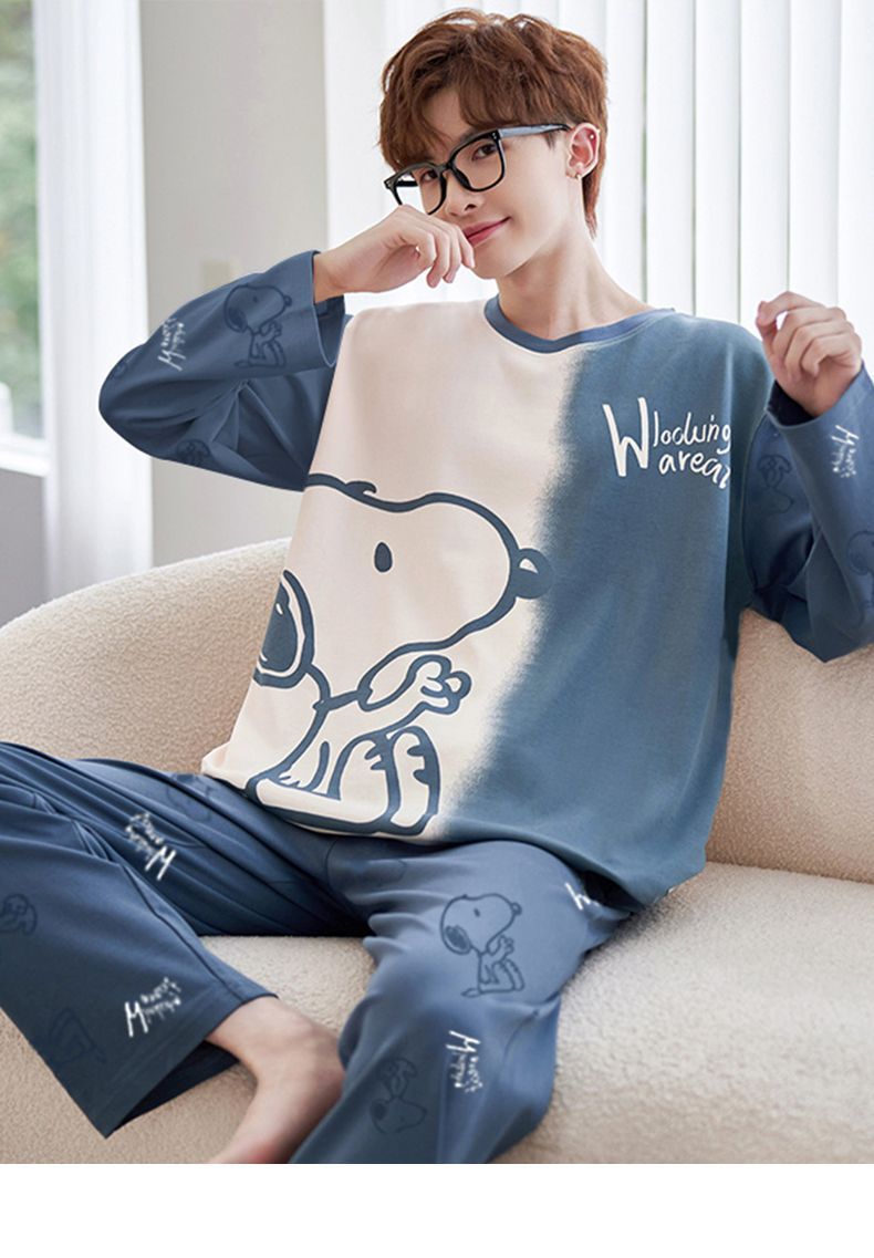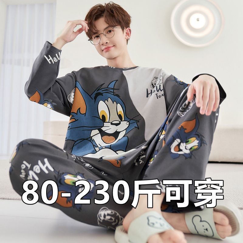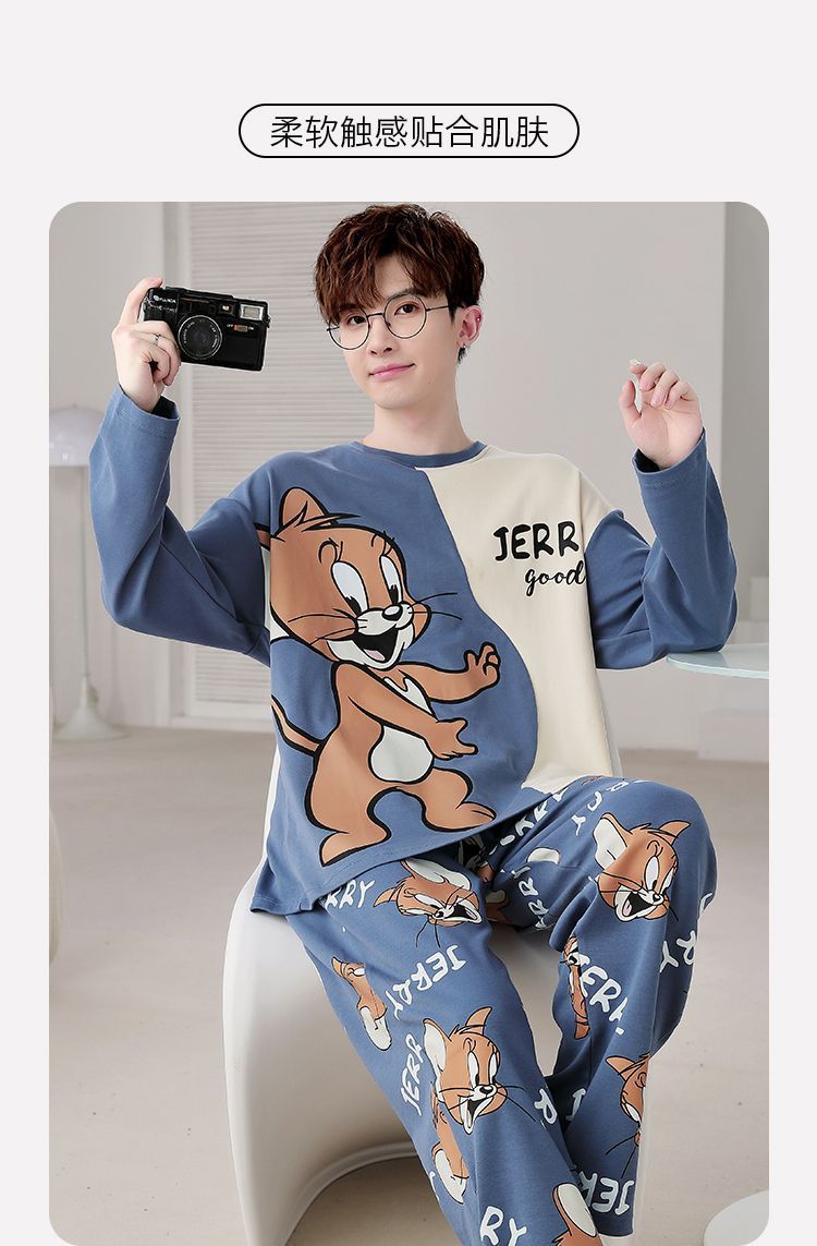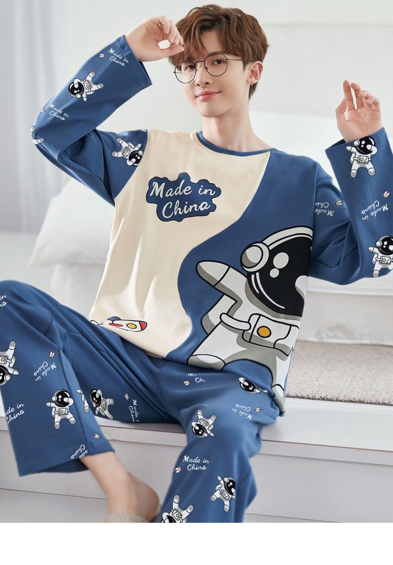 新春秋男士牛奶棉长袖睡衣可爱卡通圆领青少年大码两件套装家居服