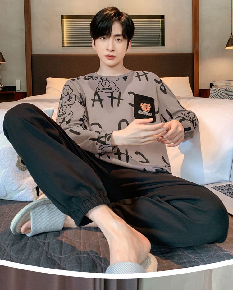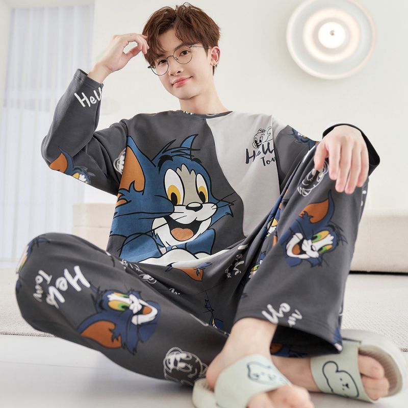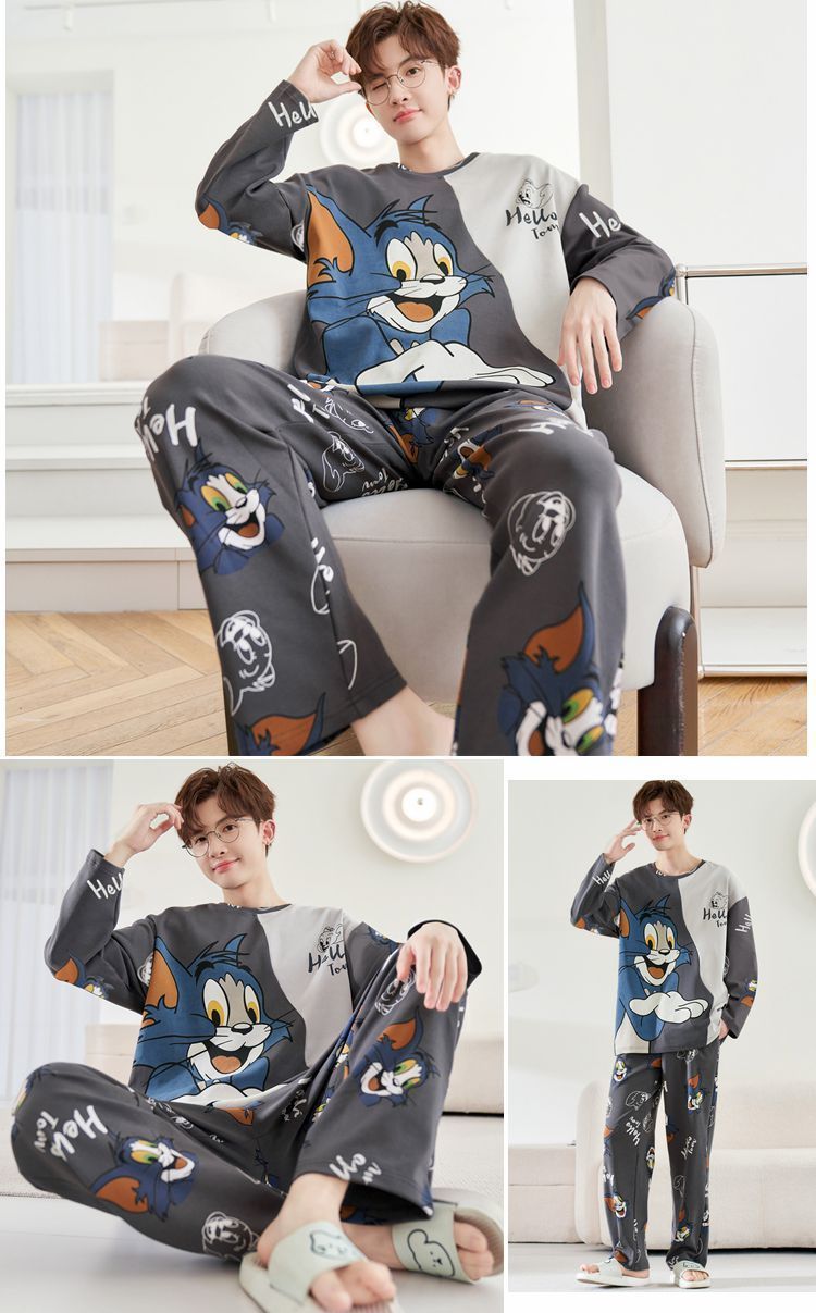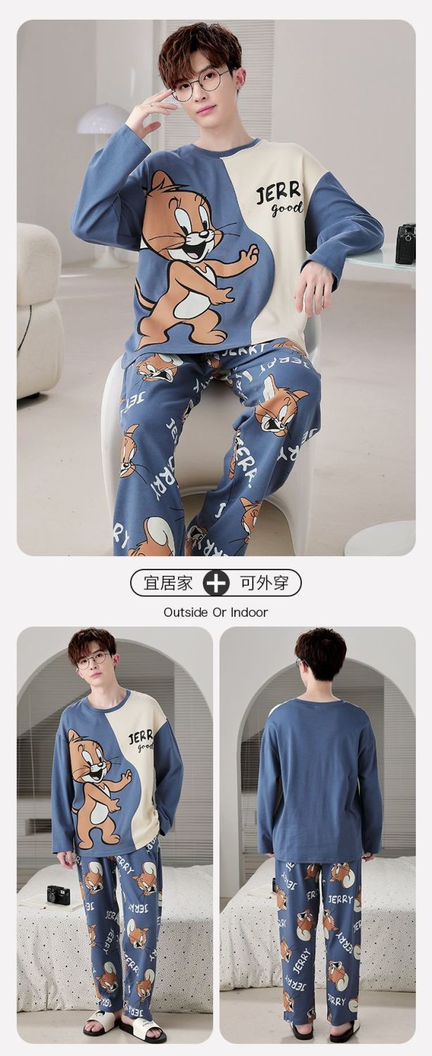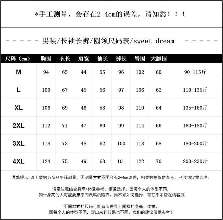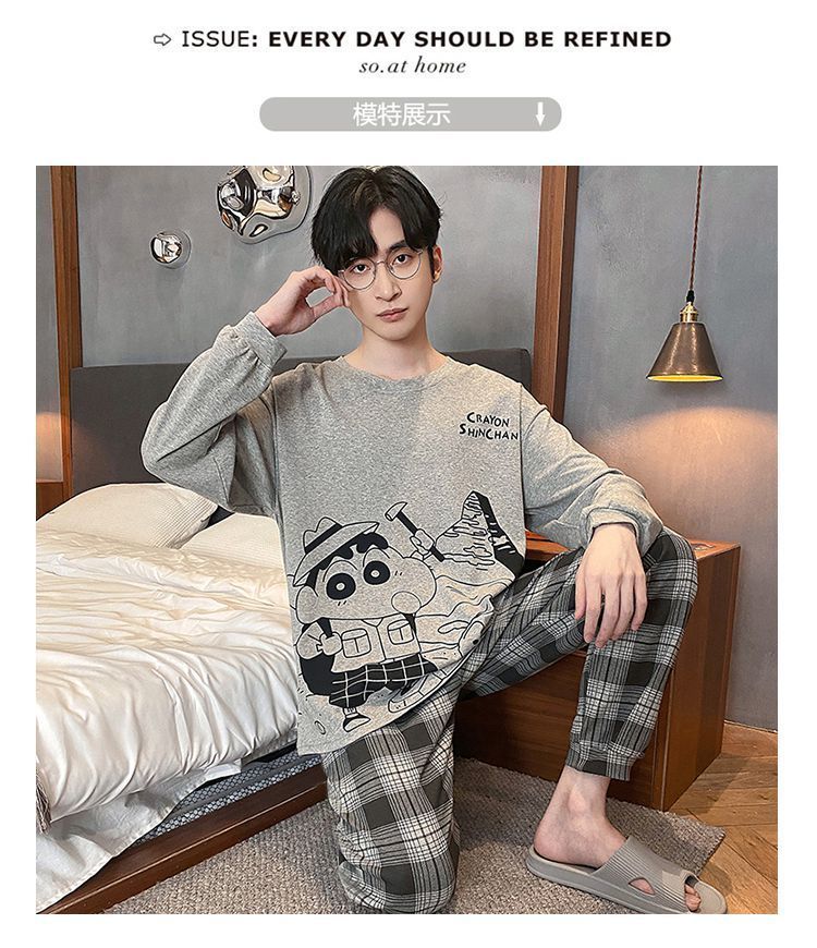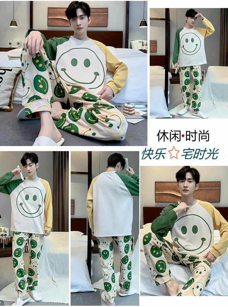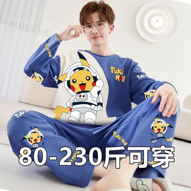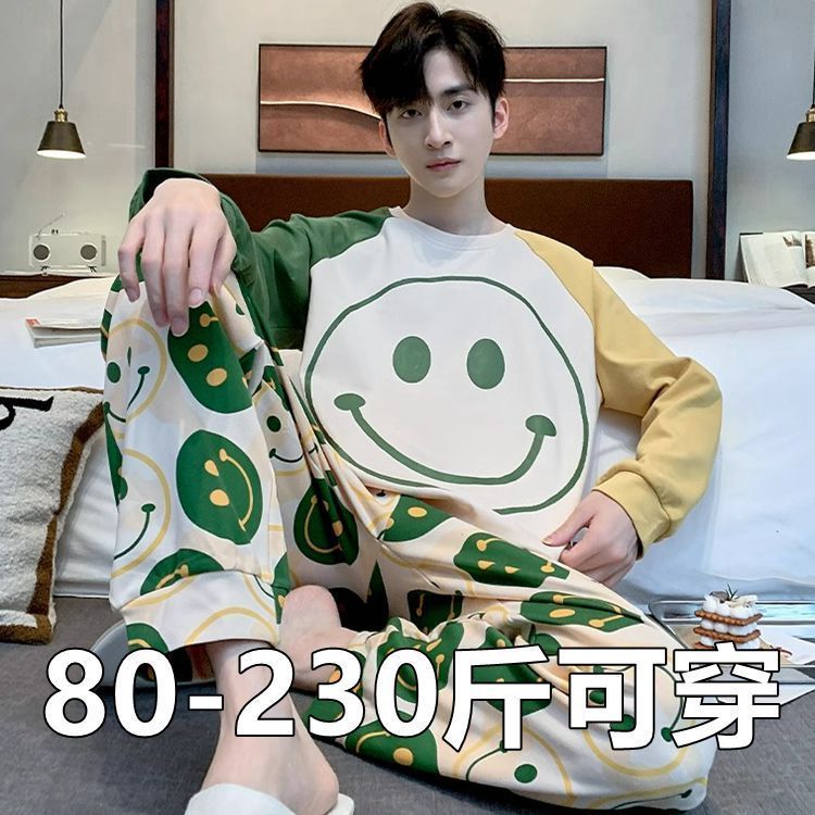 新春秋男士牛奶棉长袖睡衣可爱卡通圆领青少年大码两件套装家居服