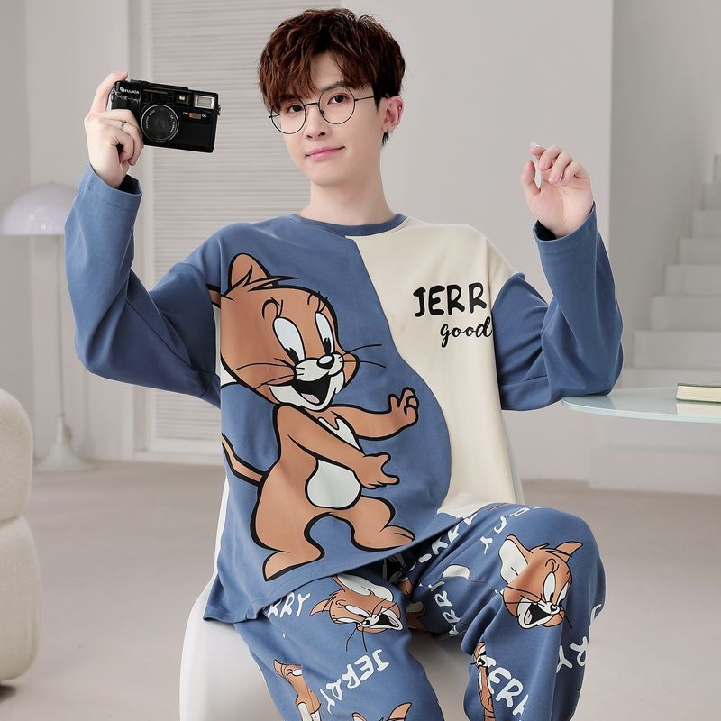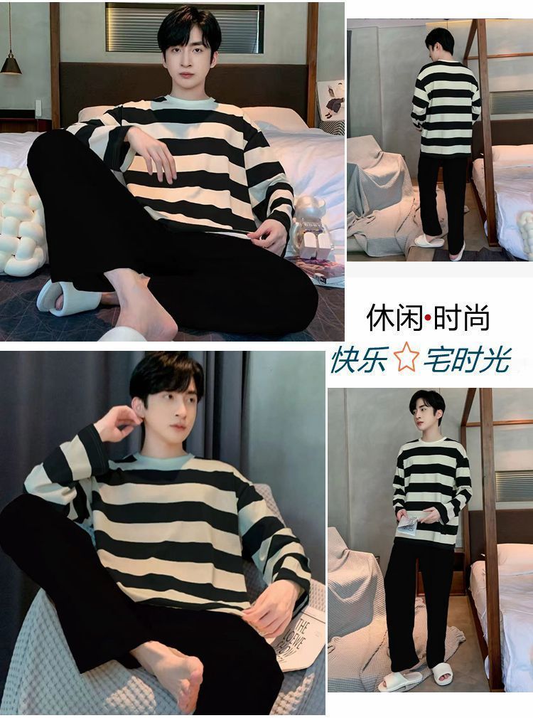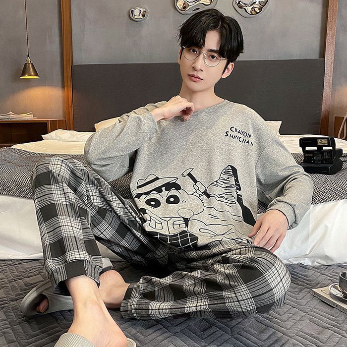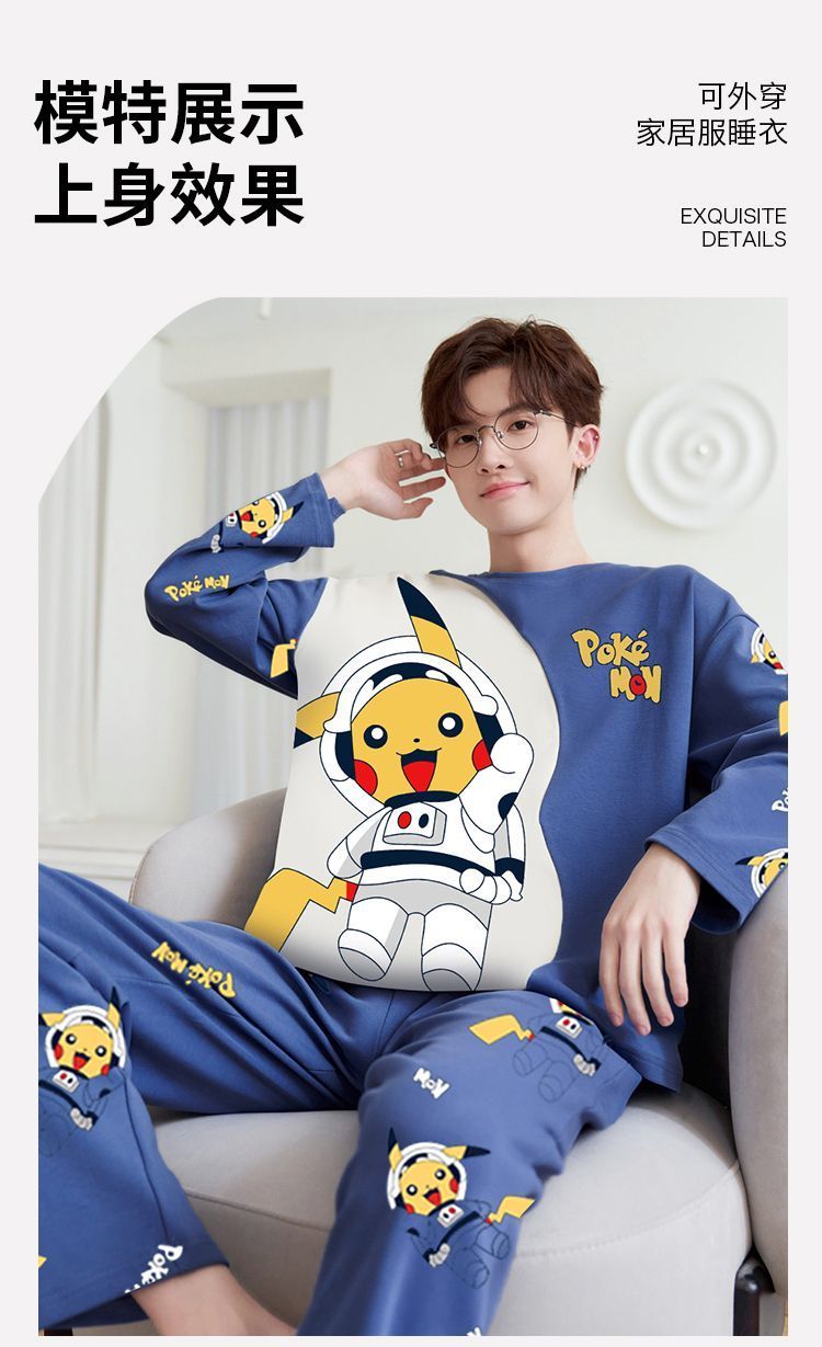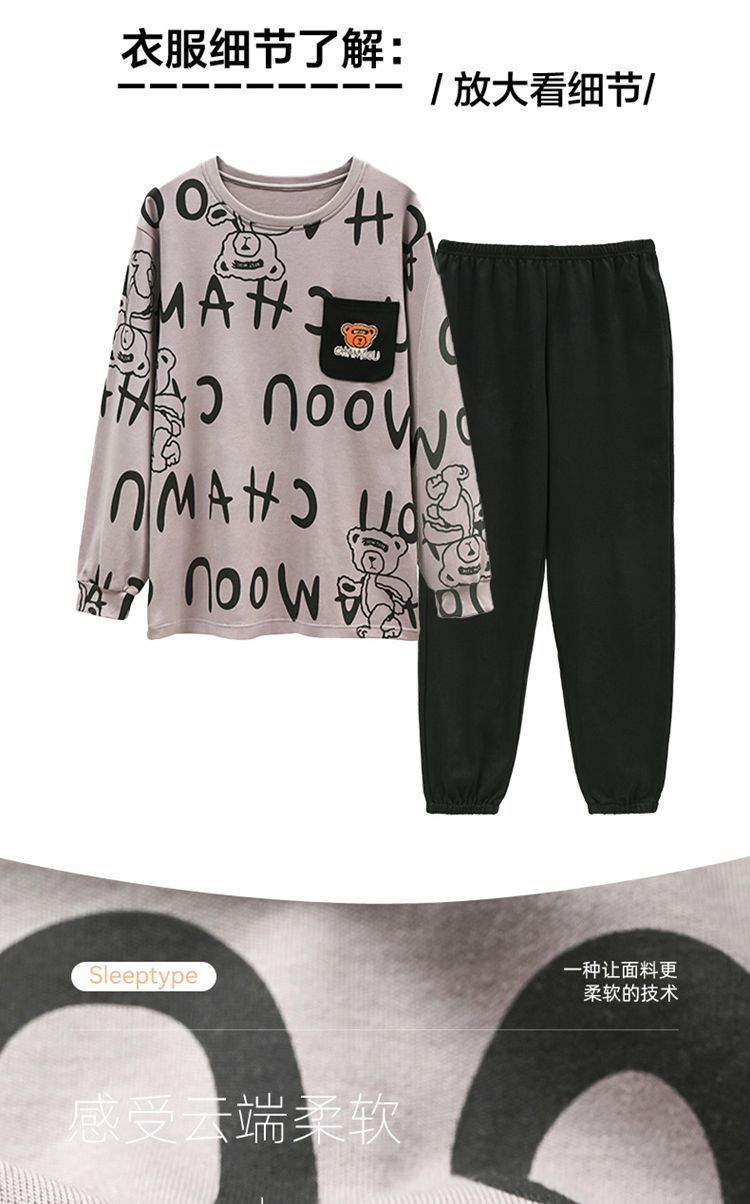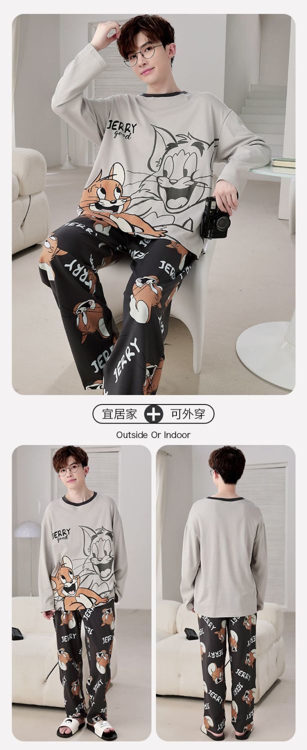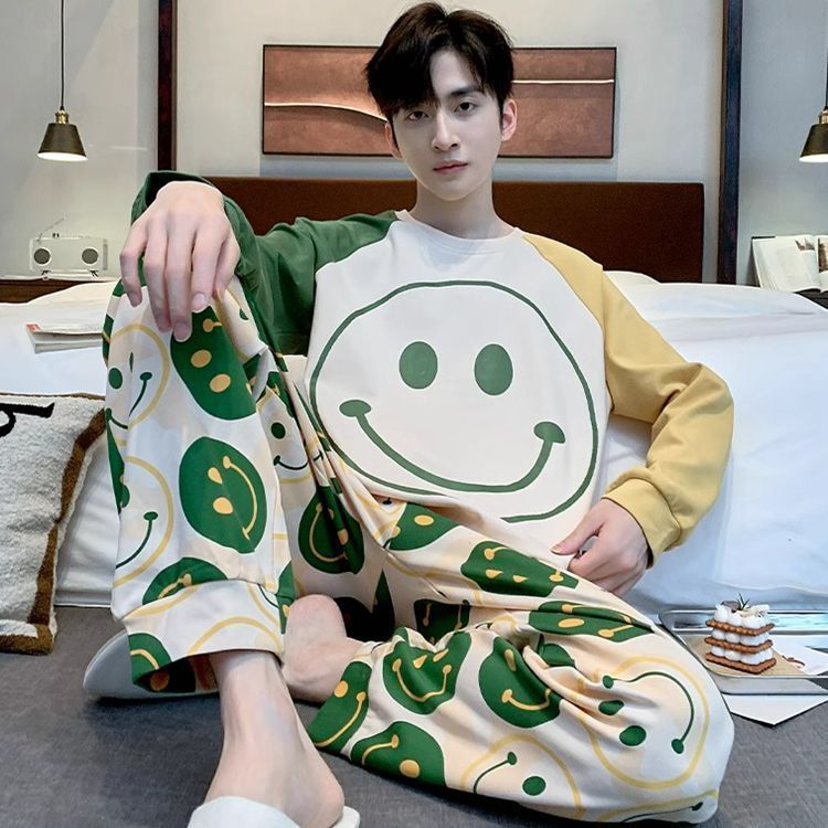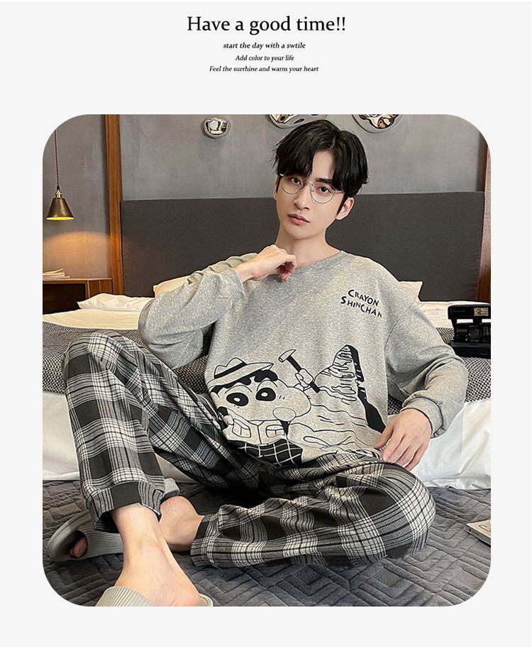 新春秋男士牛奶棉长袖睡衣可爱卡通圆领青少年大码两件套装家居服