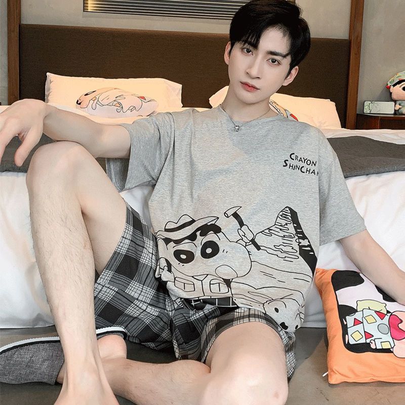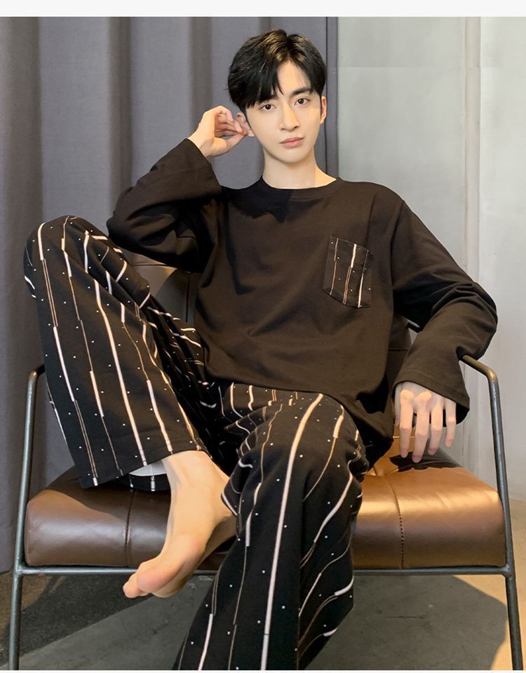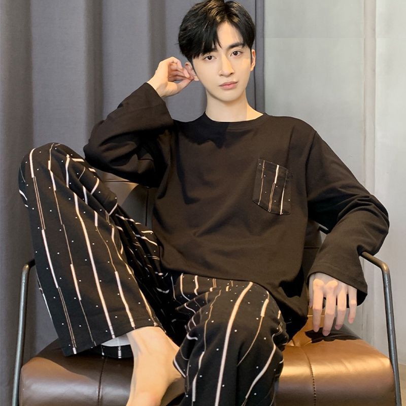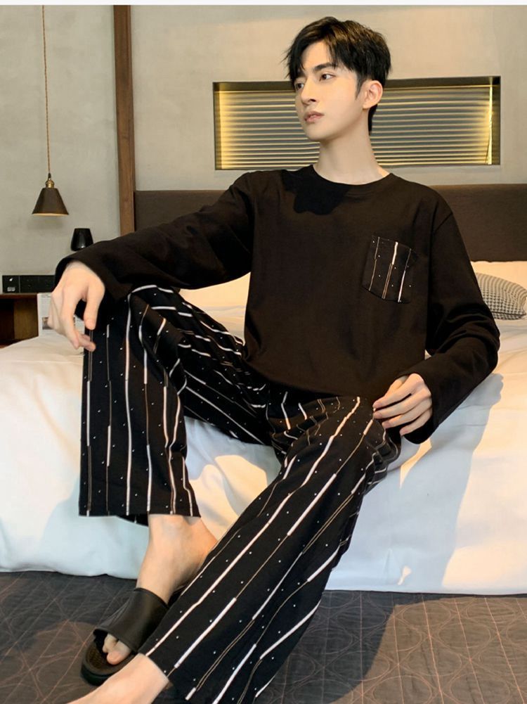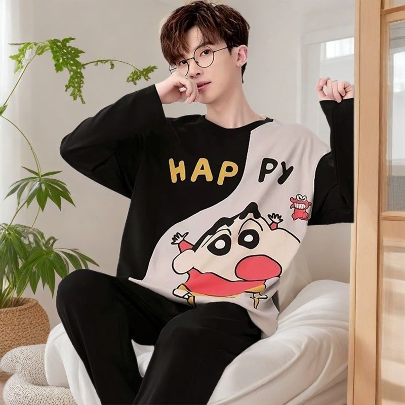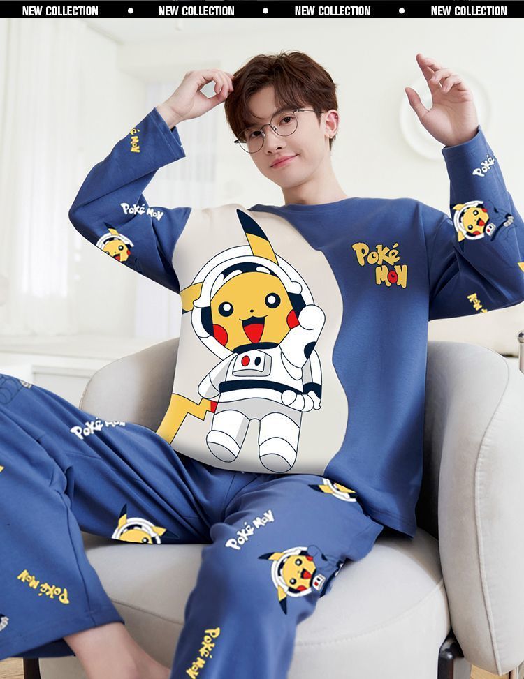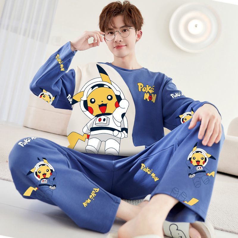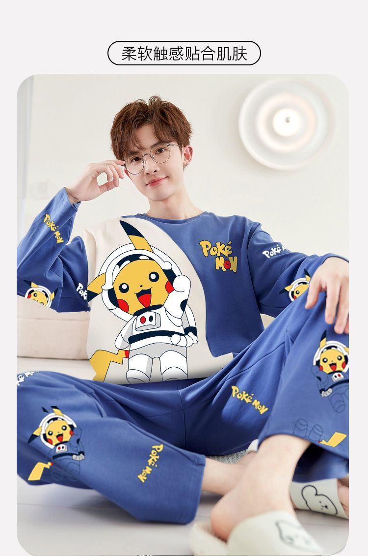 新春秋男士牛奶棉长袖睡衣可爱卡通圆领青少年大码两件套装家居服