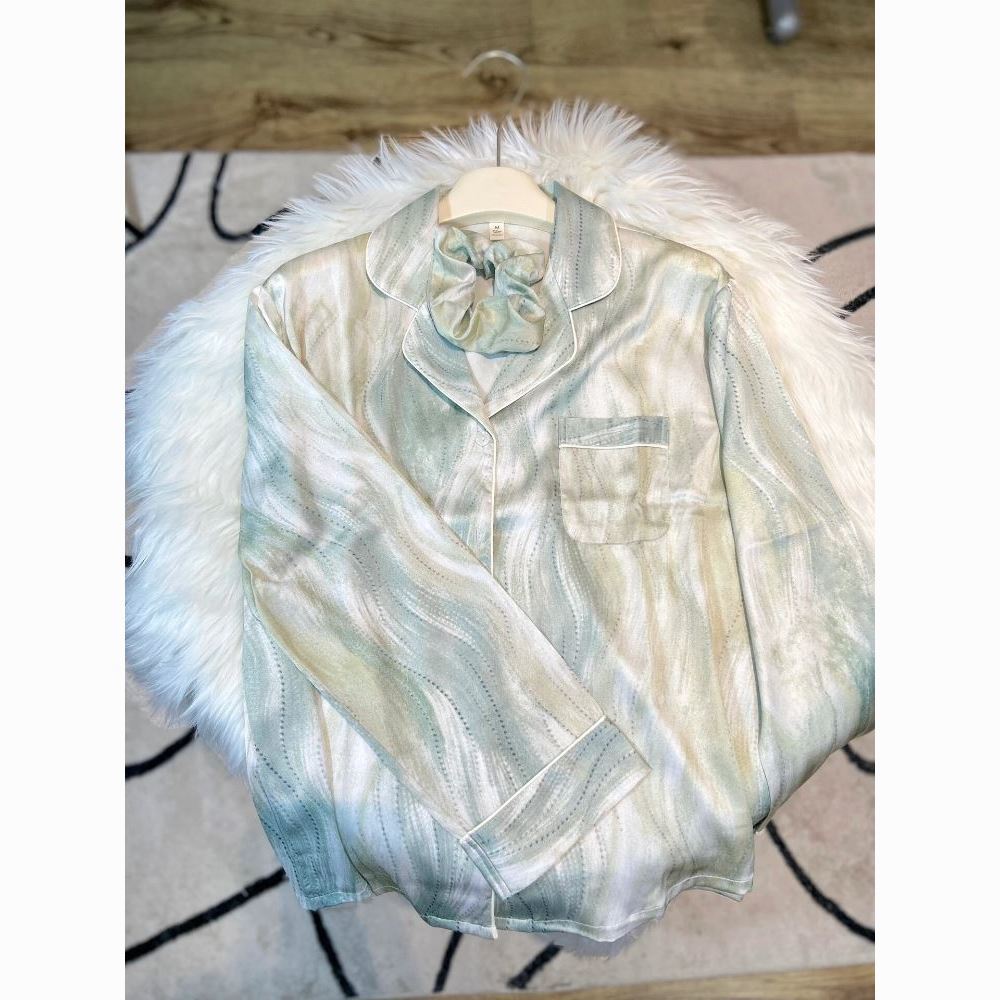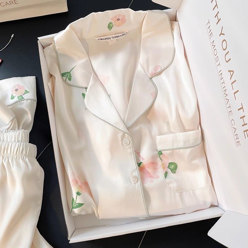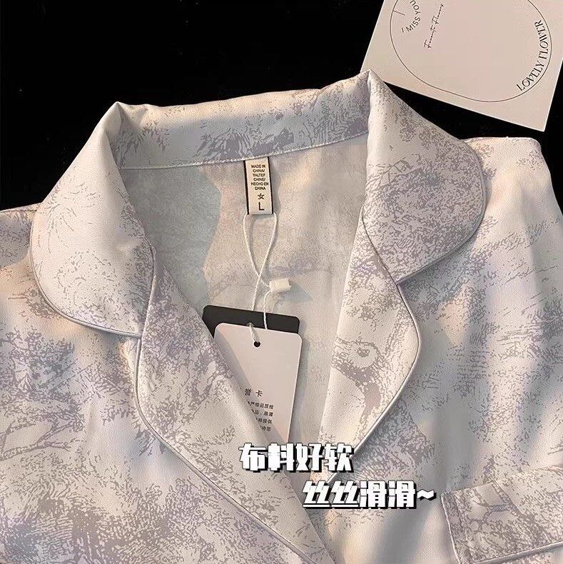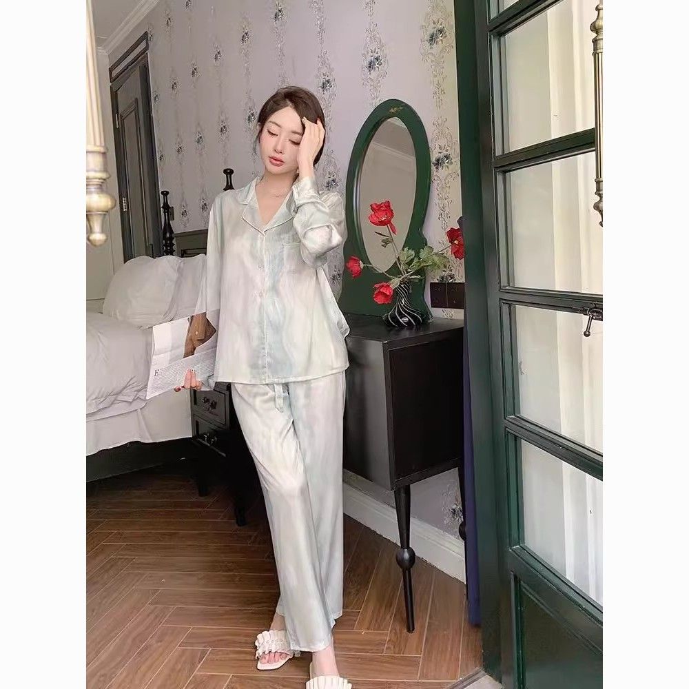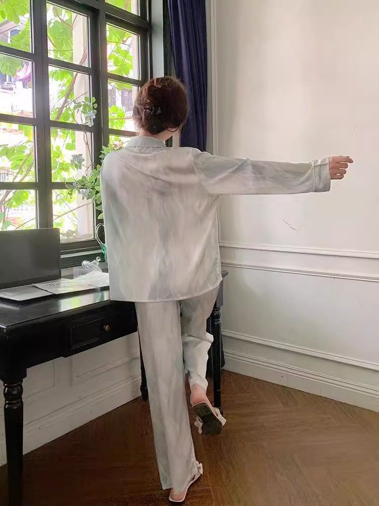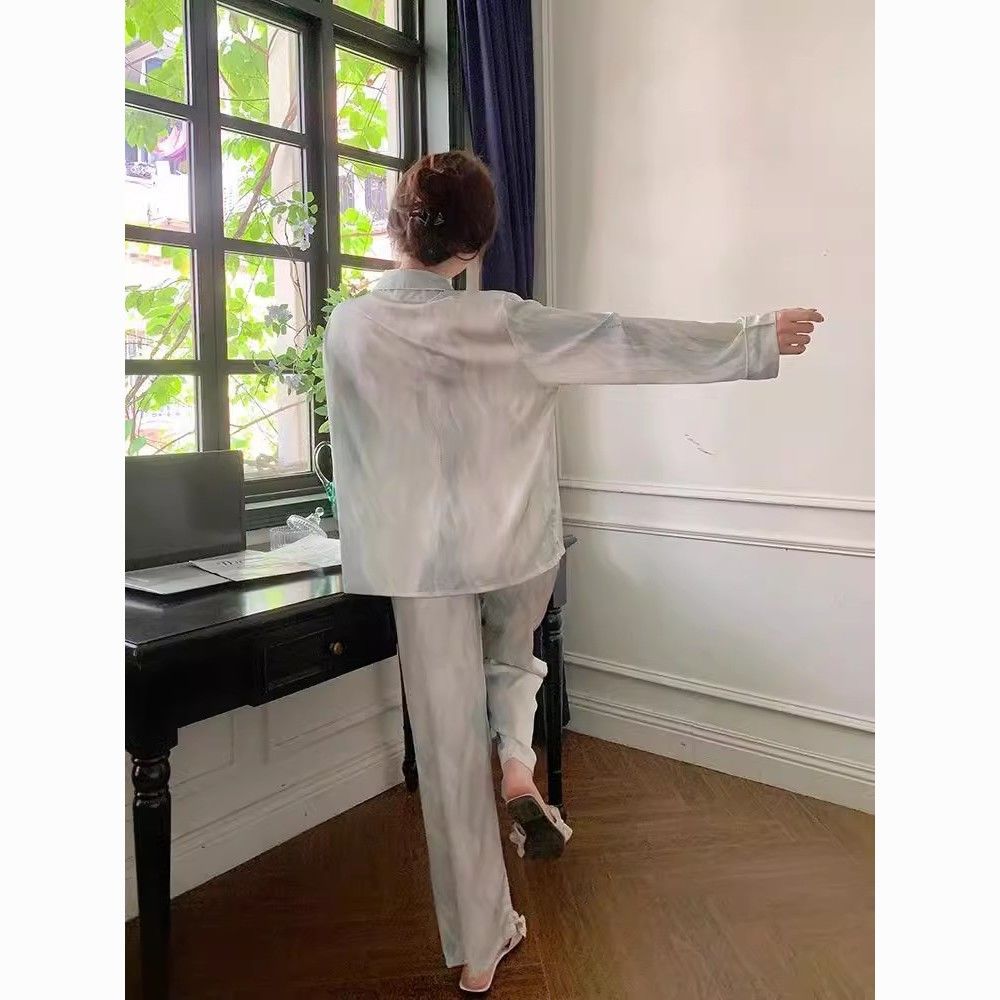 春夏薄款轻奢高级感长袖长裤冰丝睡衣女春秋季休闲大码家居服套装