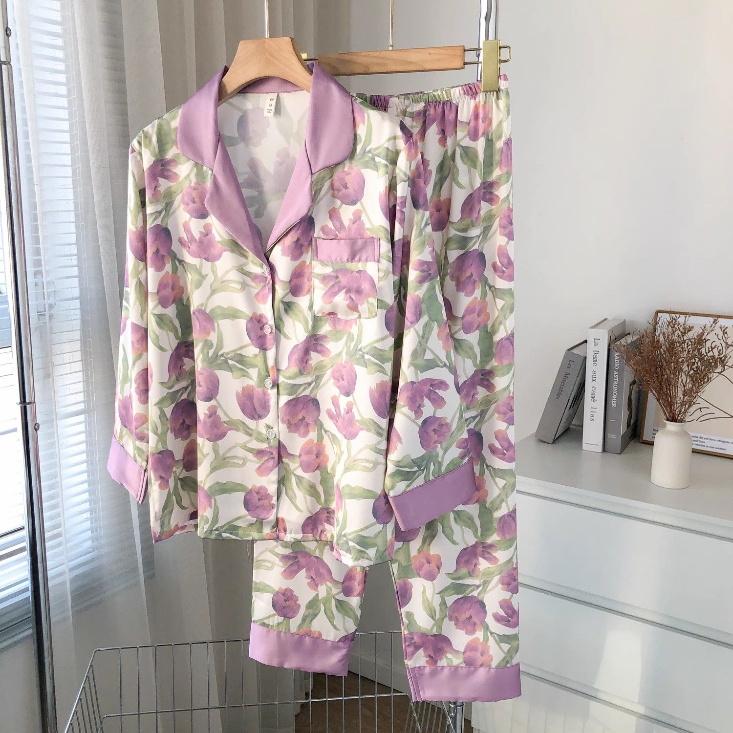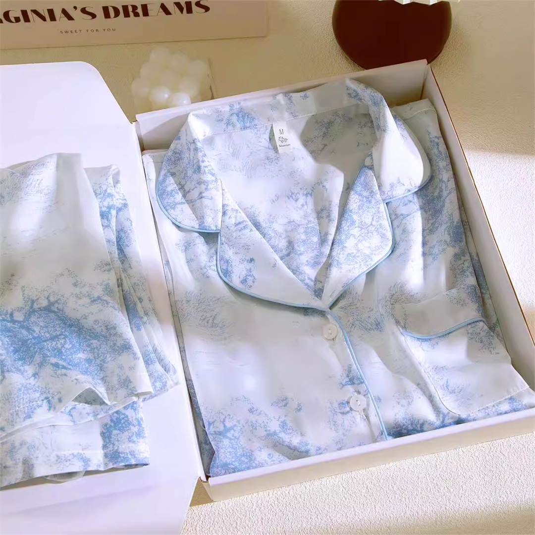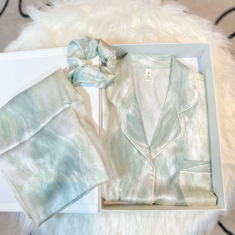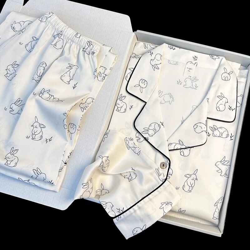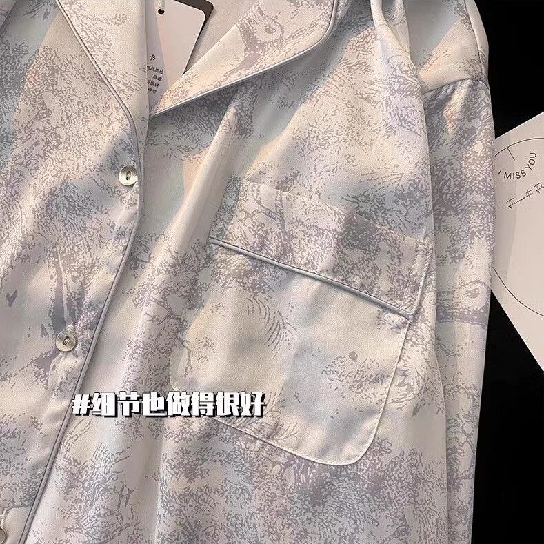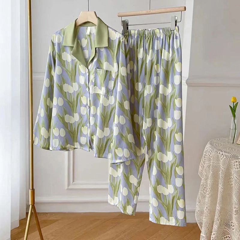 春夏薄款轻奢高级感长袖长裤冰丝睡衣女春秋季休闲大码家居服套装