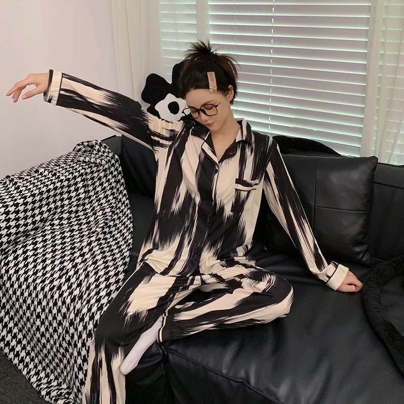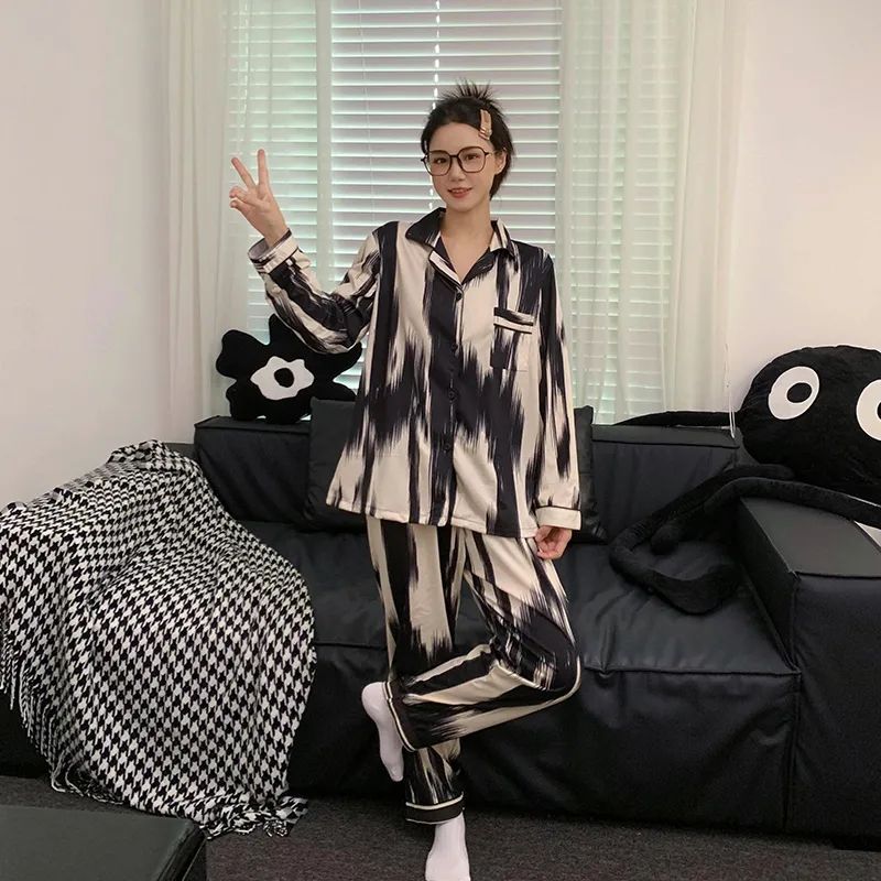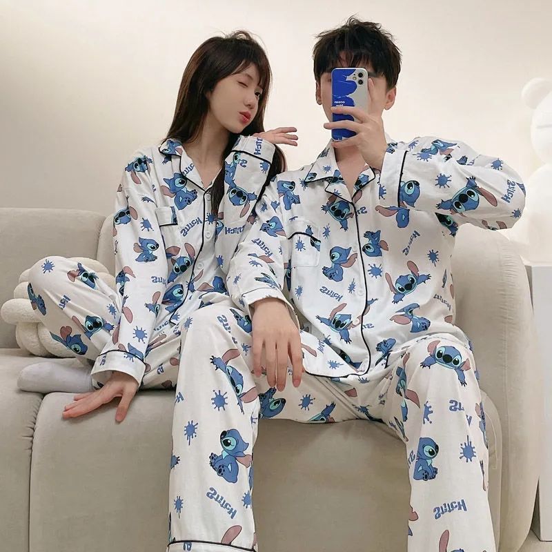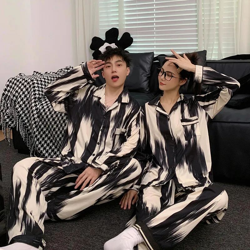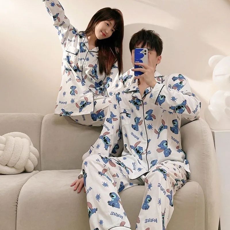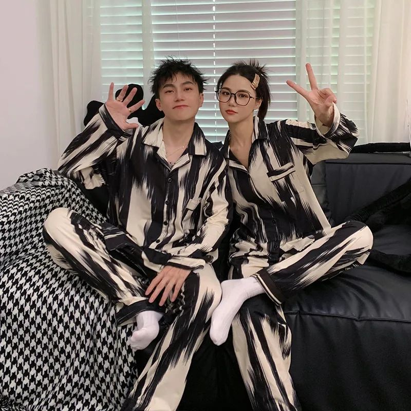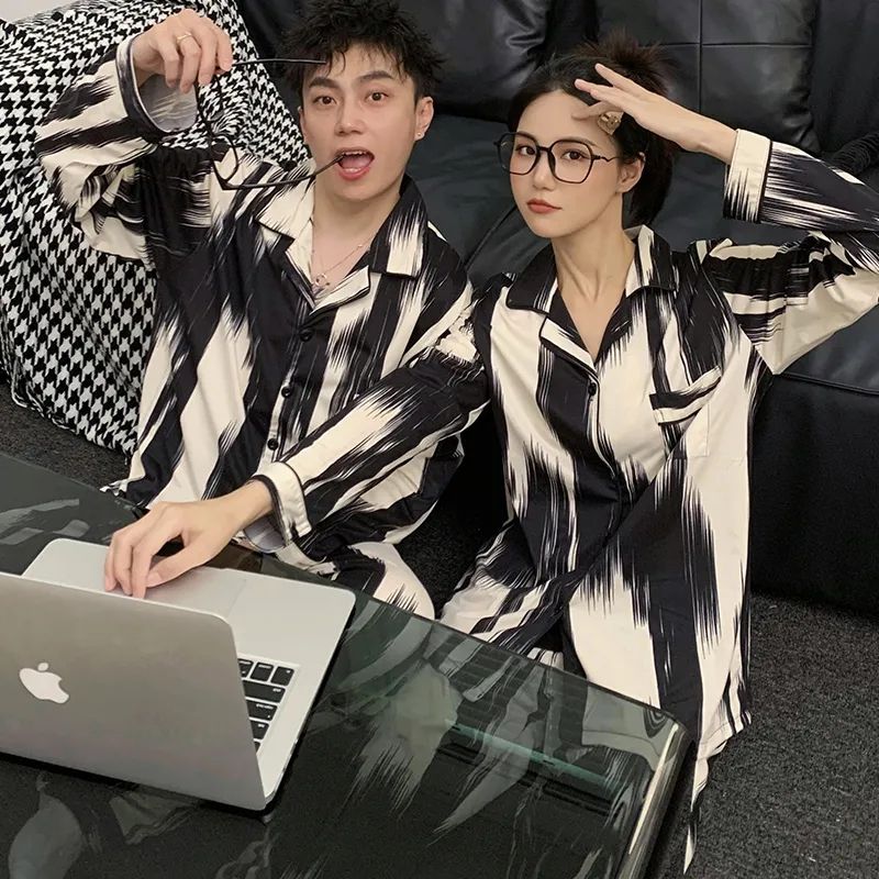 春秋季情侣睡衣女士长袖甜美简约休闲高级感男士可外穿家居服套装
