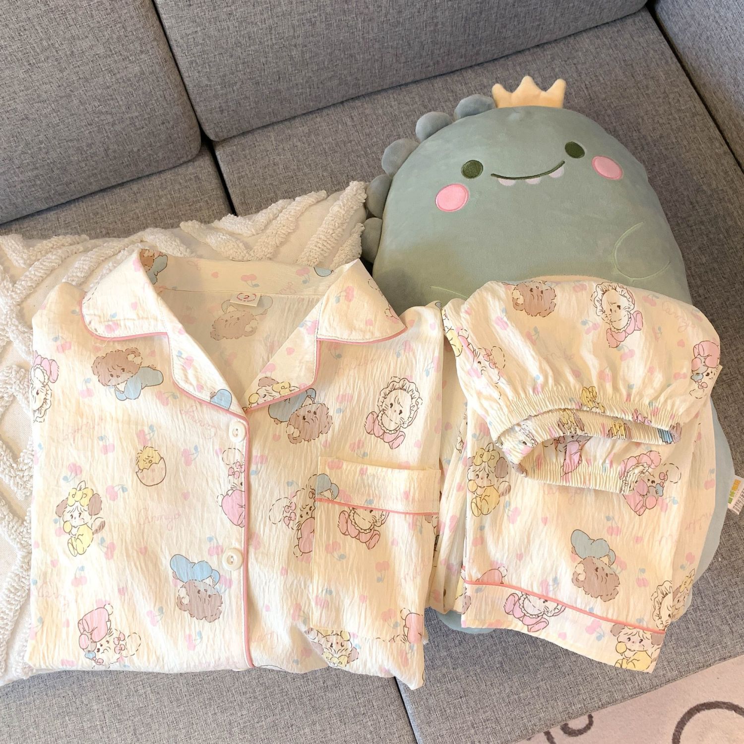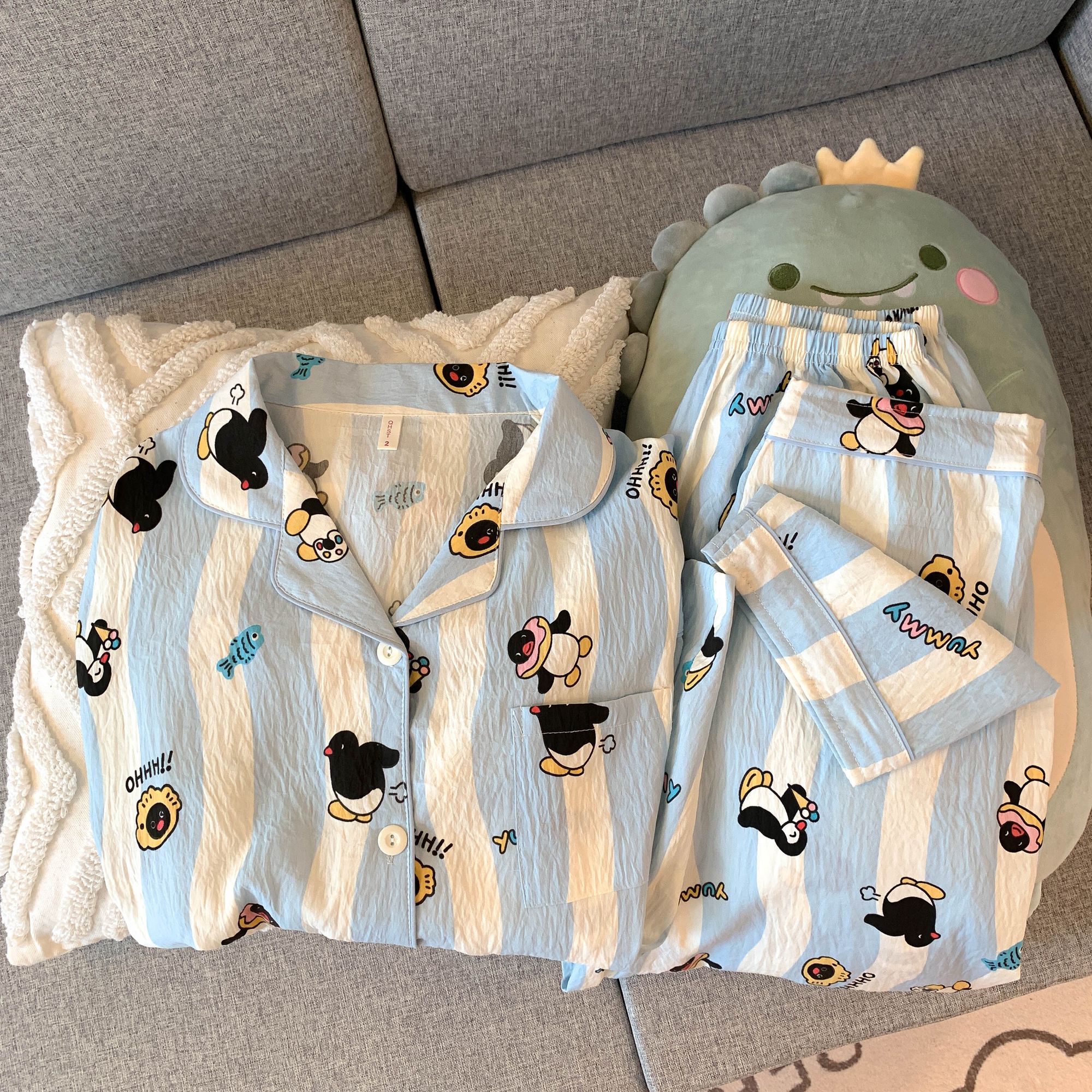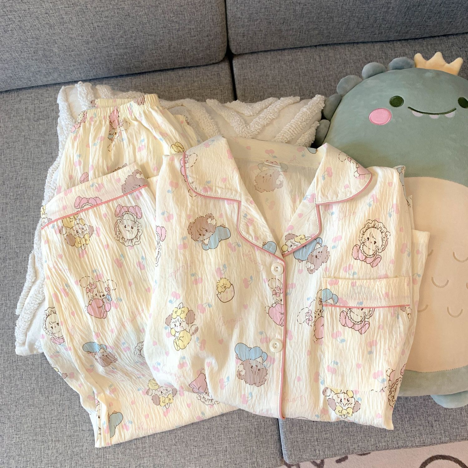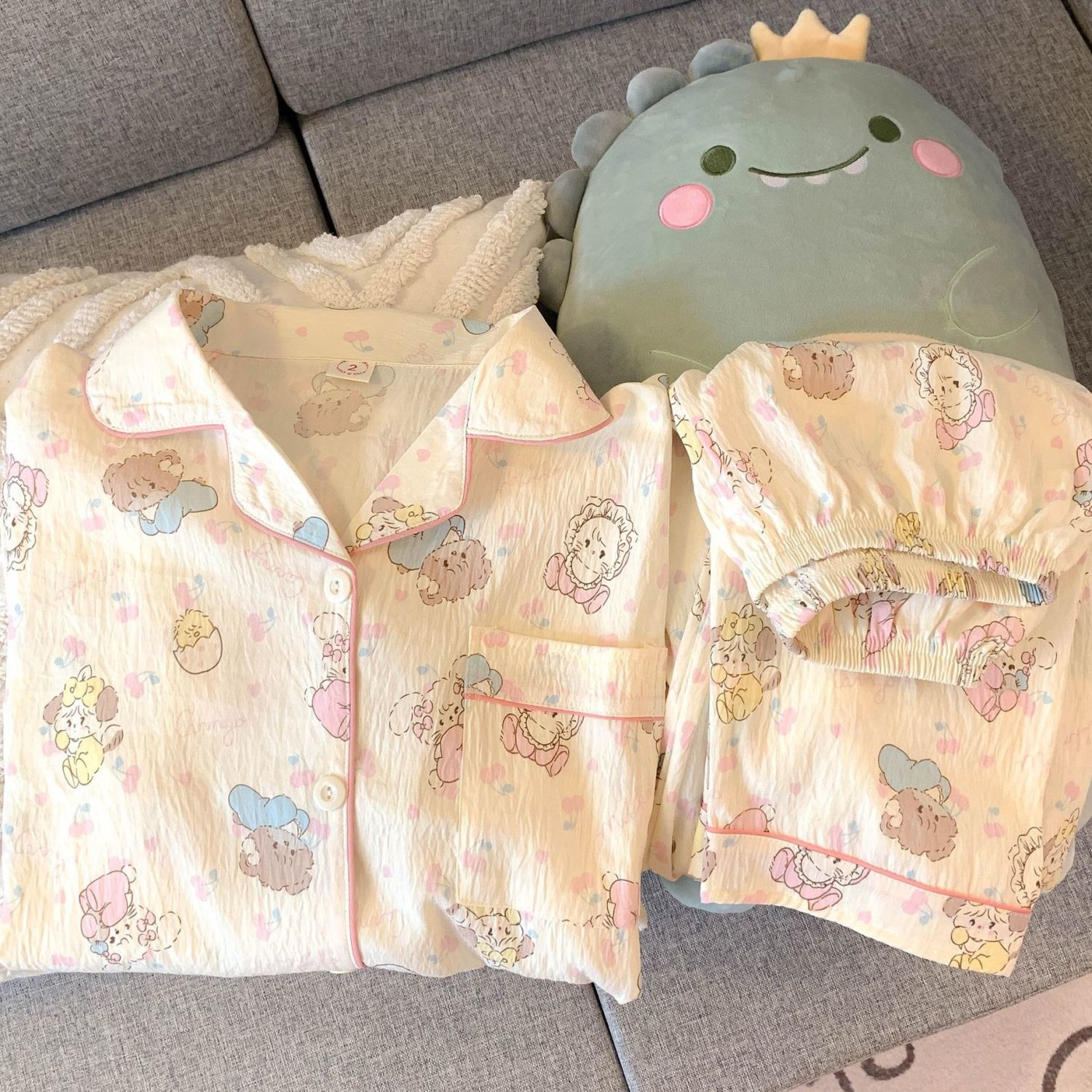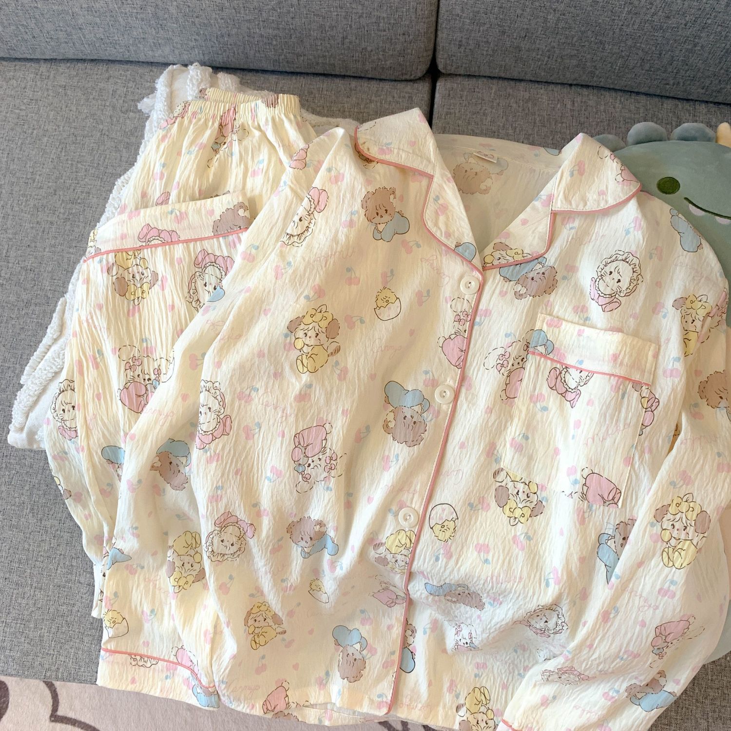 纯棉睡衣女款秋冬季云朵棉长袖长裤套装卡通可爱少女可外穿家居服