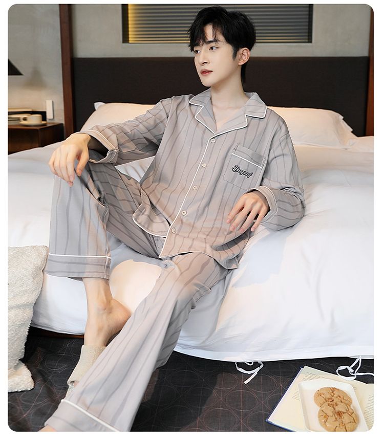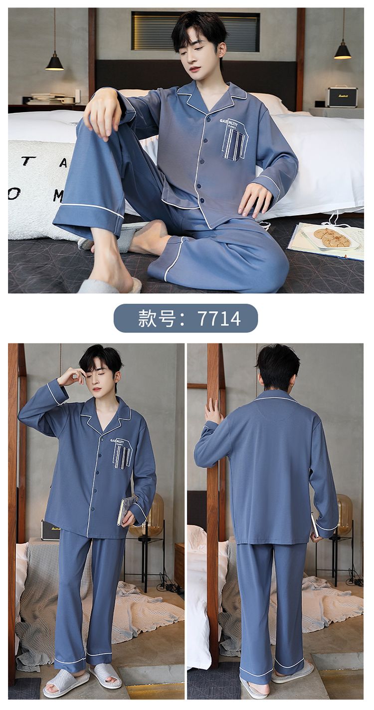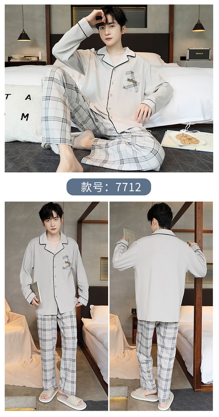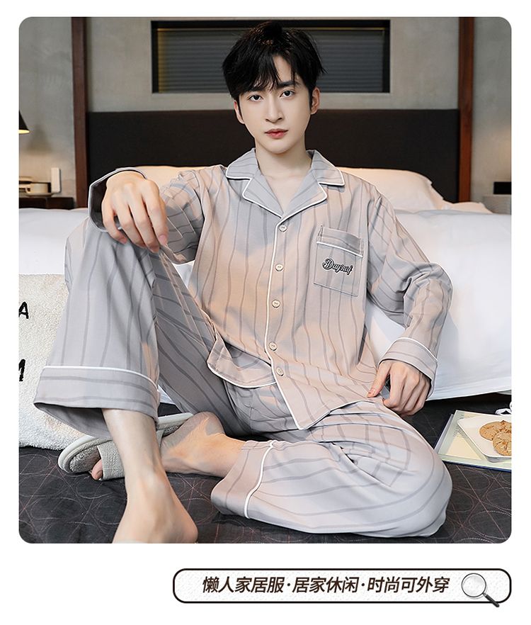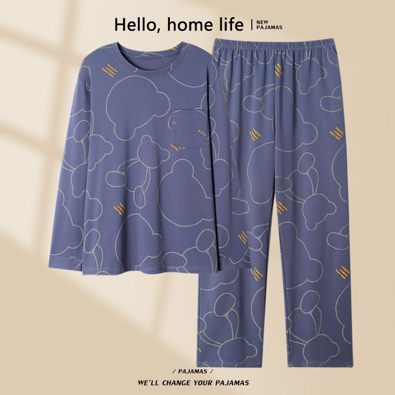 2024新款秋冬款纯棉可外穿男款睡衣春秋季男士大码长袖长裤家居服