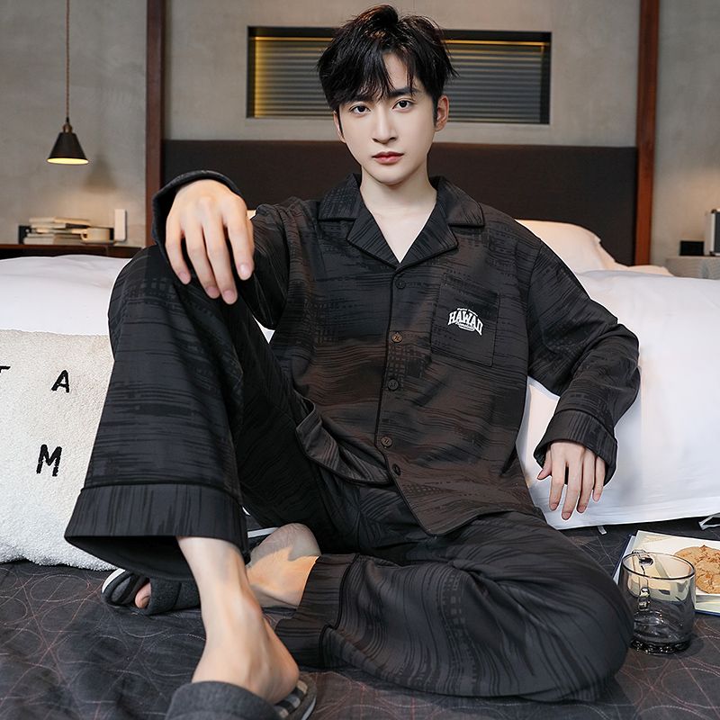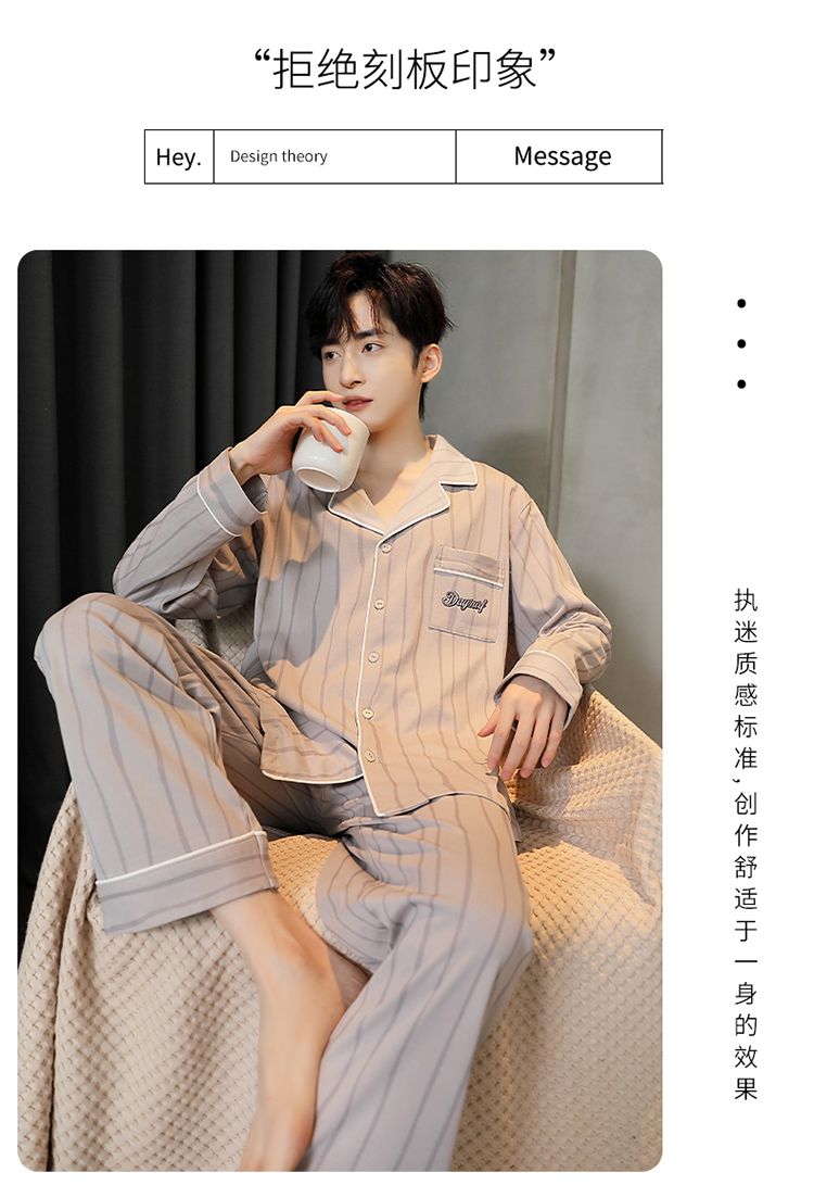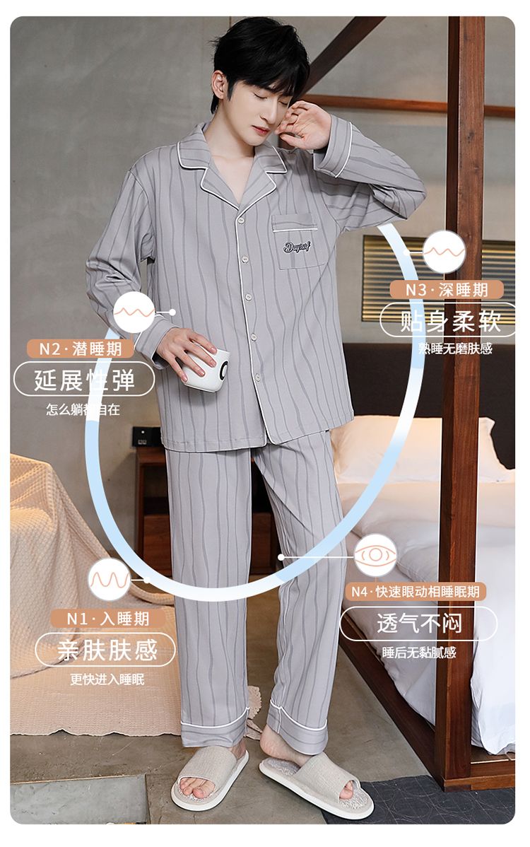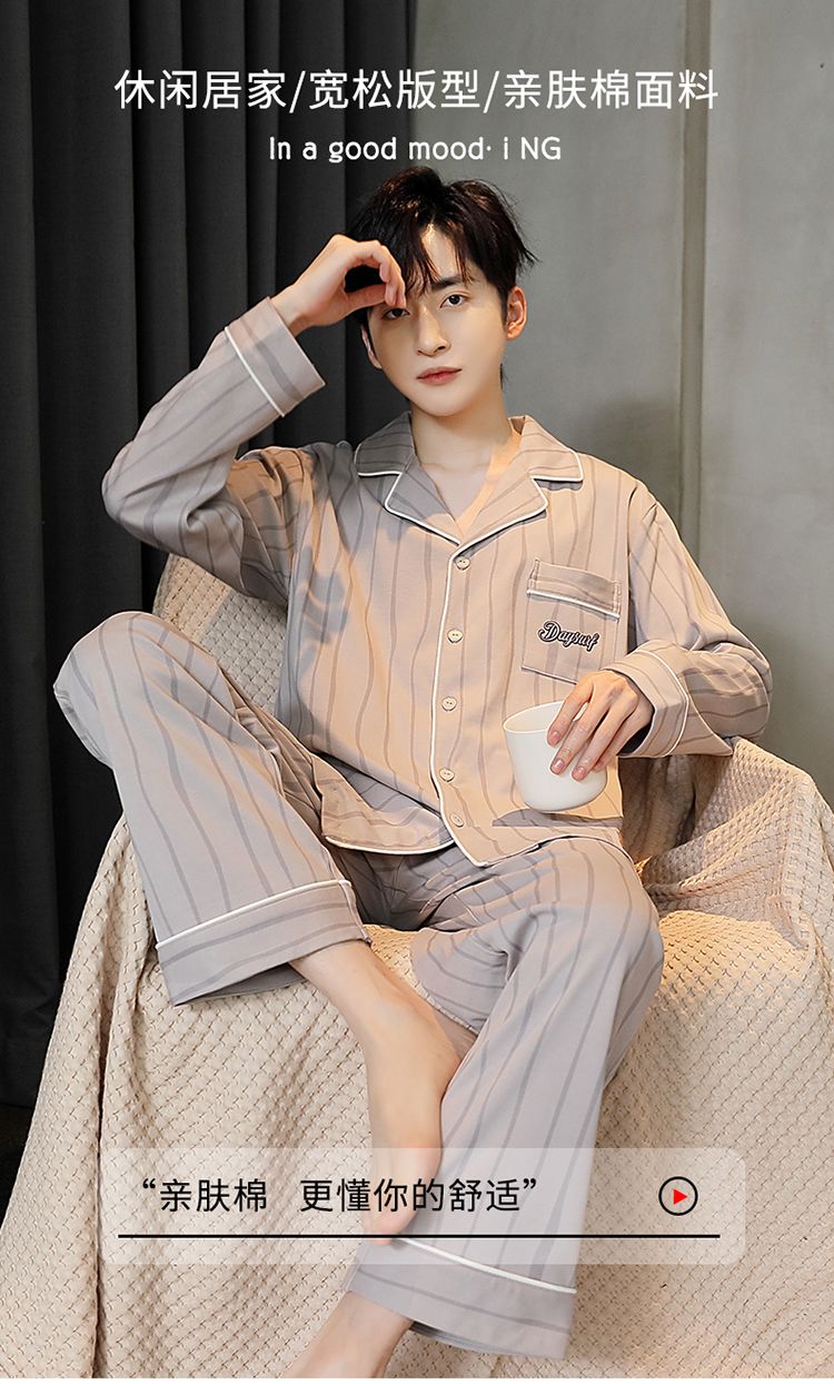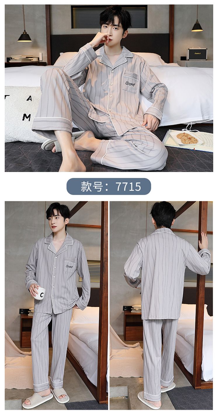 2024新款秋冬款纯棉可外穿男款睡衣春秋季男士大码长袖长裤家居服