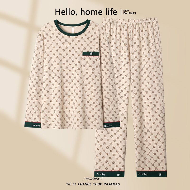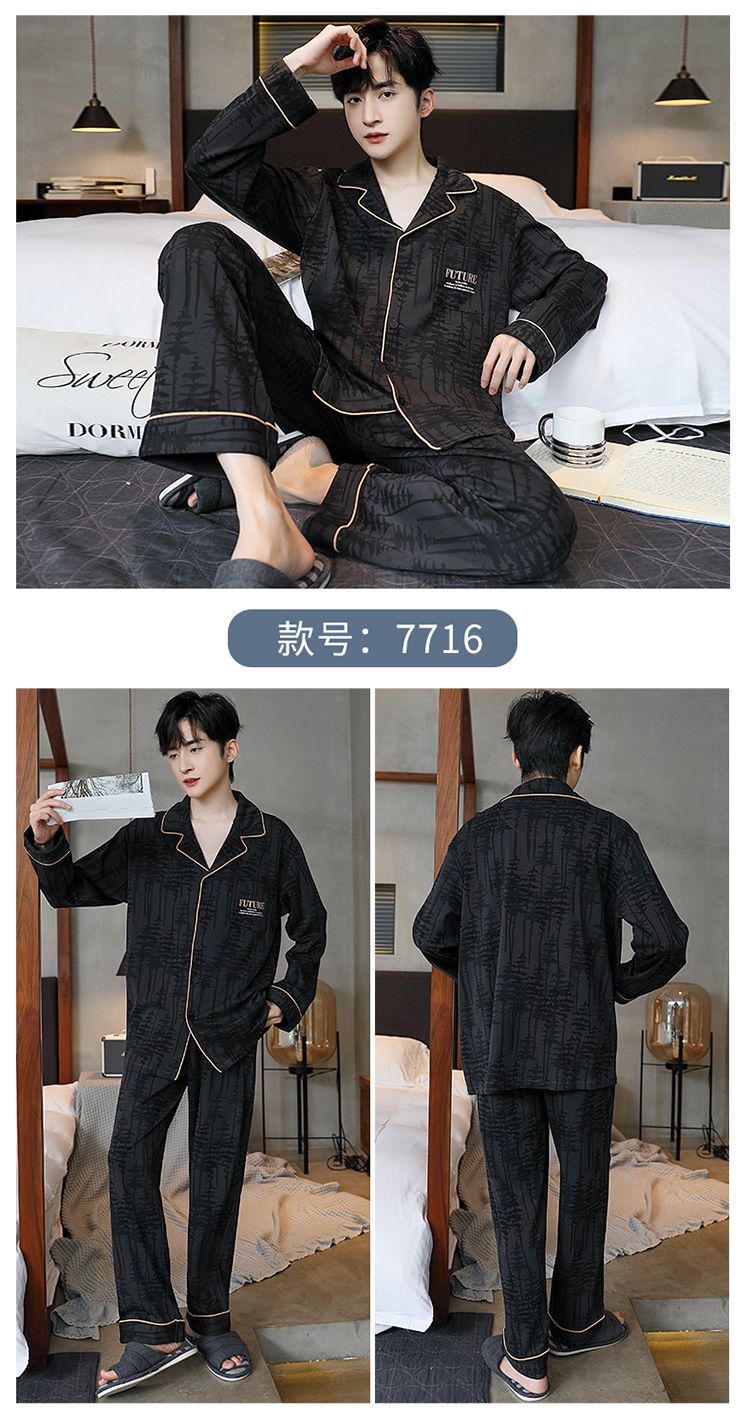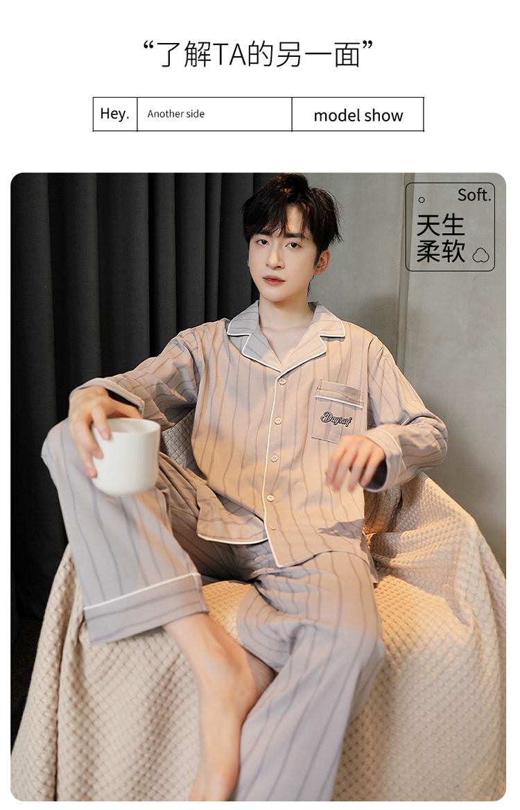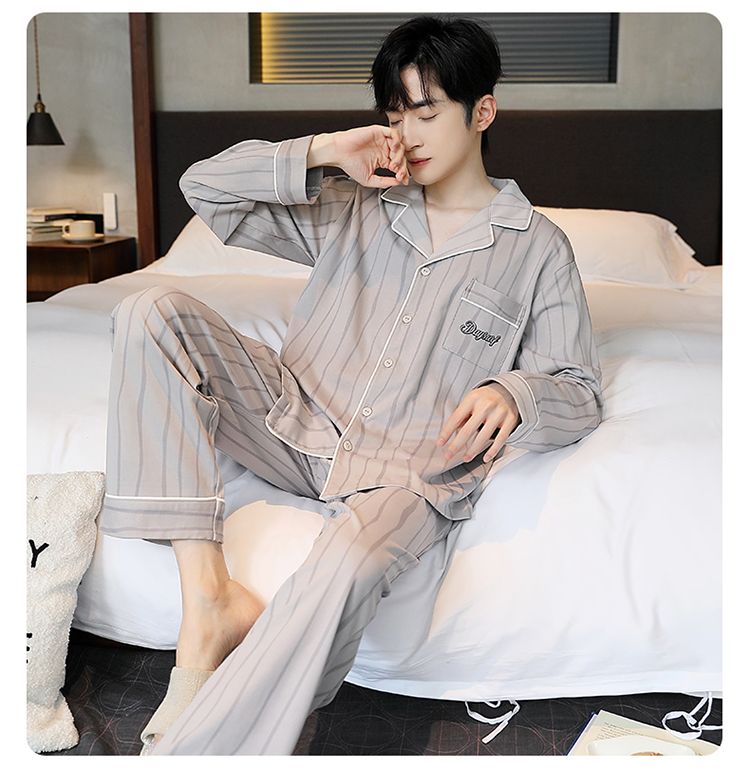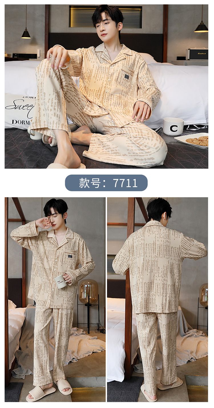 2024新款秋冬款纯棉可外穿男款睡衣春秋季男士大码长袖长裤家居服