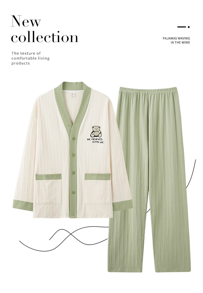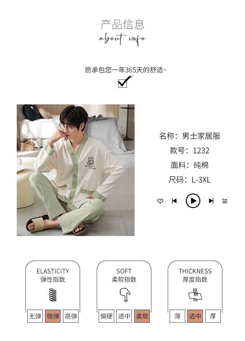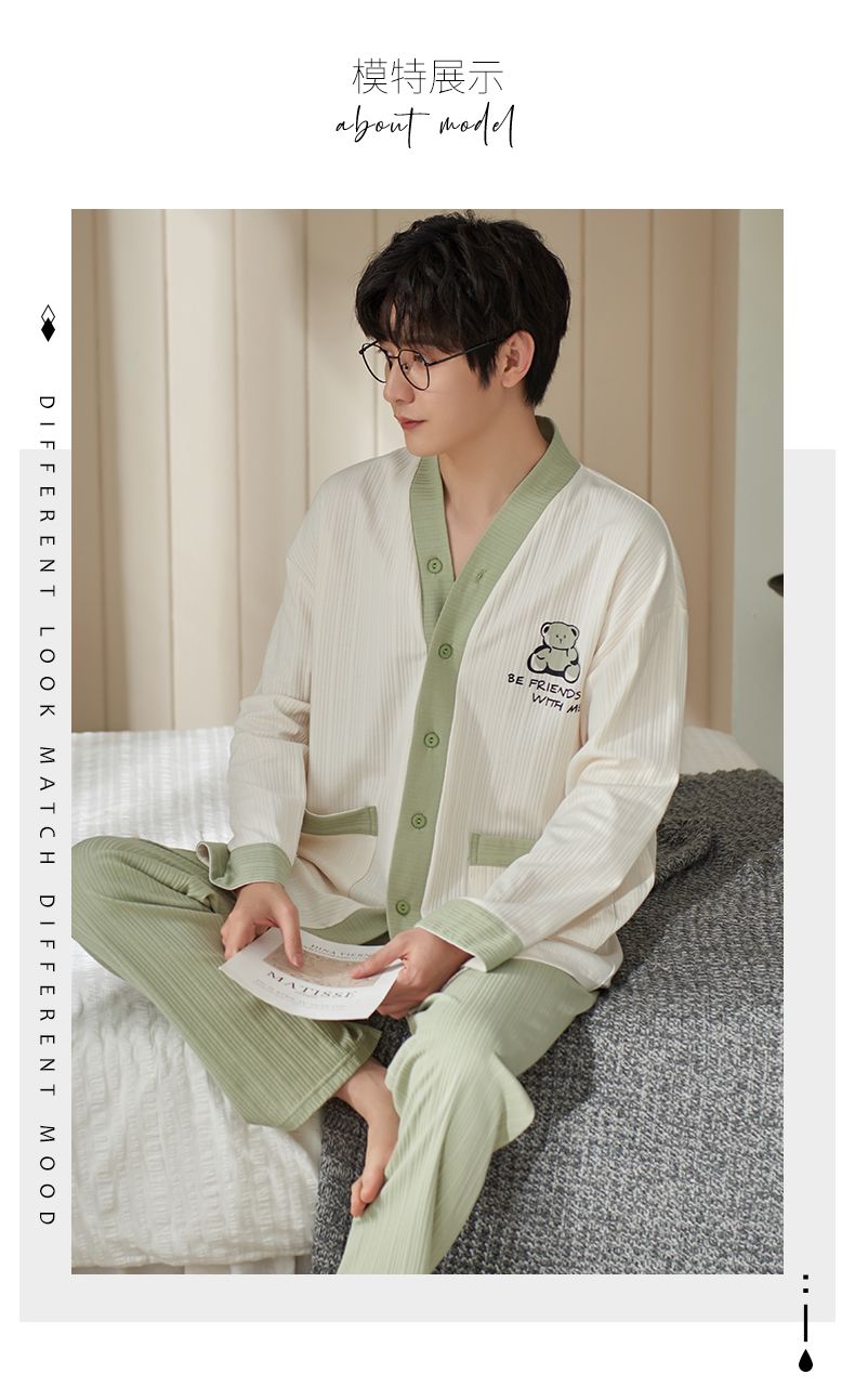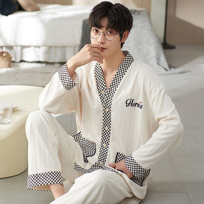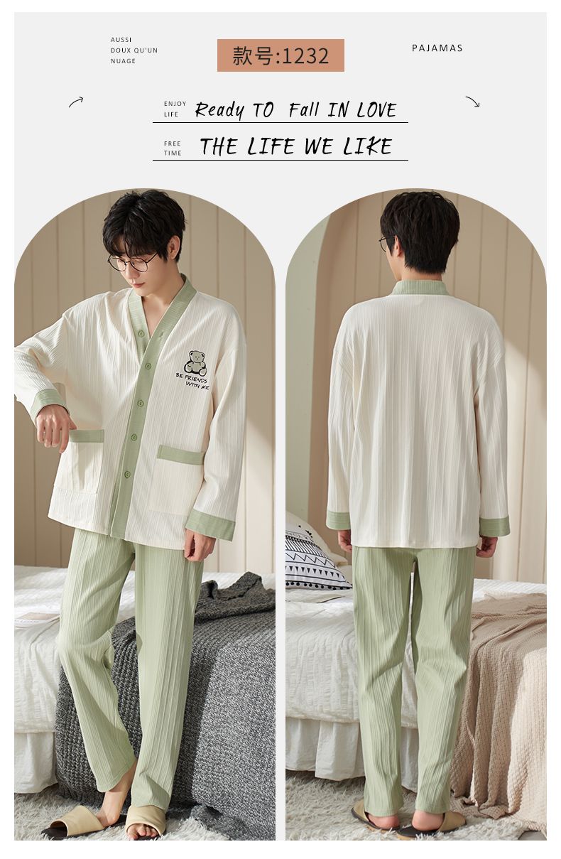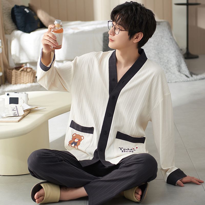 新款长袖长裤大码休闲家居服开衫睡衣男青少年高档长袖新款春秋季