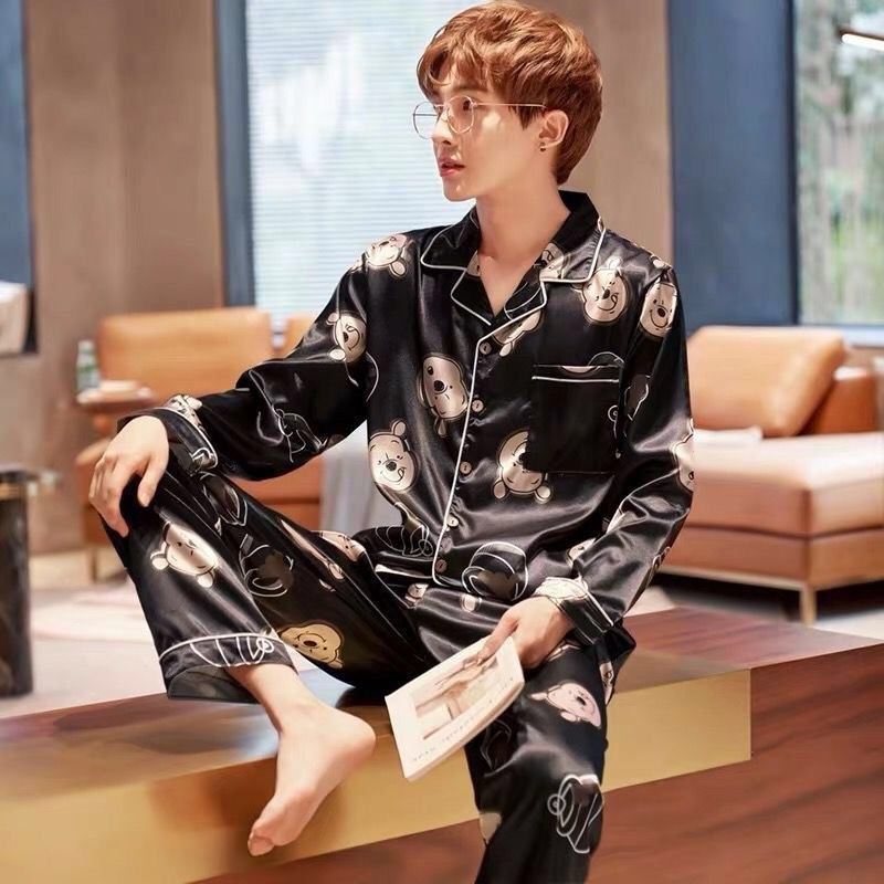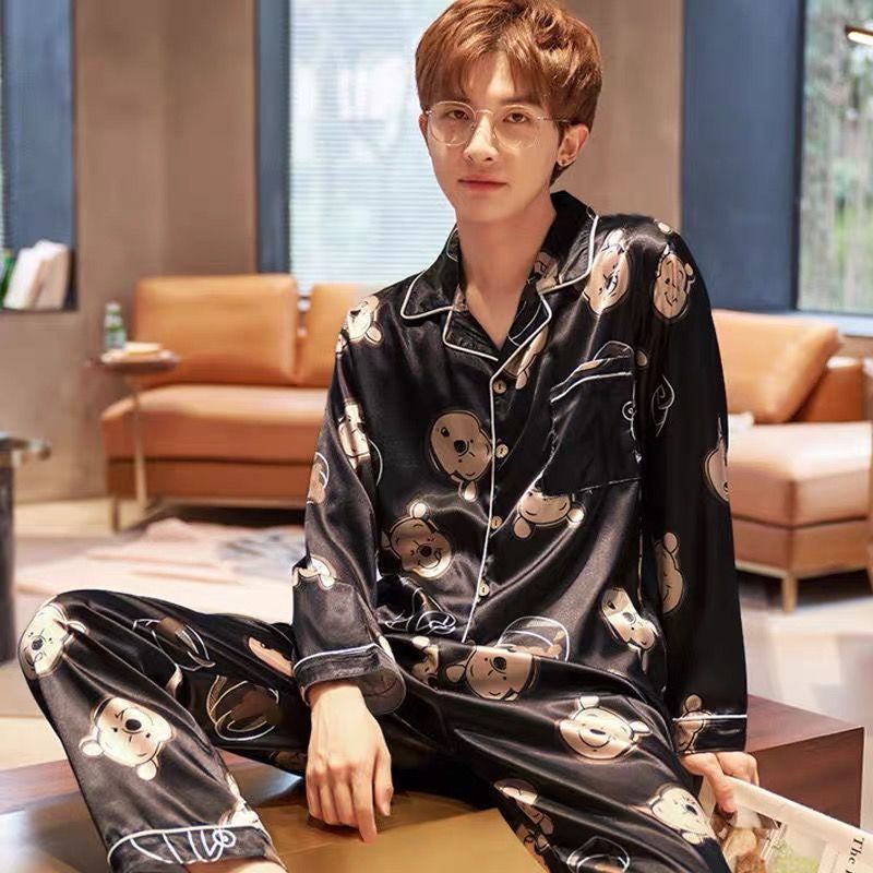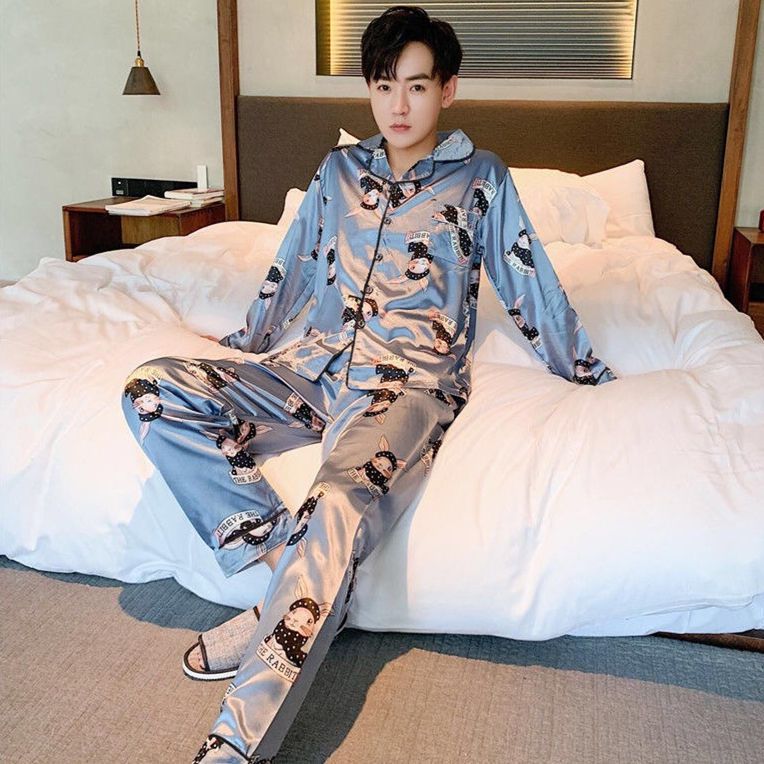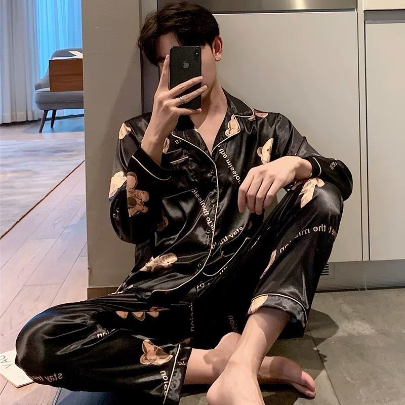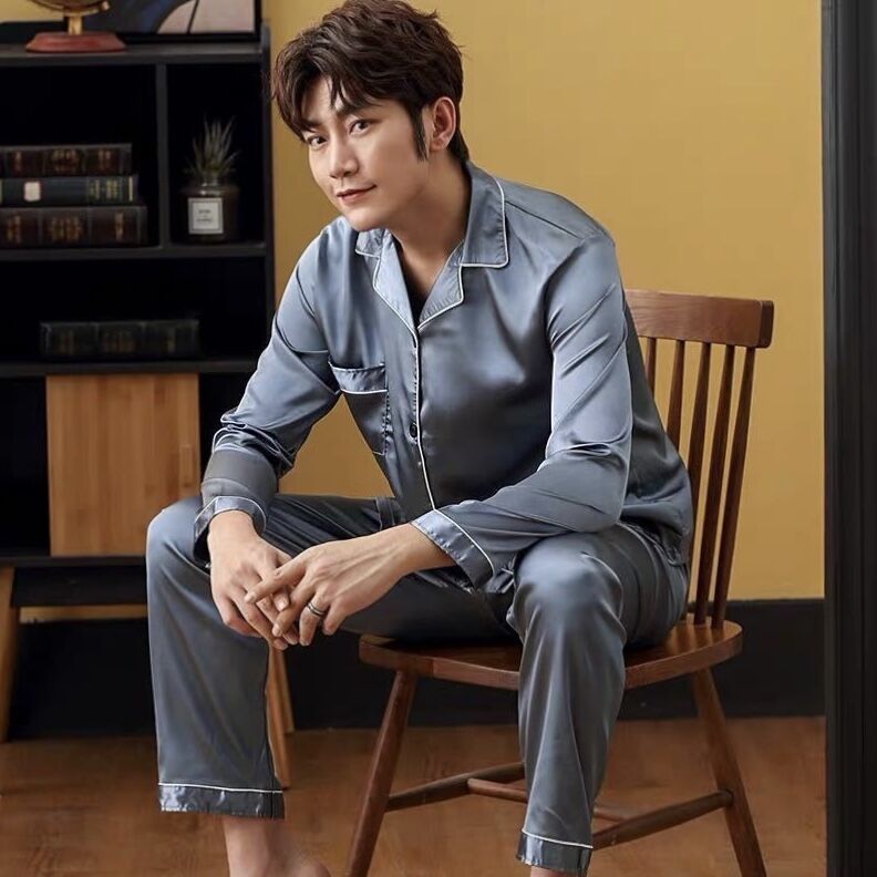 秋夏冬季男士睡衣冰丝薄款加大加肥长裤长袖宽松家居服两件套套装