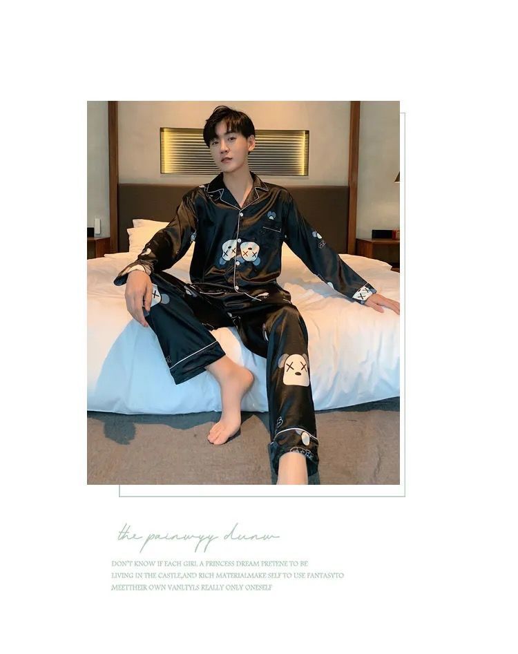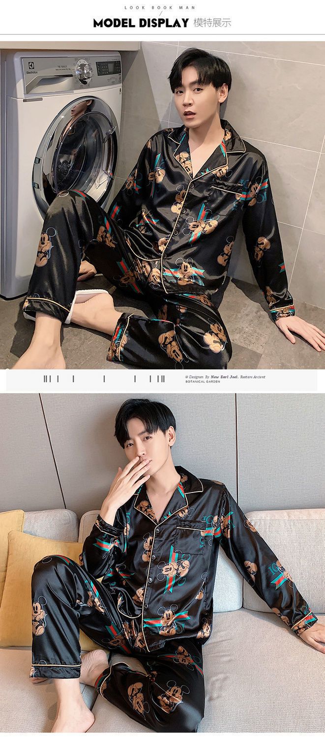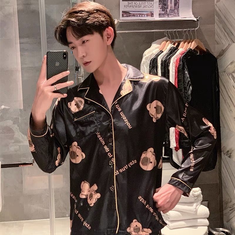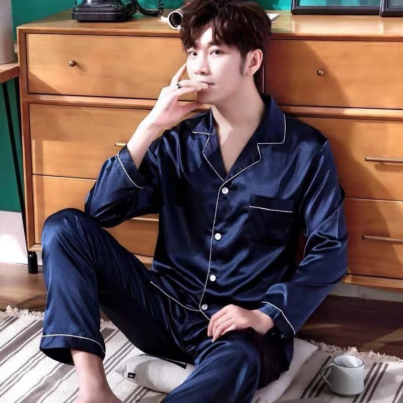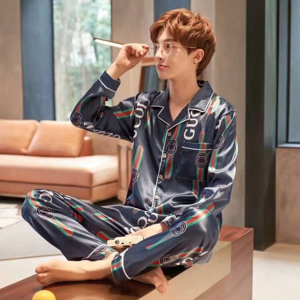 秋夏冬季男士睡衣冰丝薄款加大加肥长裤长袖宽松家居服两件套套装