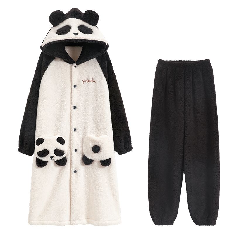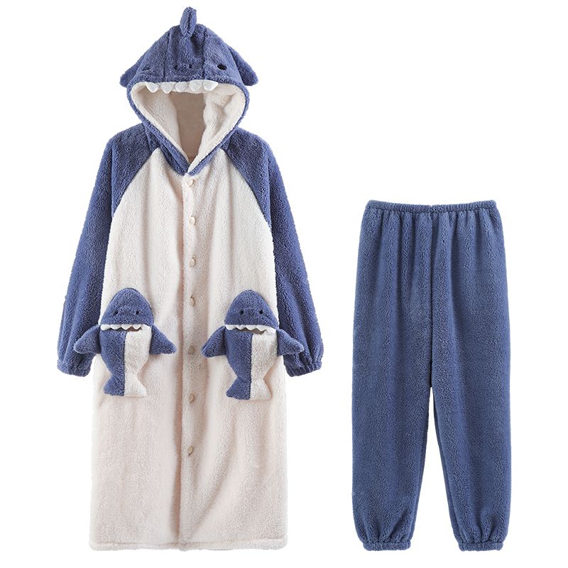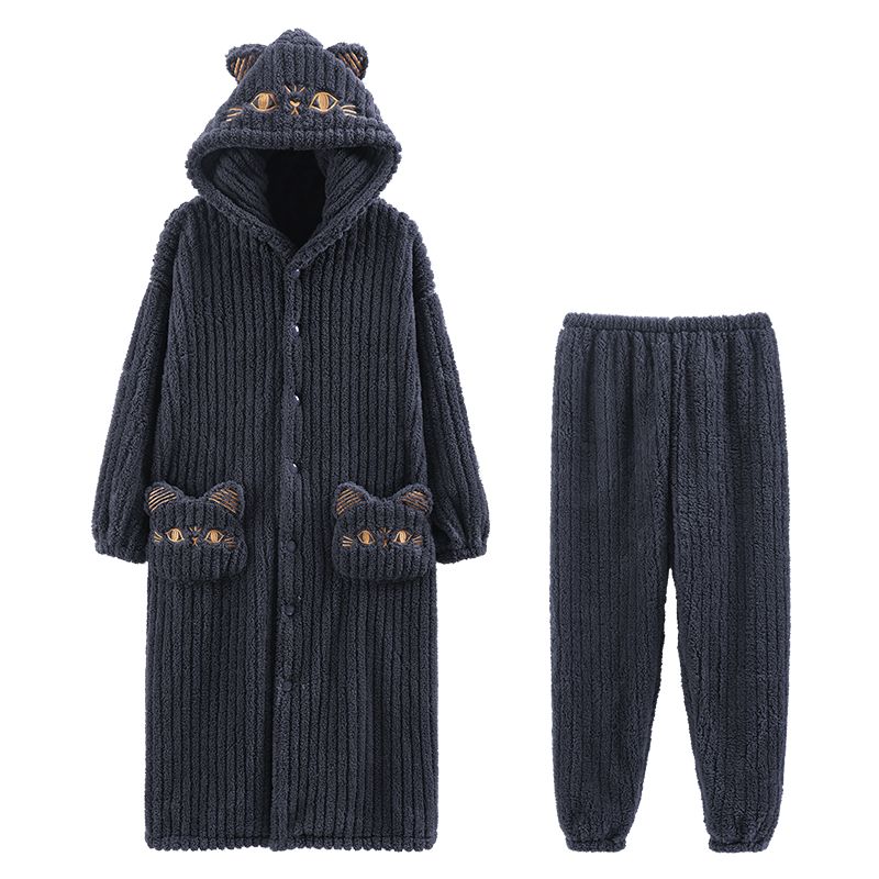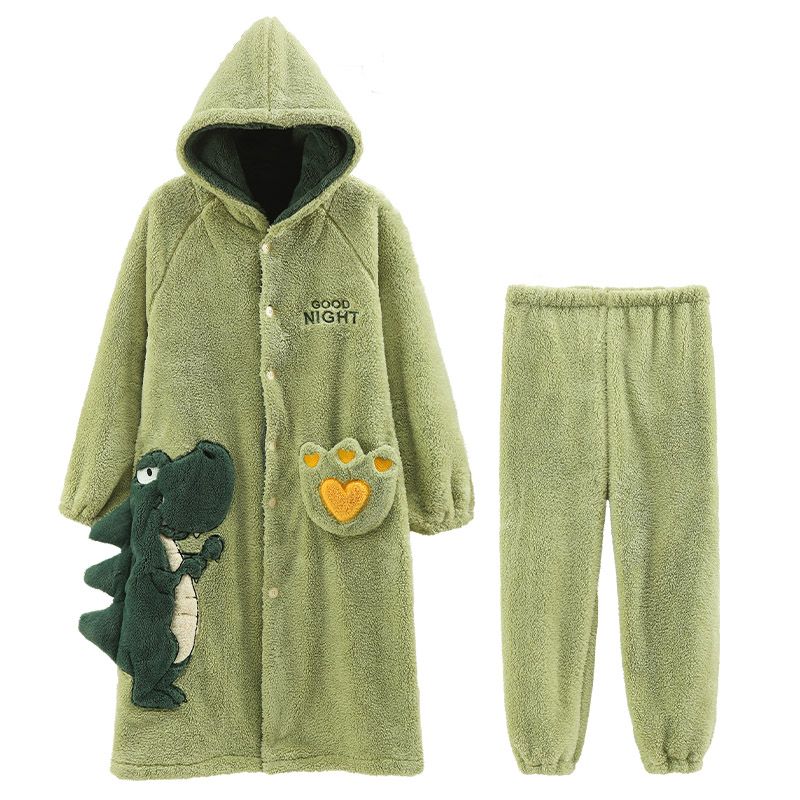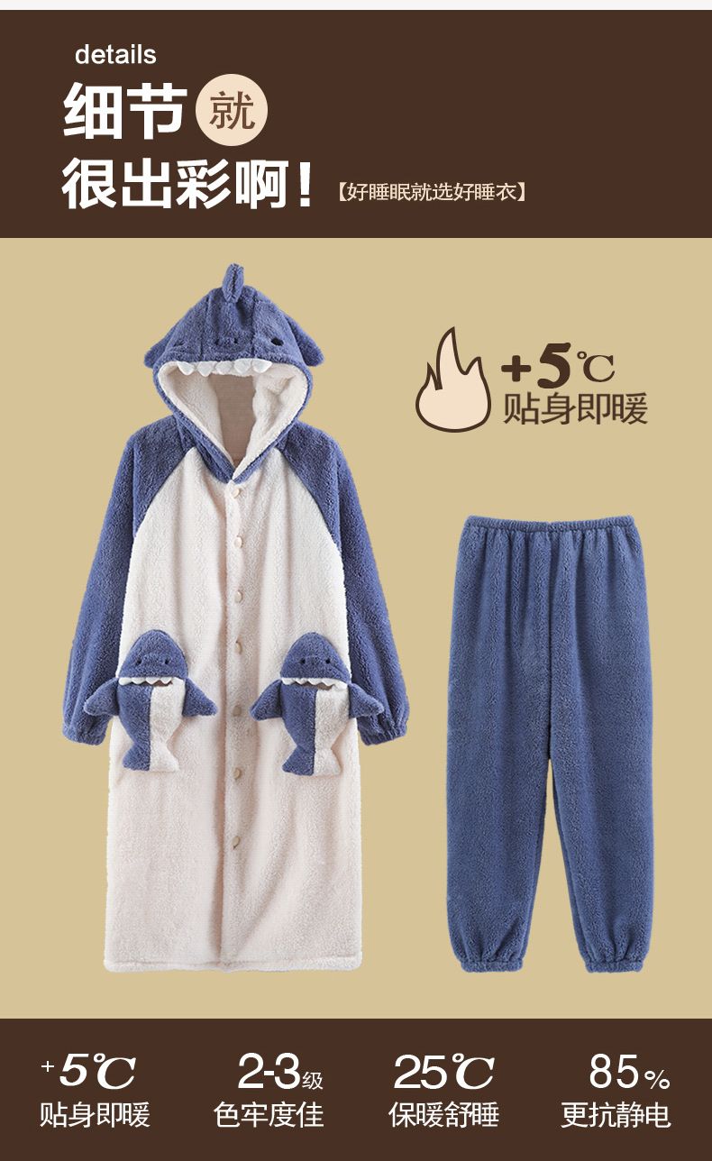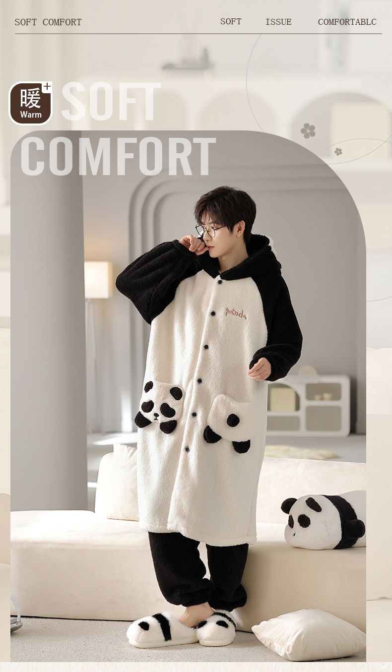 秋冬季男士睡衣加厚保暖法兰绒中长款睡袍冬天珊瑚绒家居服可外出