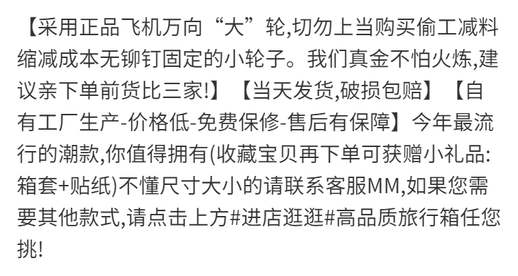 | 20-inch [boarding machine without side lifting feet]](20寸【可登机无侧提站脚】) | USD $13.98 | 99999 piece available |