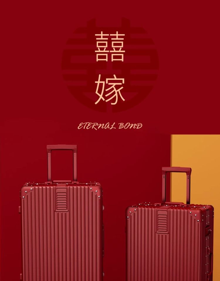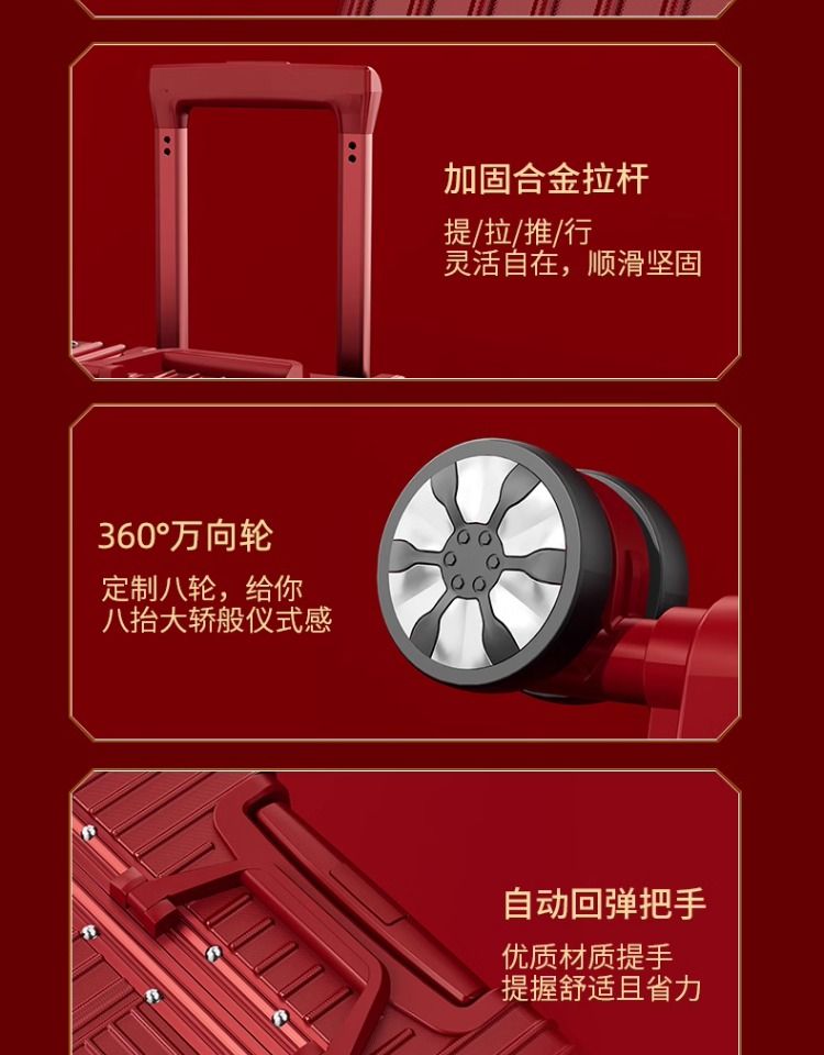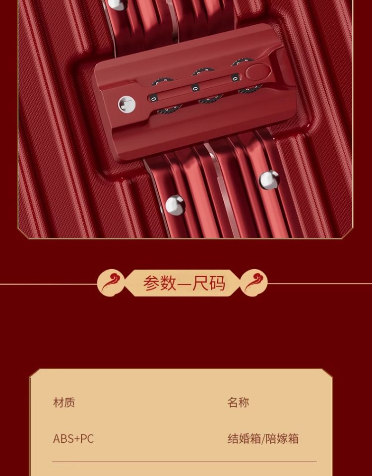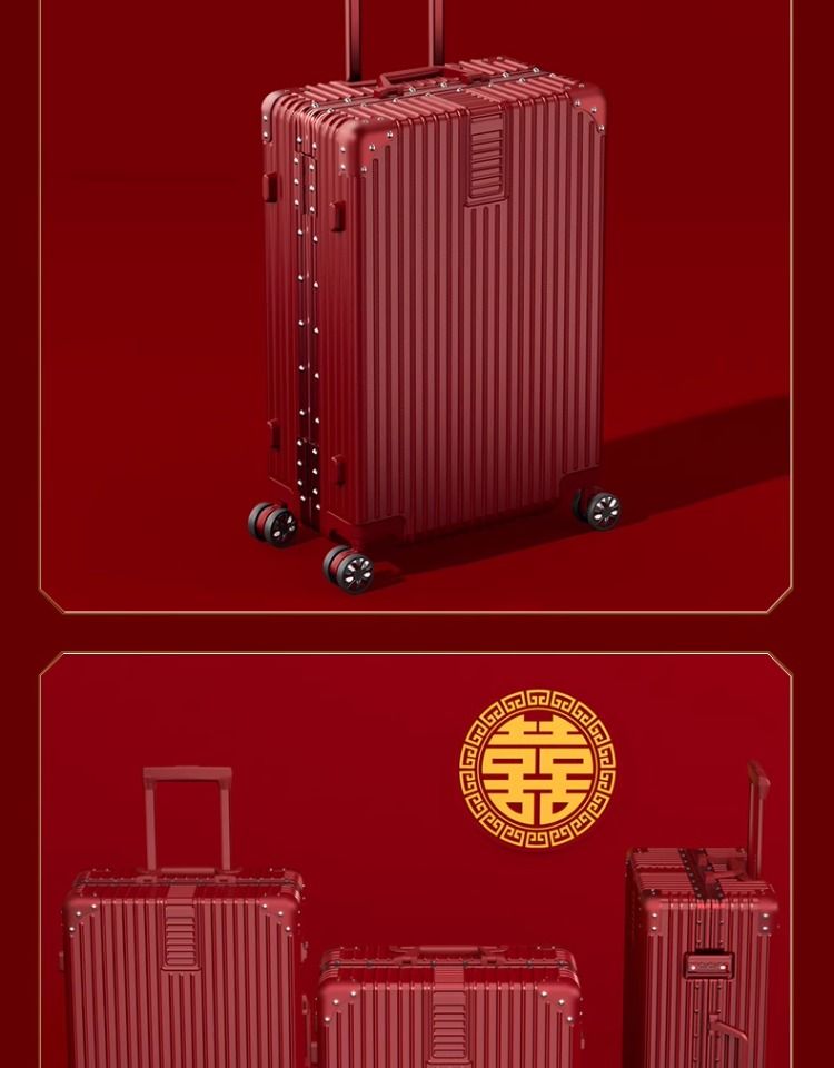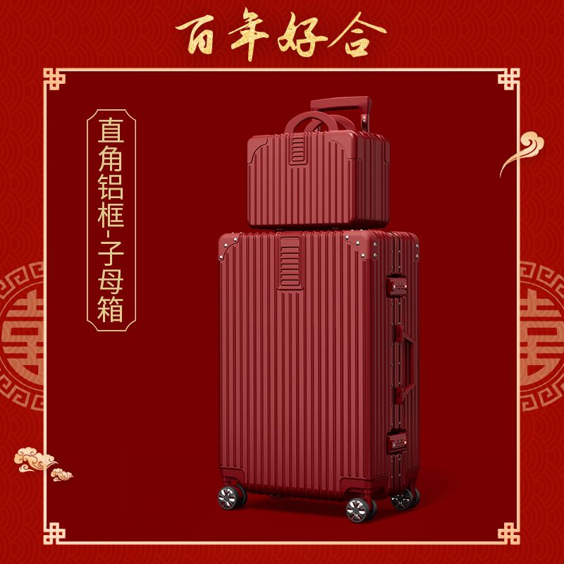 新娘结婚行李箱红色陪嫁皮箱婚礼嫁妆密码箱拉杆箱婚嫁密码箱子