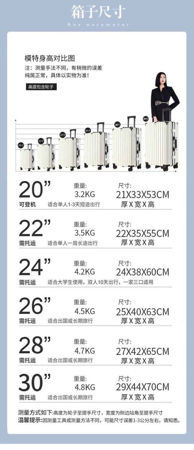 行李箱男学生大容量超大旅行箱26铝框万向轮密码箱20拉杆箱女结实