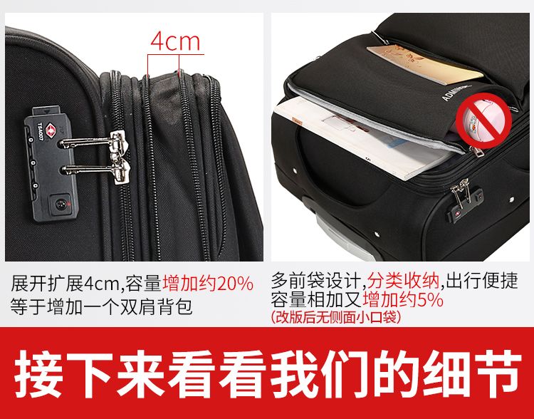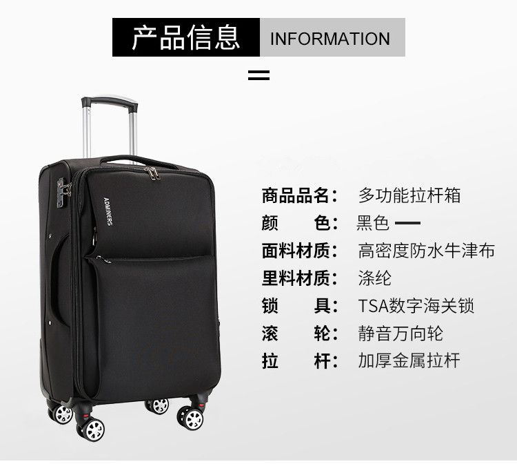 牛津布行李箱大容量拉杆箱万向轮旅行箱男女商务登机箱子皮箱出国