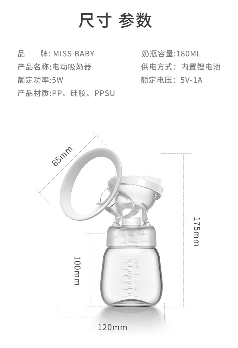 MissBaby电动吸奶器自动挤奶器吸乳孕产妇拔奶器吸力大非手动静音