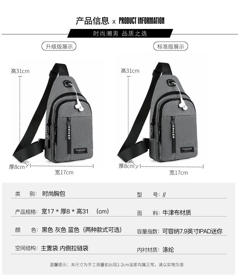 胸包男士背包2021新款尼龙帆布胸包休闲运动旅游胸前包单肩斜挎包