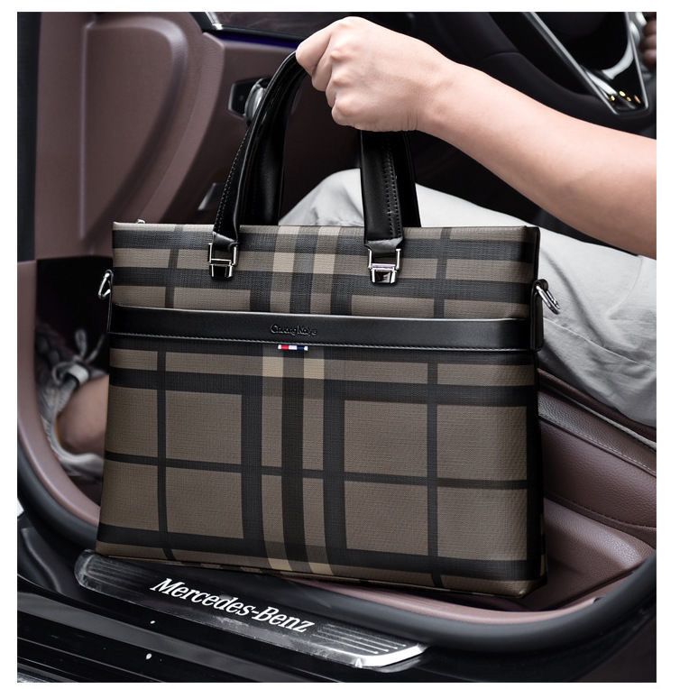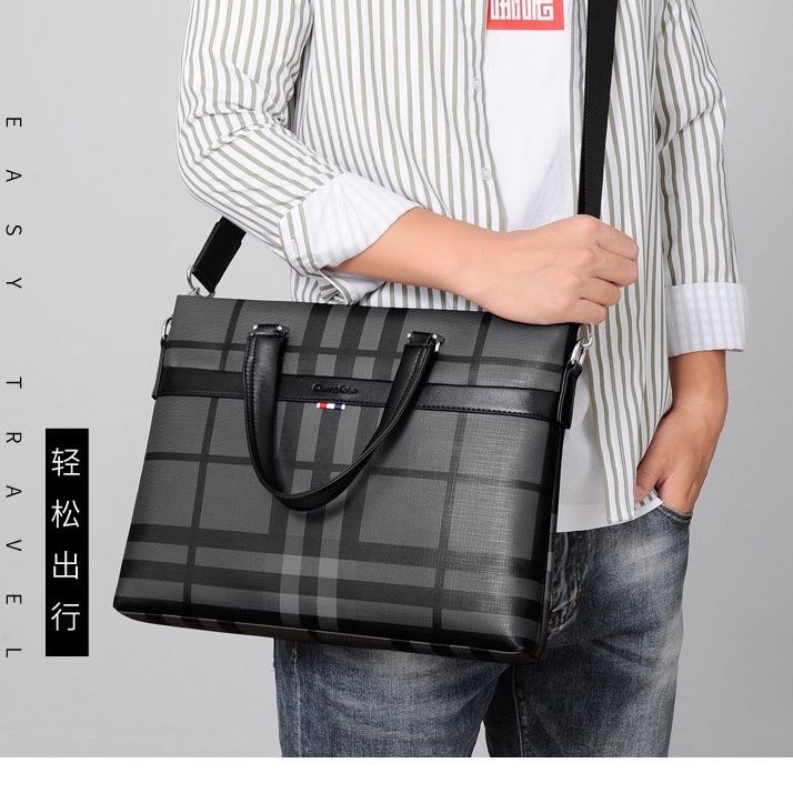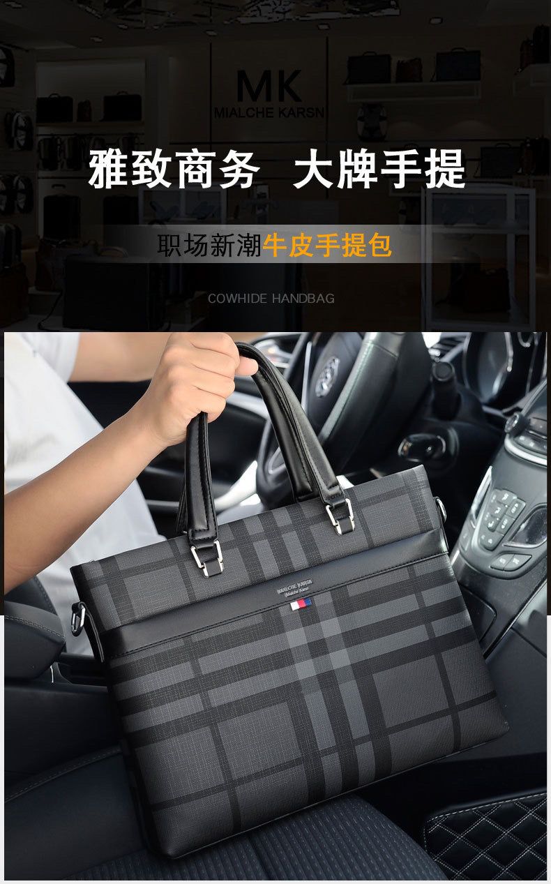 真皮商务男士手提包大容量出差男包单肩斜挎包商务公文包文件包