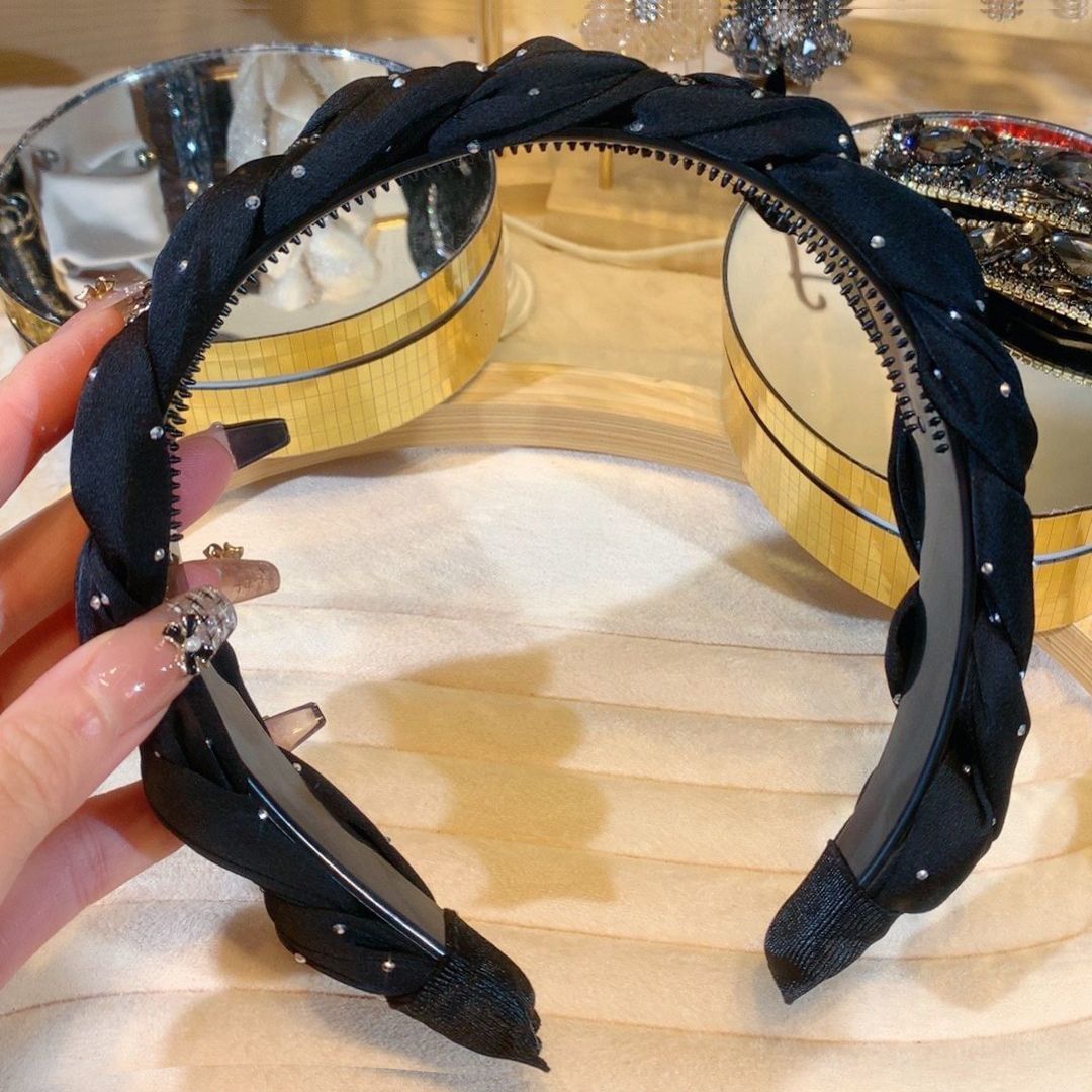 2023年新款高颅顶黑色带齿发箍女镶钻宽边麻花辫百搭网红发饰头箍