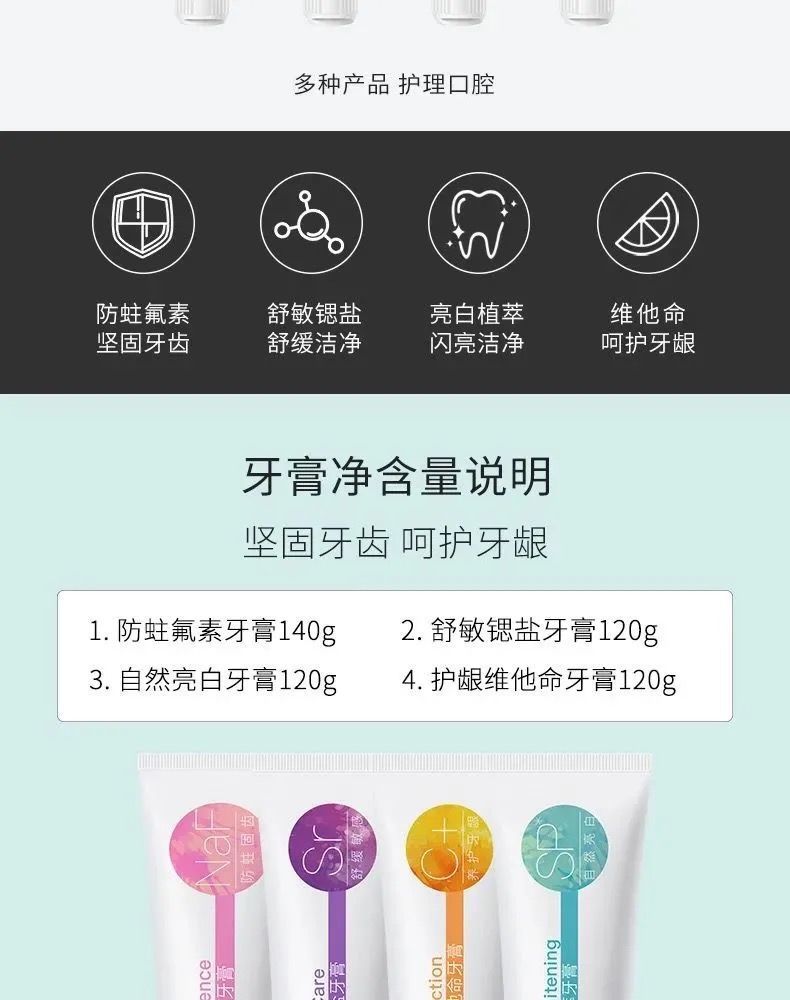 | four pieces of skin anti-moth + gum care + whitening + shu min(丨4支丨防蛀+护龈+美白+舒敏丨) | USD $8.07 | 99999 piece available |