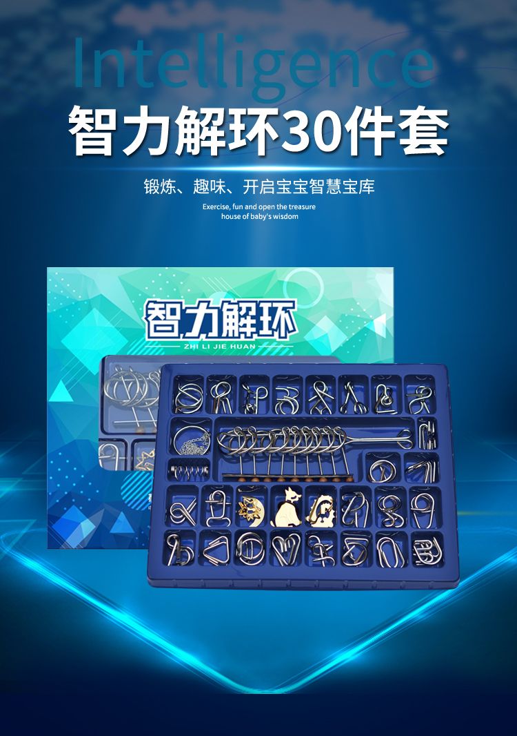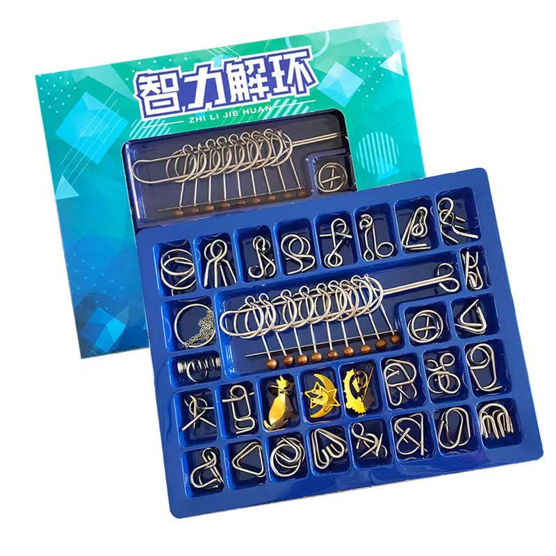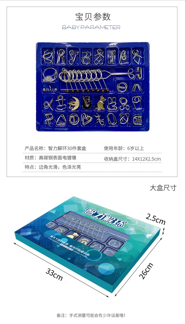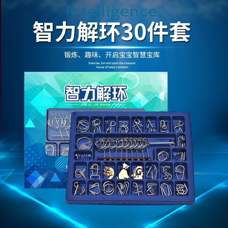 | boutique color box chinese string puzzle 30-piece set-blue case(精品彩盒九连环30件套-蓝盒) | USD $5.02 | 99999 piece available |