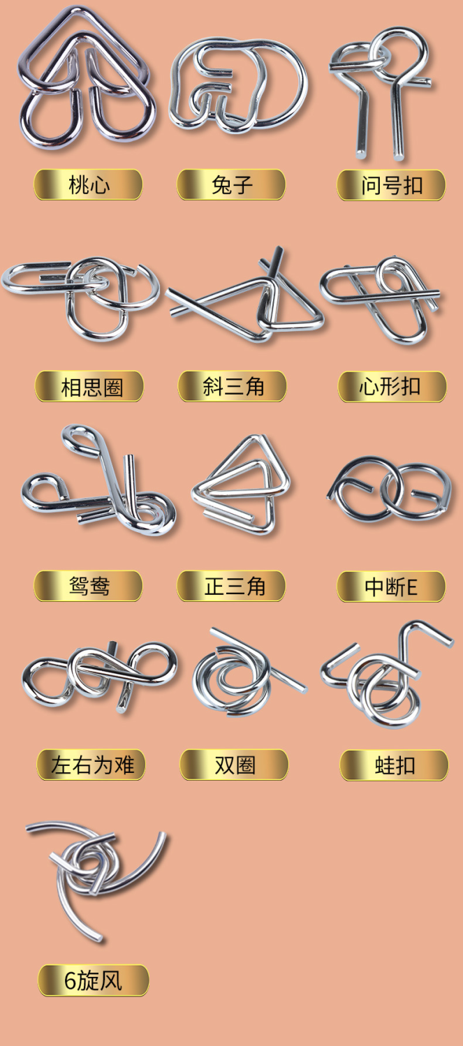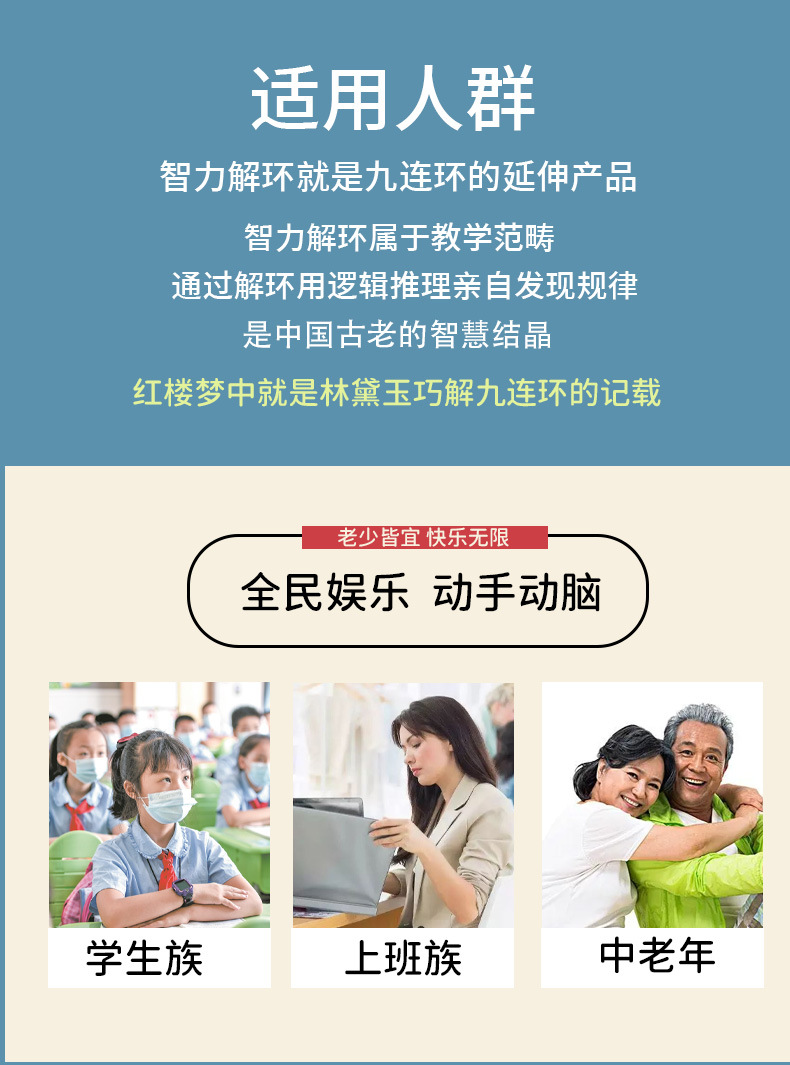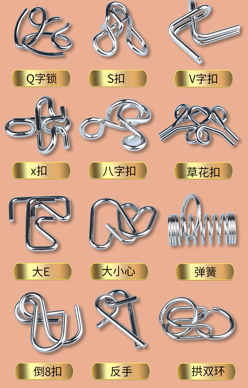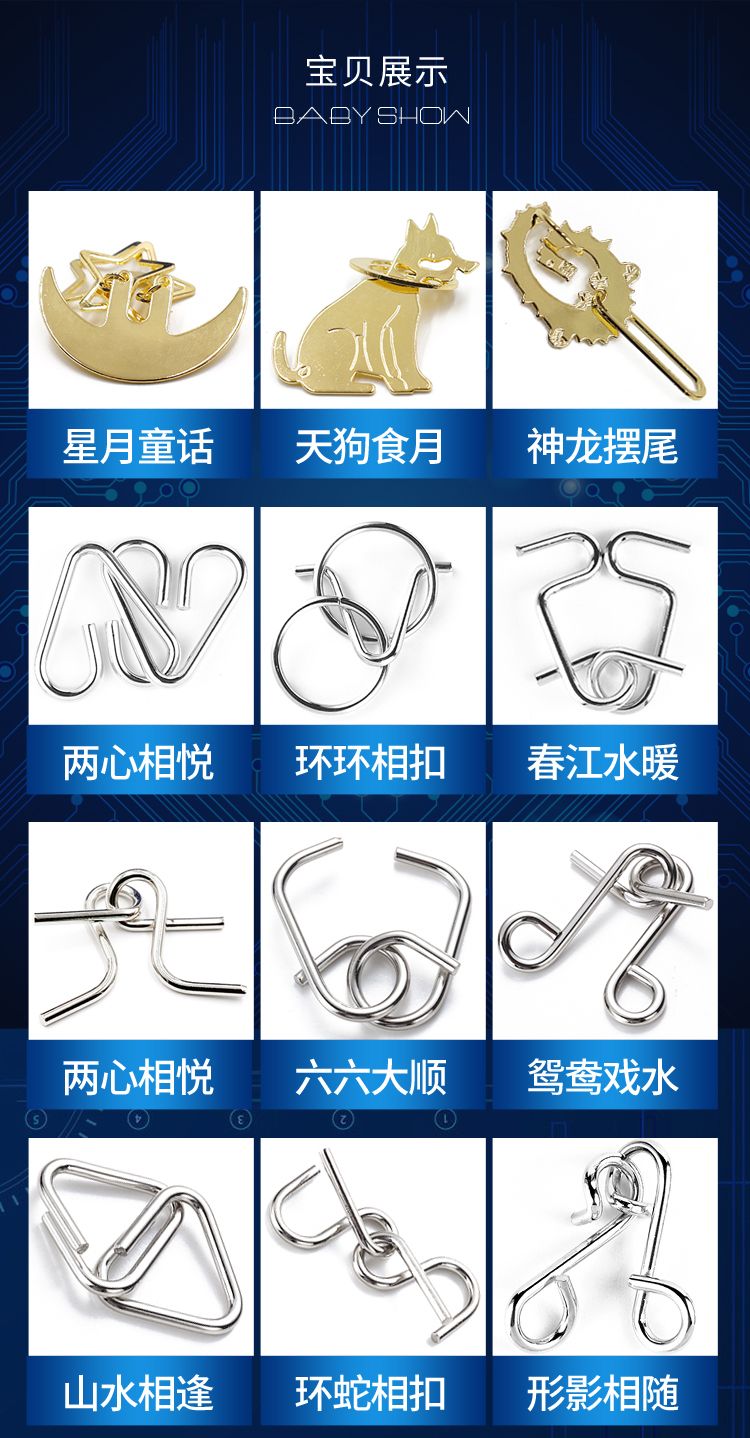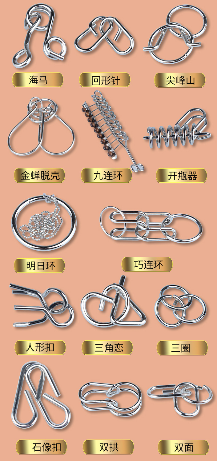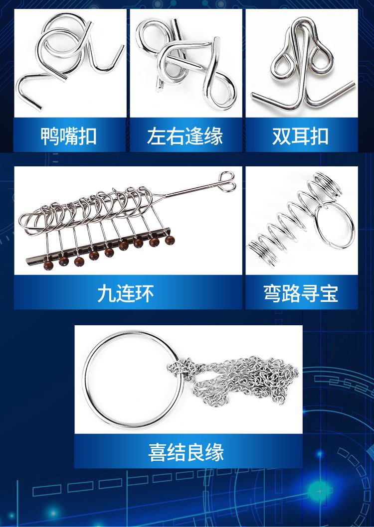 | chinese string puzzle + intelligence knot 8-piece abc(九连环+智力扣8件套ABC) | USD $2.3 | 99999 piece available |