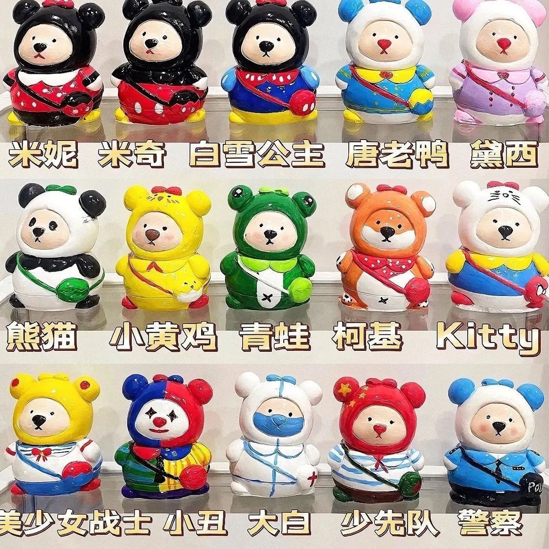 爆款背包熊送亮油3D立体石膏娃娃diy彩绘涂鸦摆件手工摆摊涂色