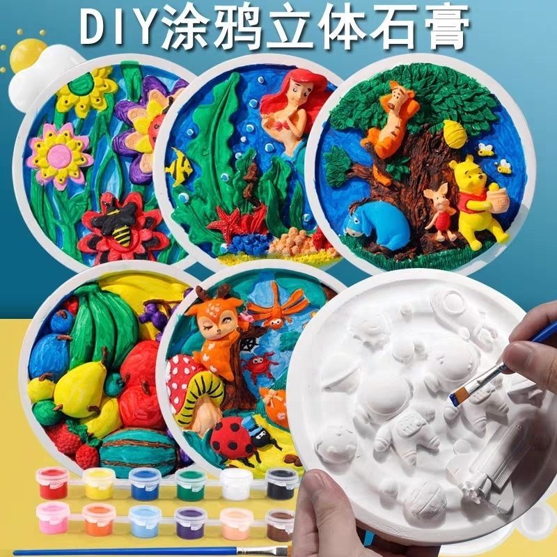 【网红】3D石膏娃娃立体浮雕画彩绘diy石膏浮雕画批发夜市摆摊