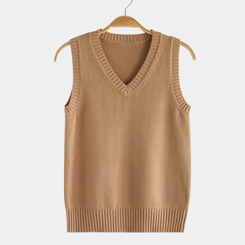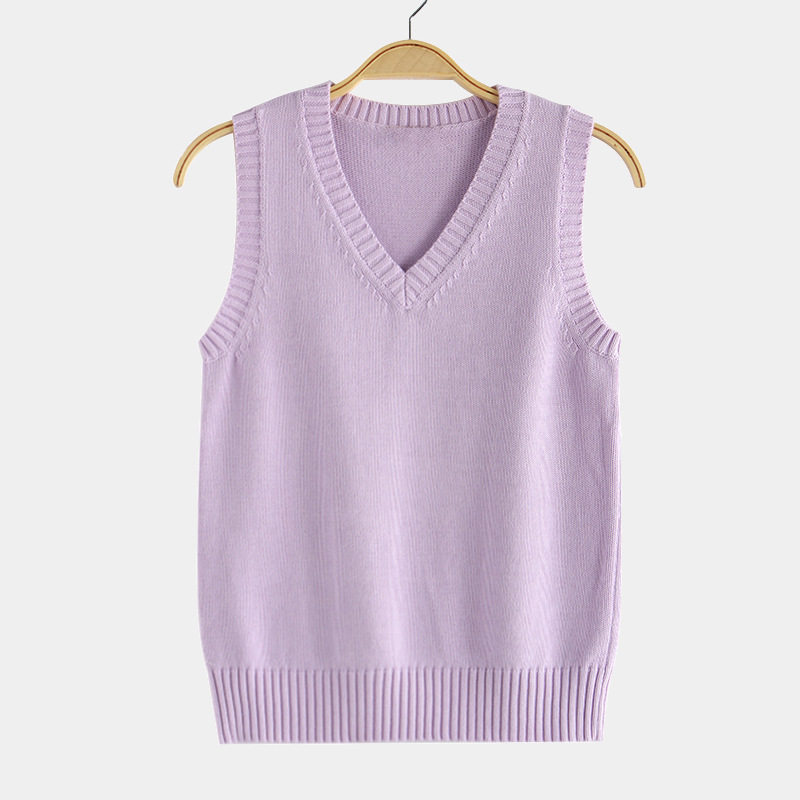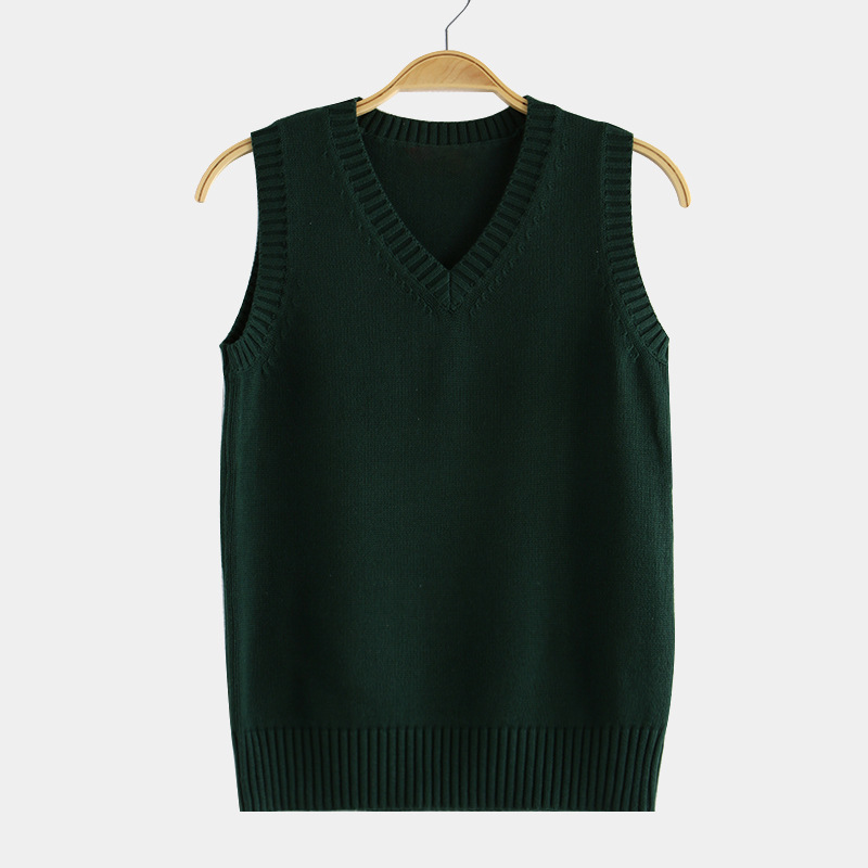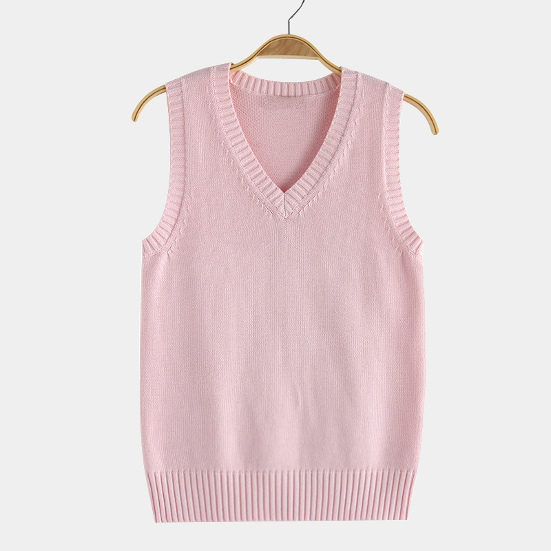 针织厂批发17色JK制服纯色背心 日系v领套头秋冬毛衣马甲针织衫