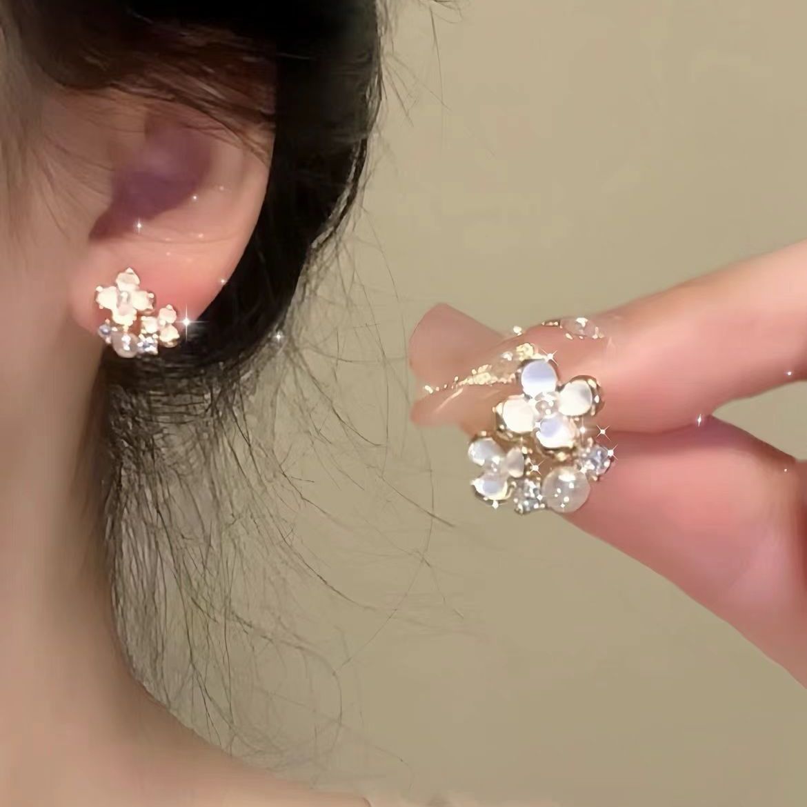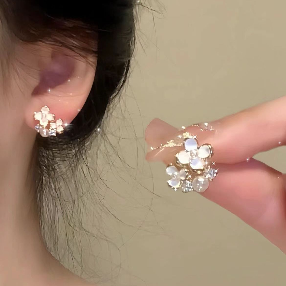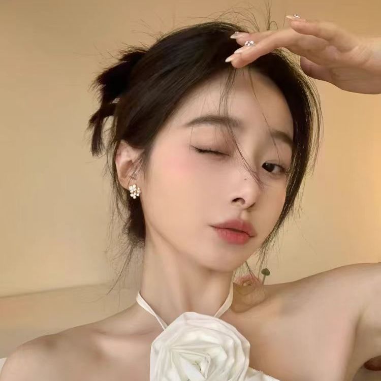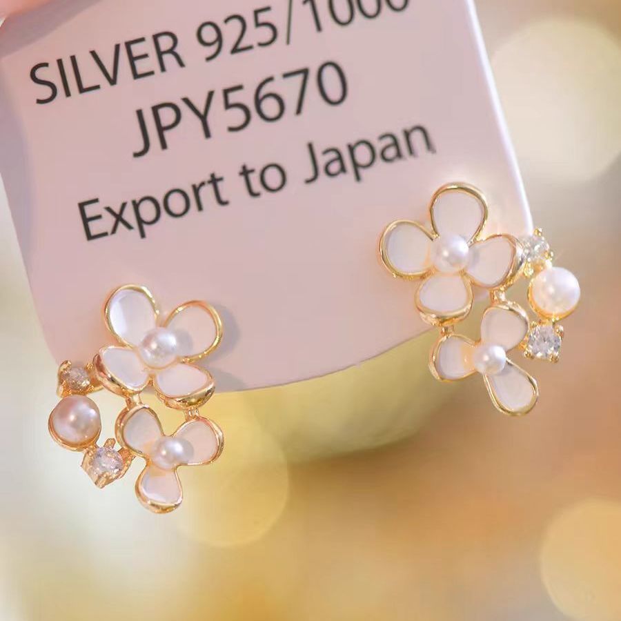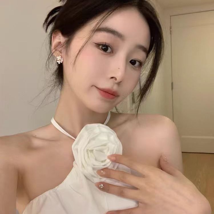 「雪落栀子」纯白花朵锆石925银耳环女甜美气质小众设计感小花
