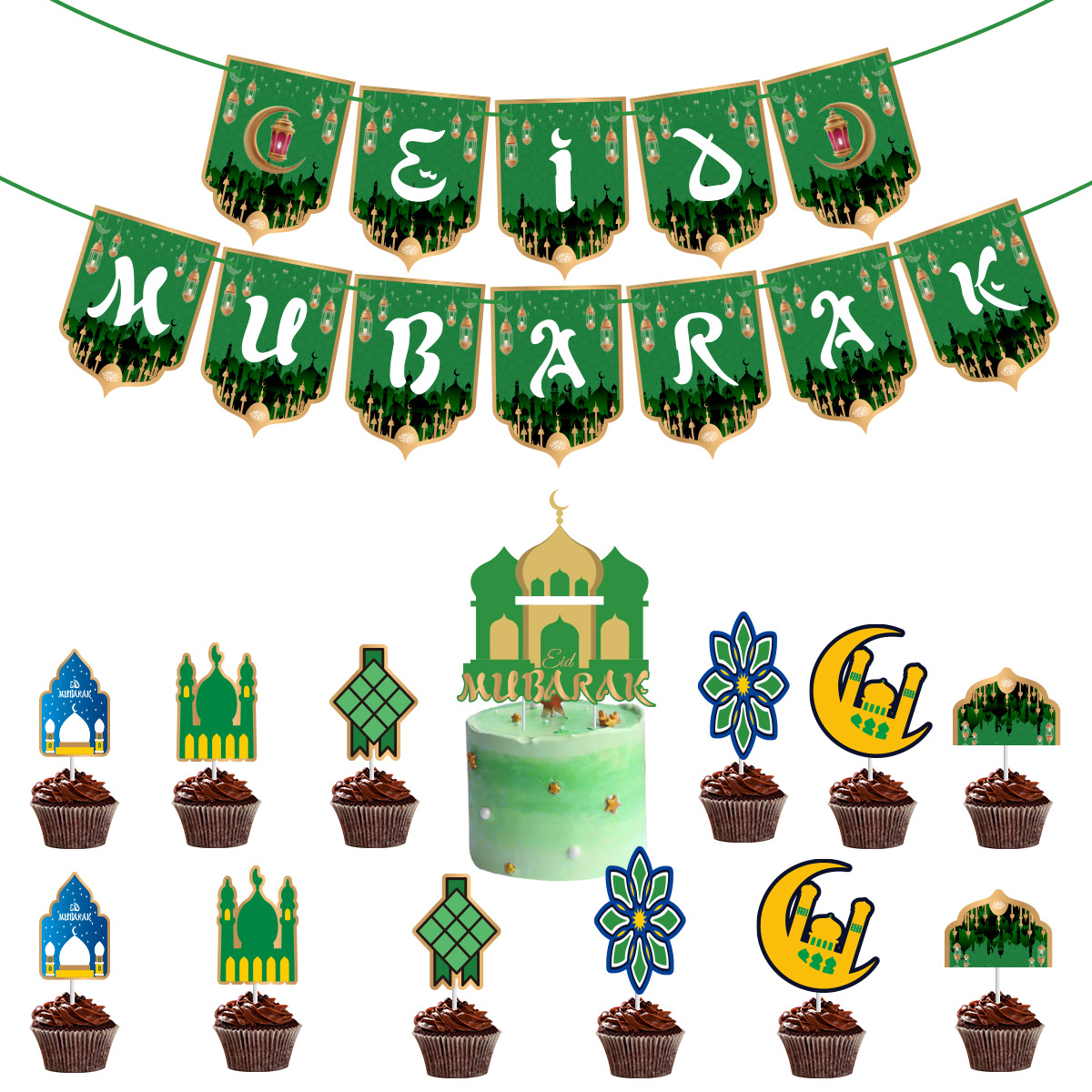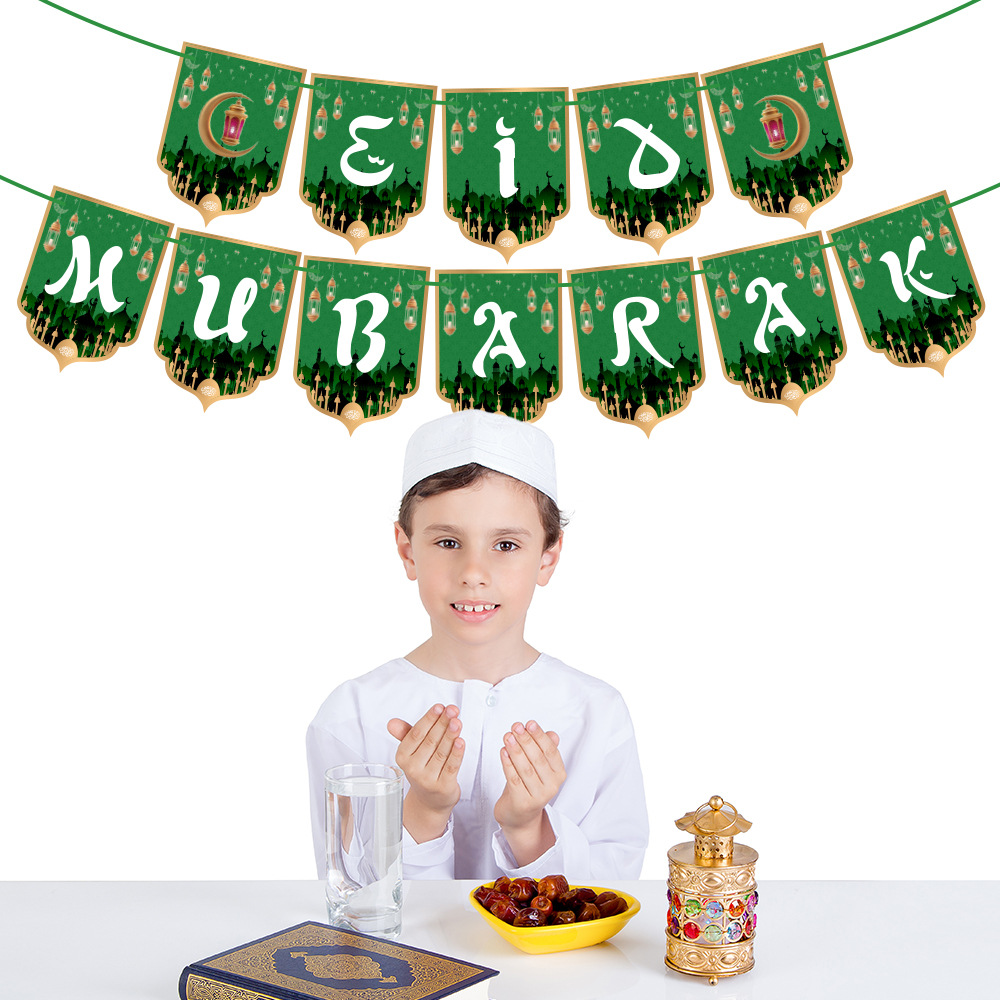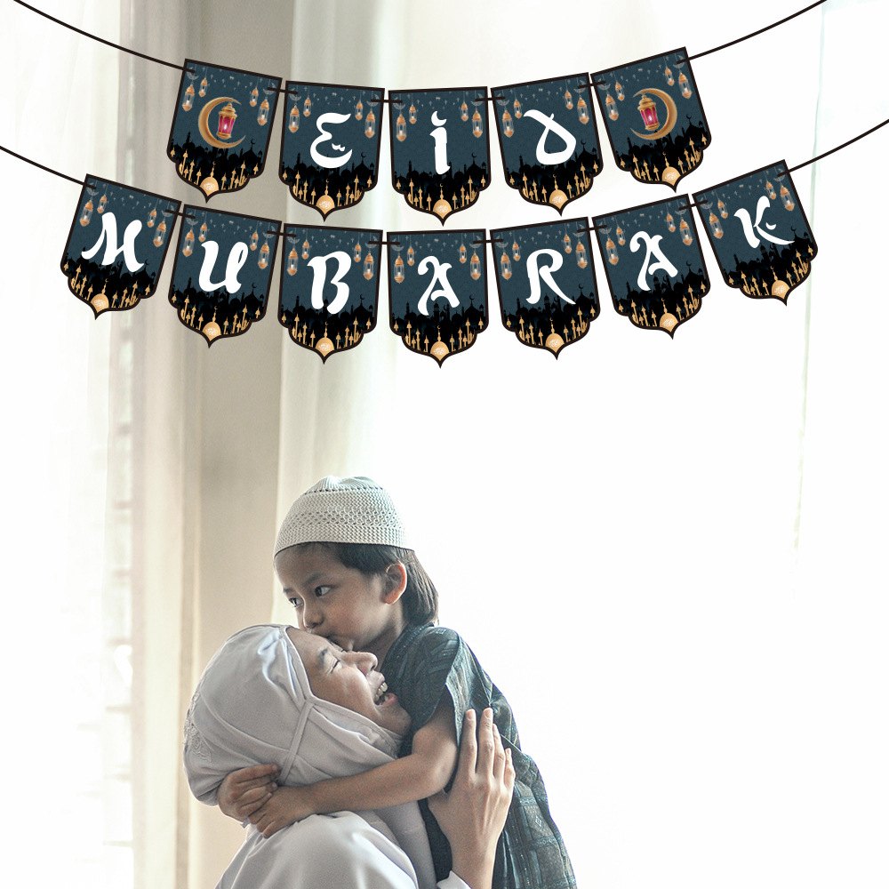 月亮节派对装饰横幅拉旗 中东节日场景布置装饰挂饰蛋糕插牌