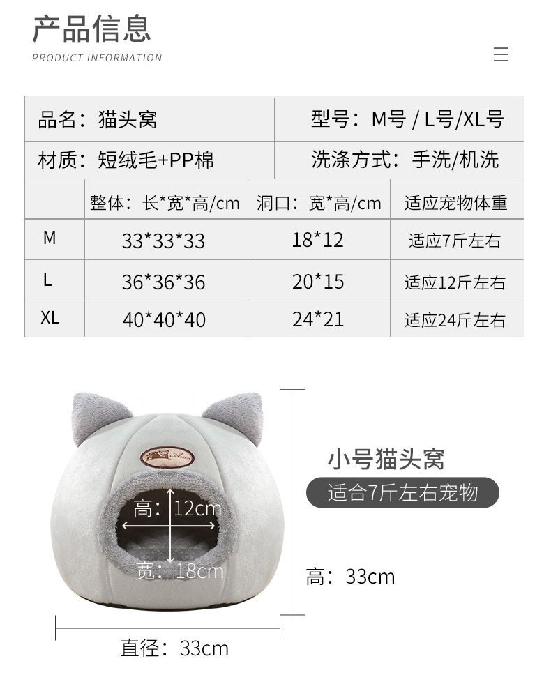 | cat head nest (a total of pet bed)(猫头窝(共一个窝垫)) | USD $7.32 | 99999 piece available |