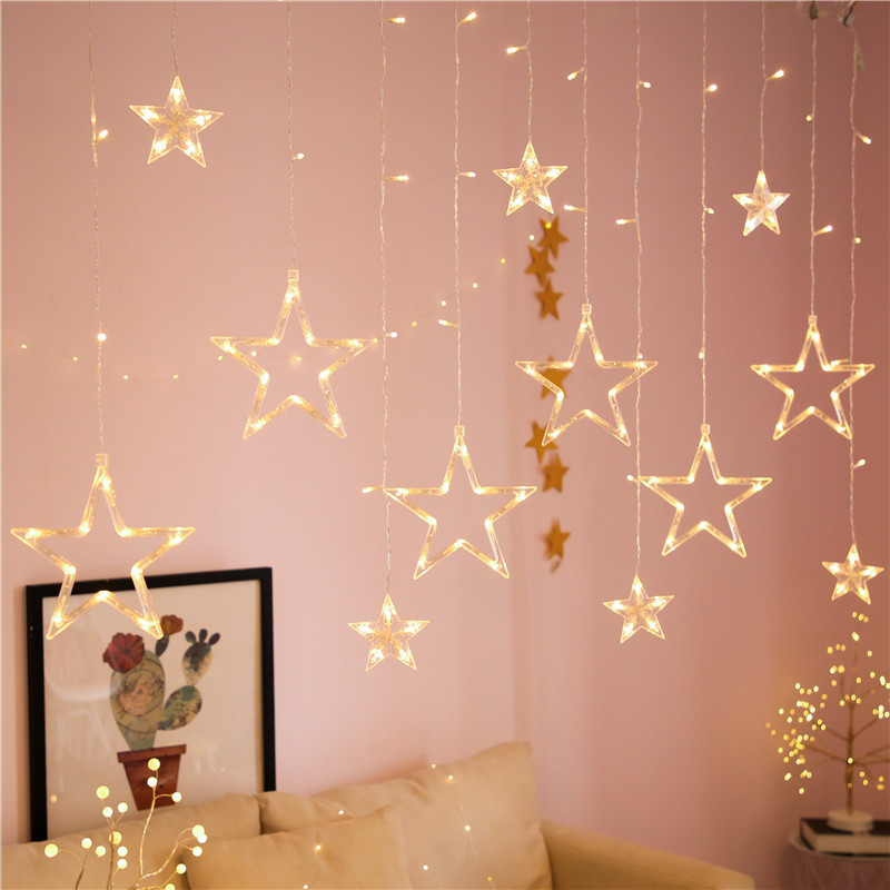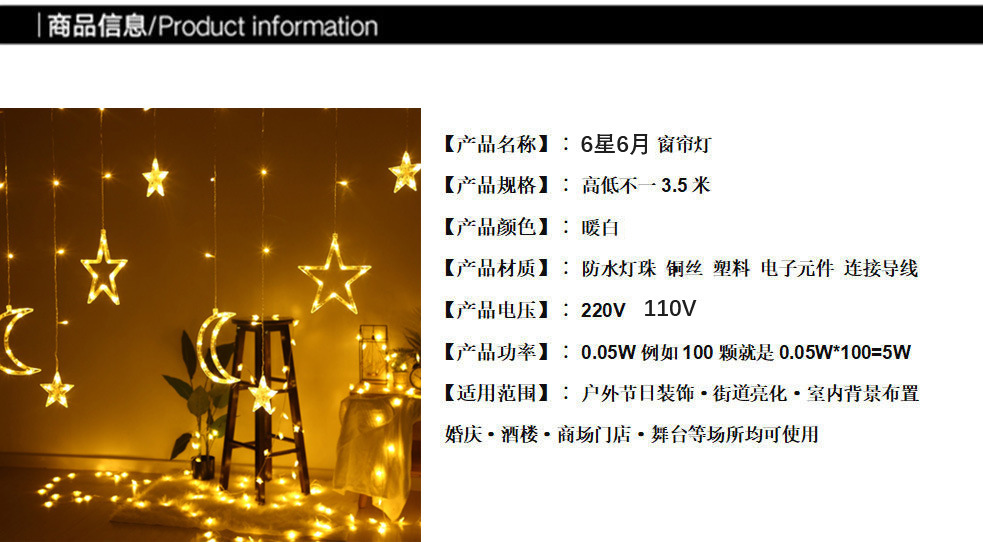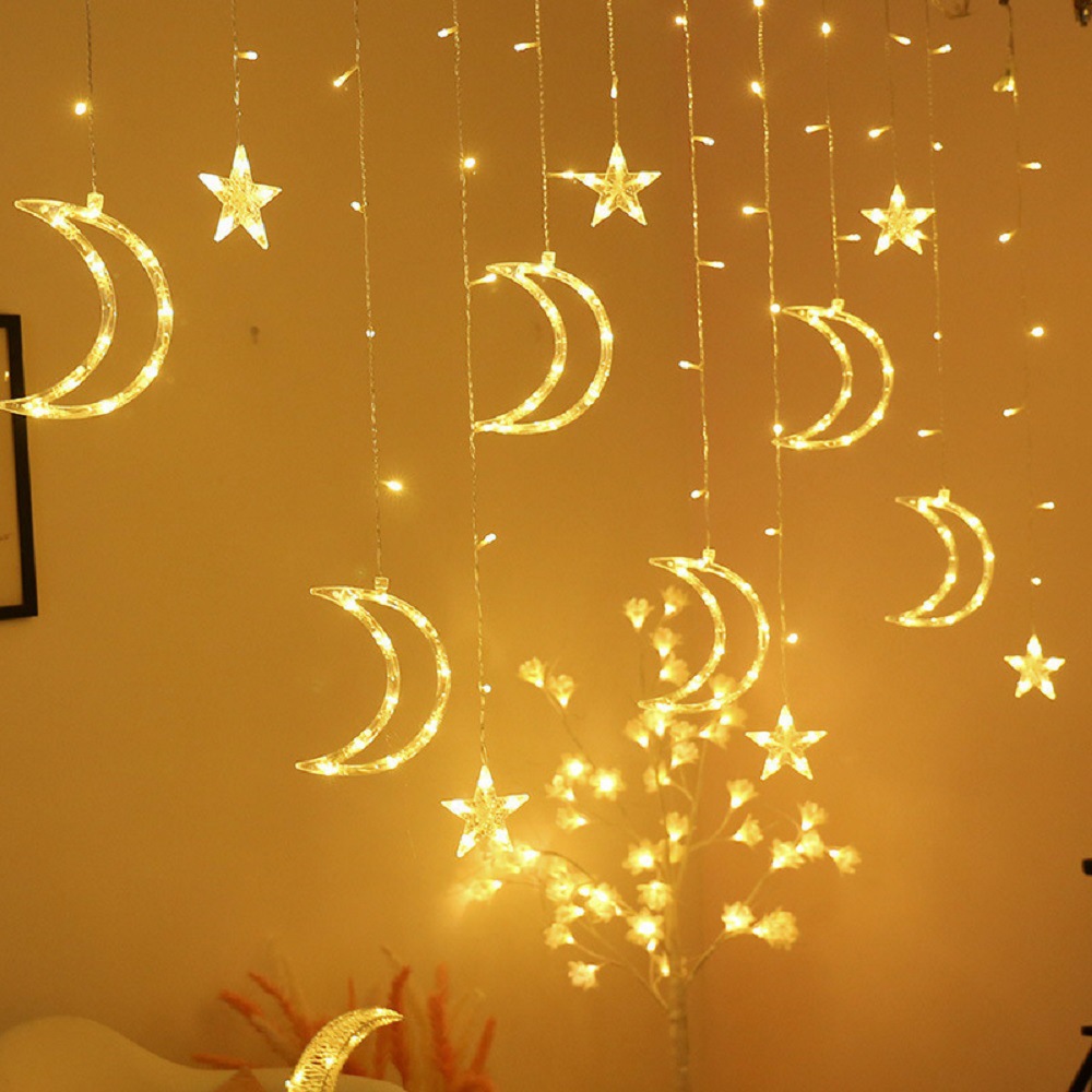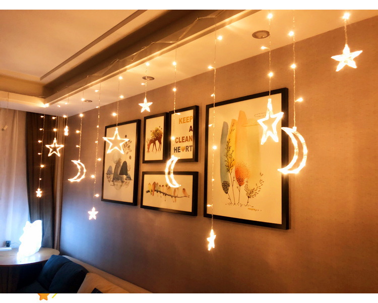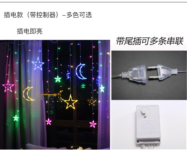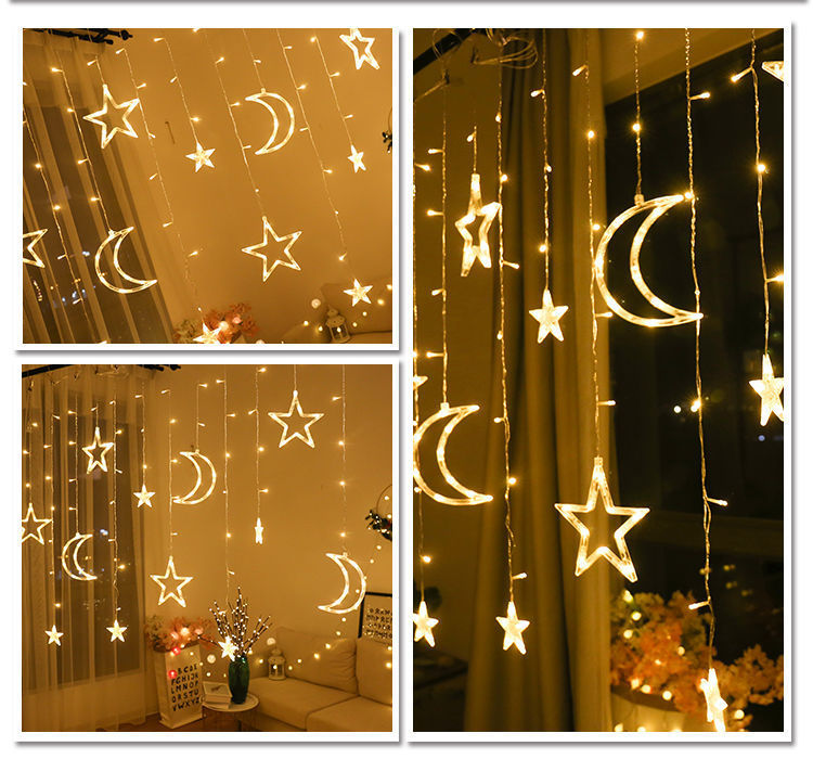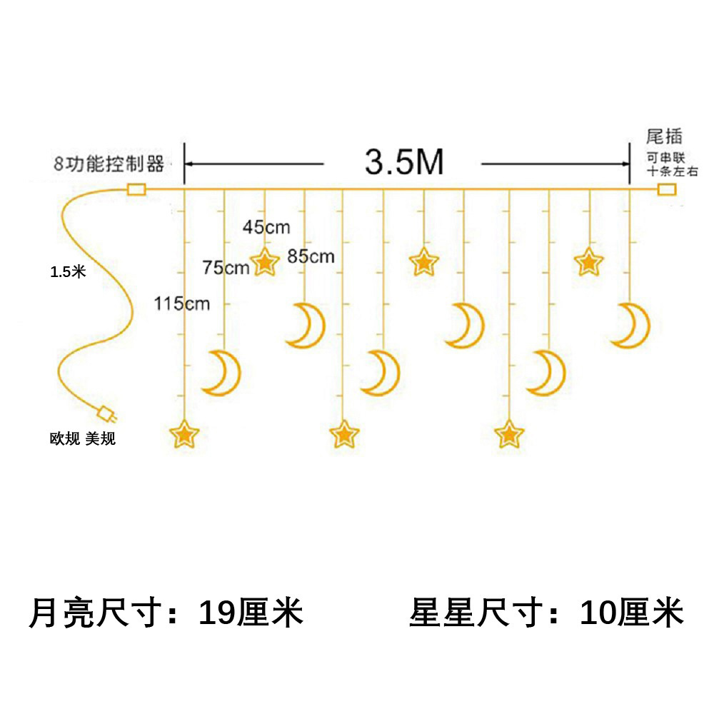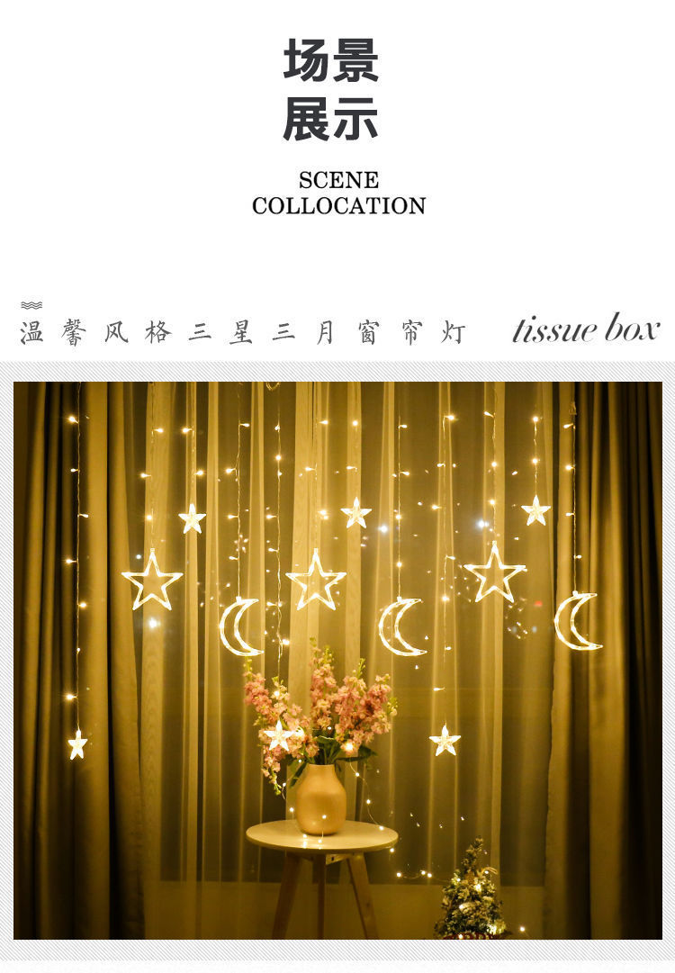 LED派对装饰铜线星星月亮灯串中东节日窗帘星月灯