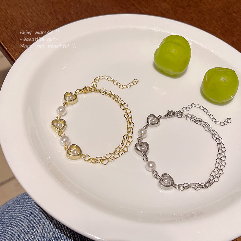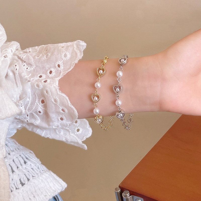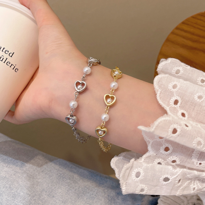 饰品韩系爆款个性高级感珍珠手串手饰品小众冷淡风镂空爱心手链女
