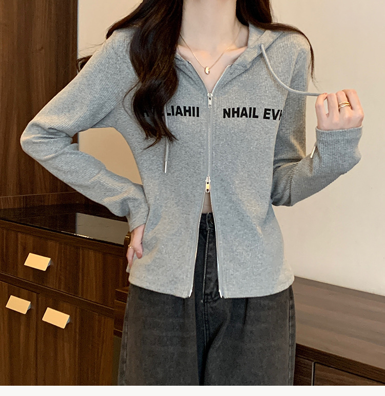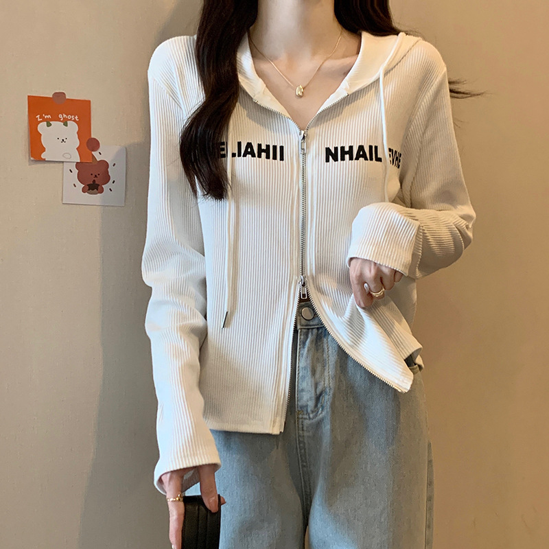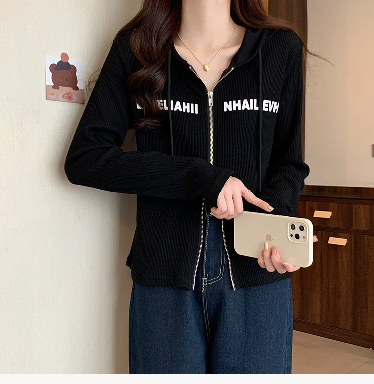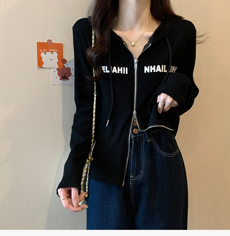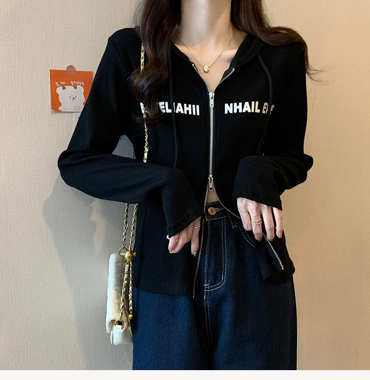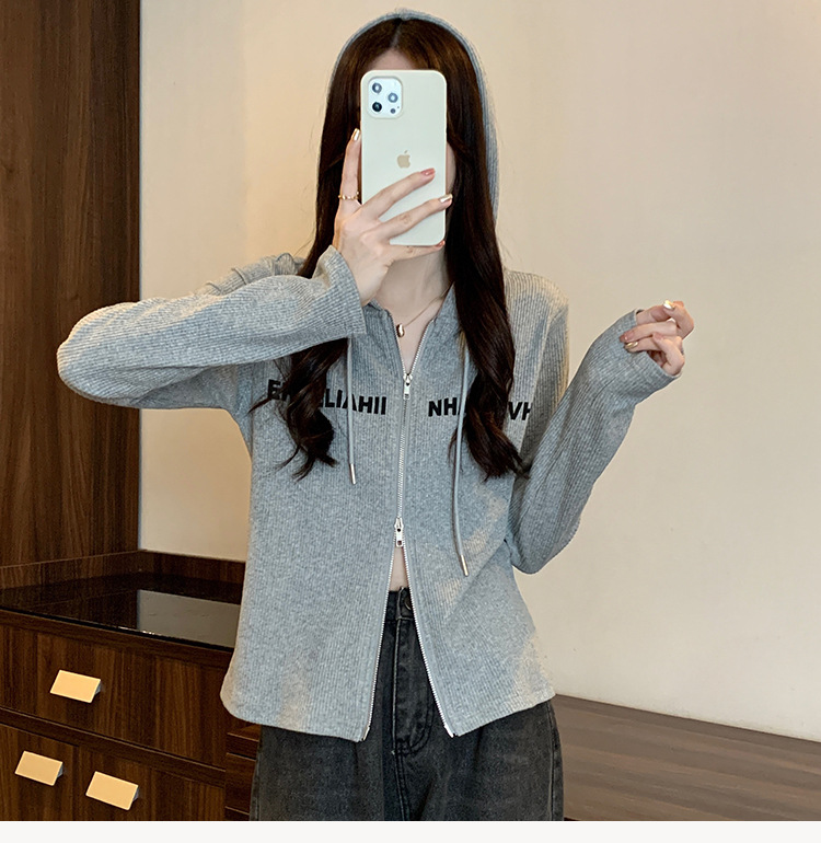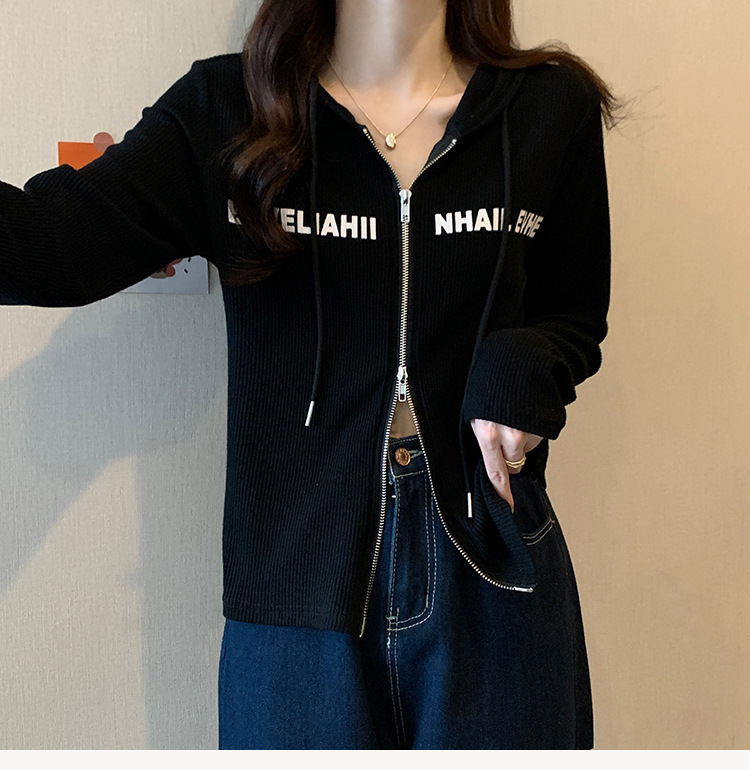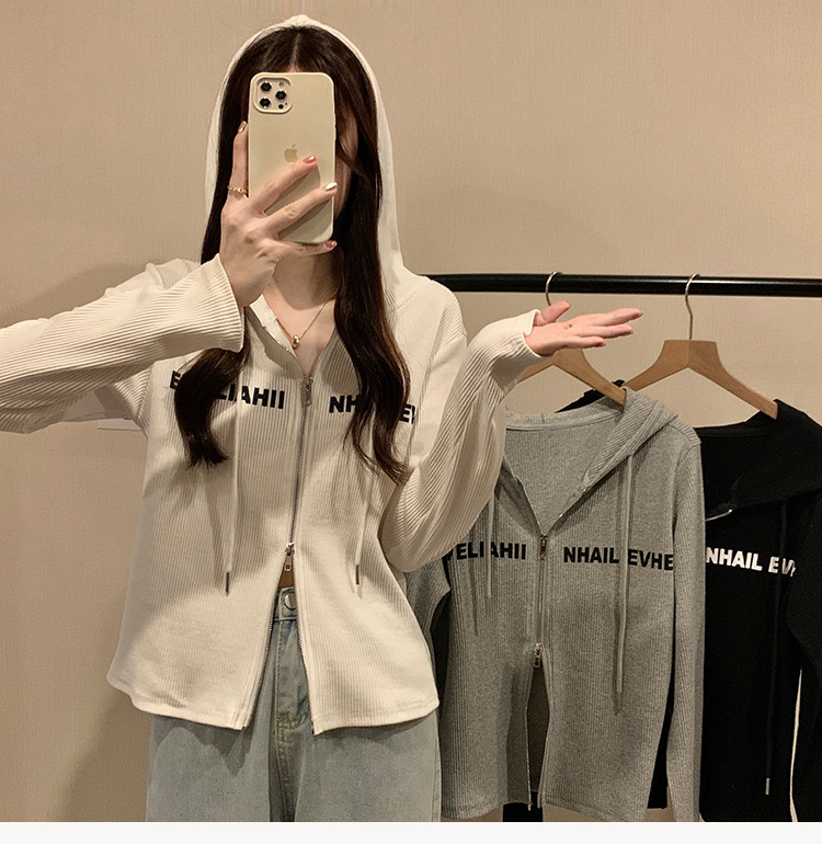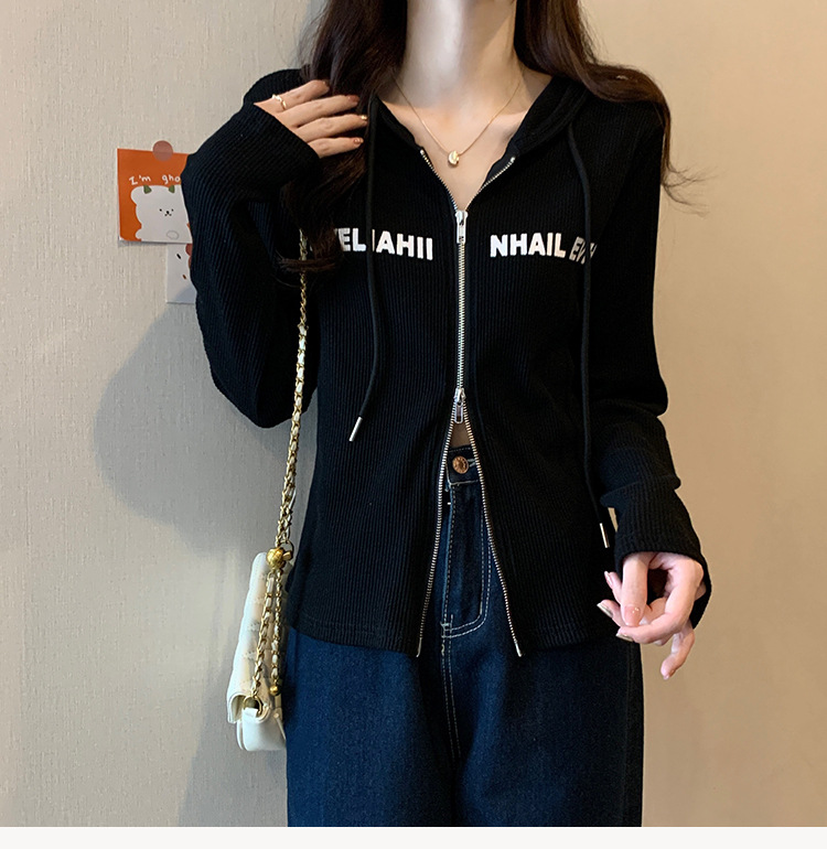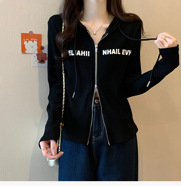 【原版做工】大码设计感小众双拉链连帽长袖T恤女秋季正肩显瘦上