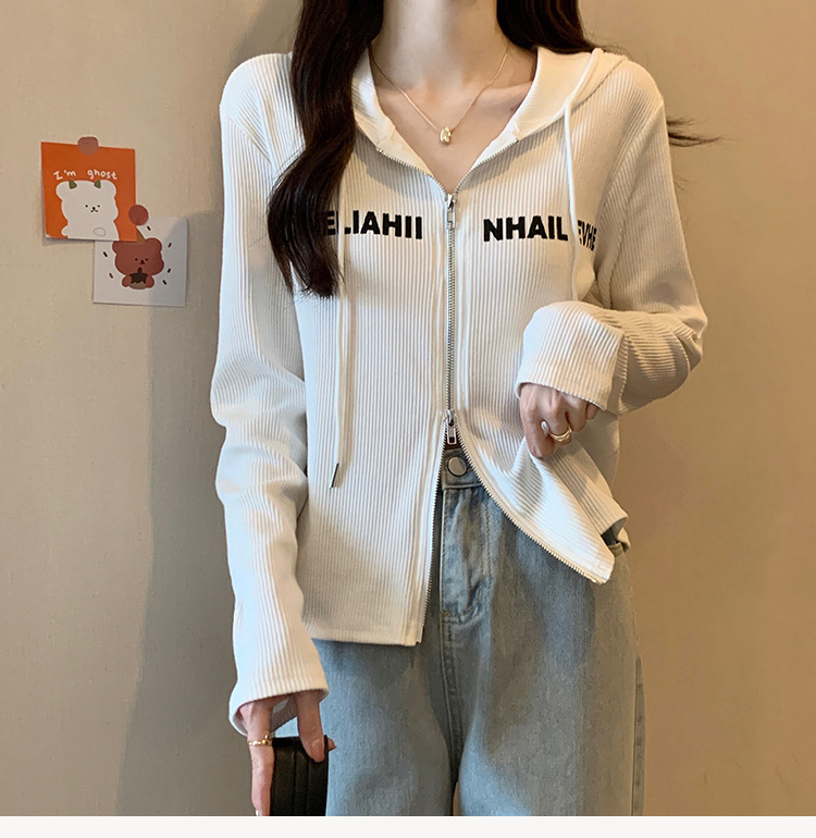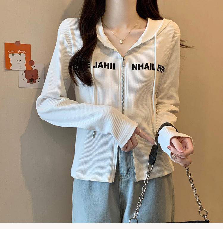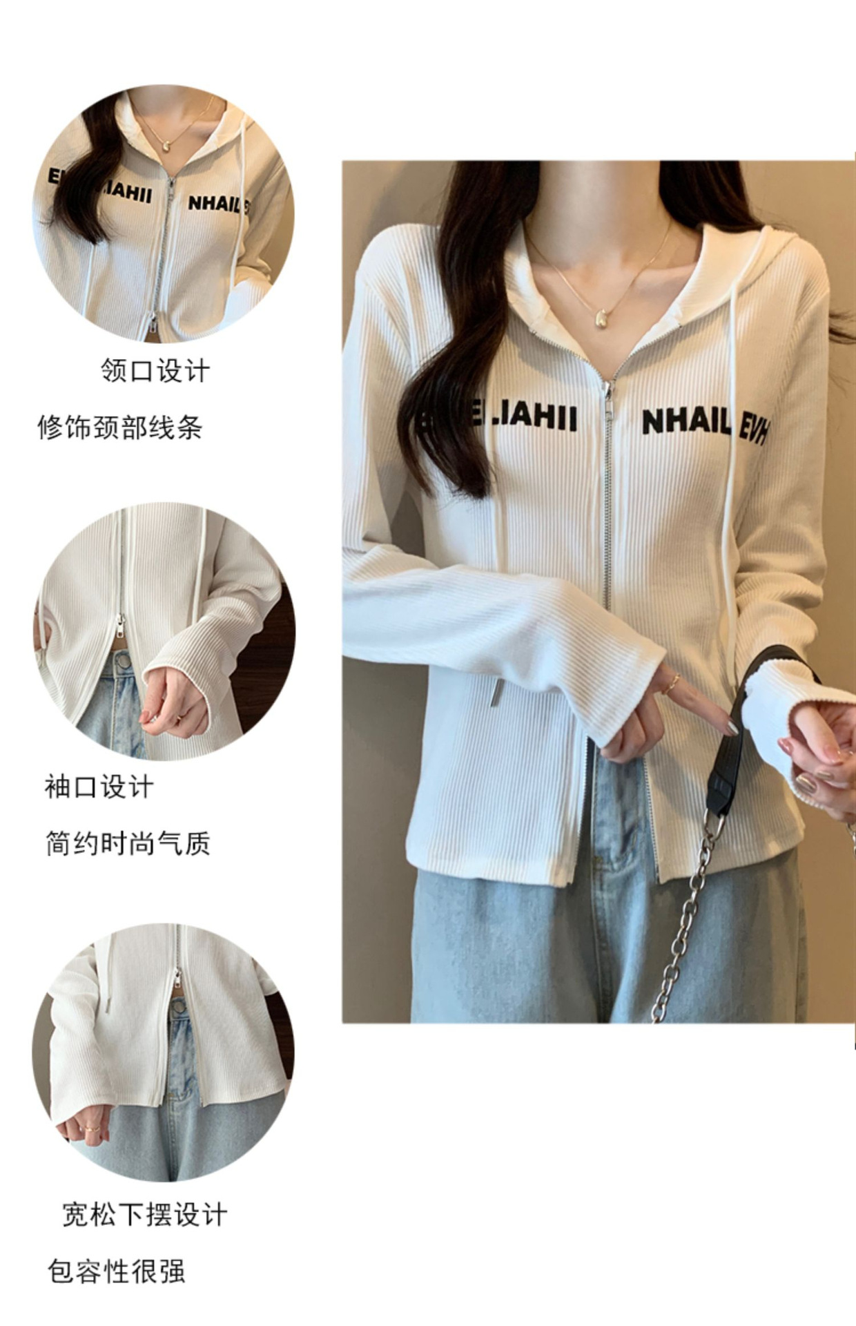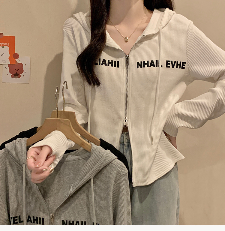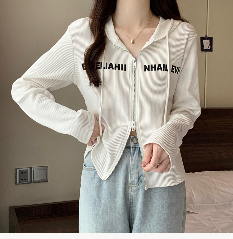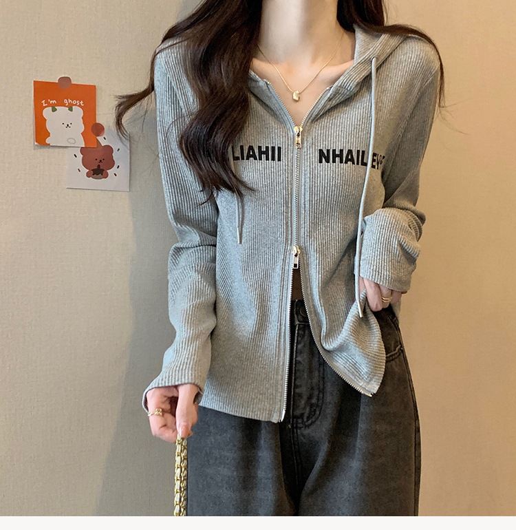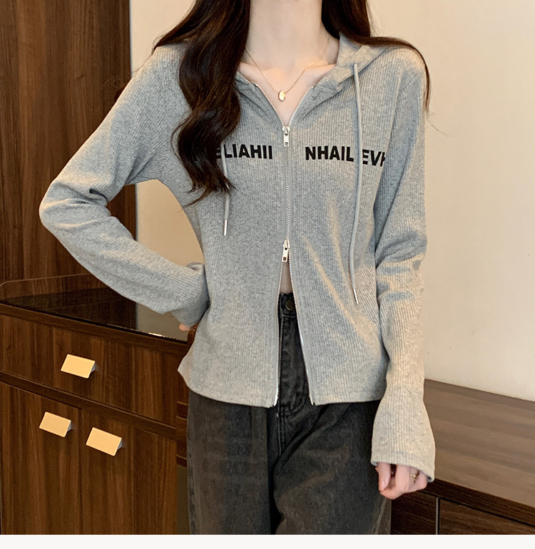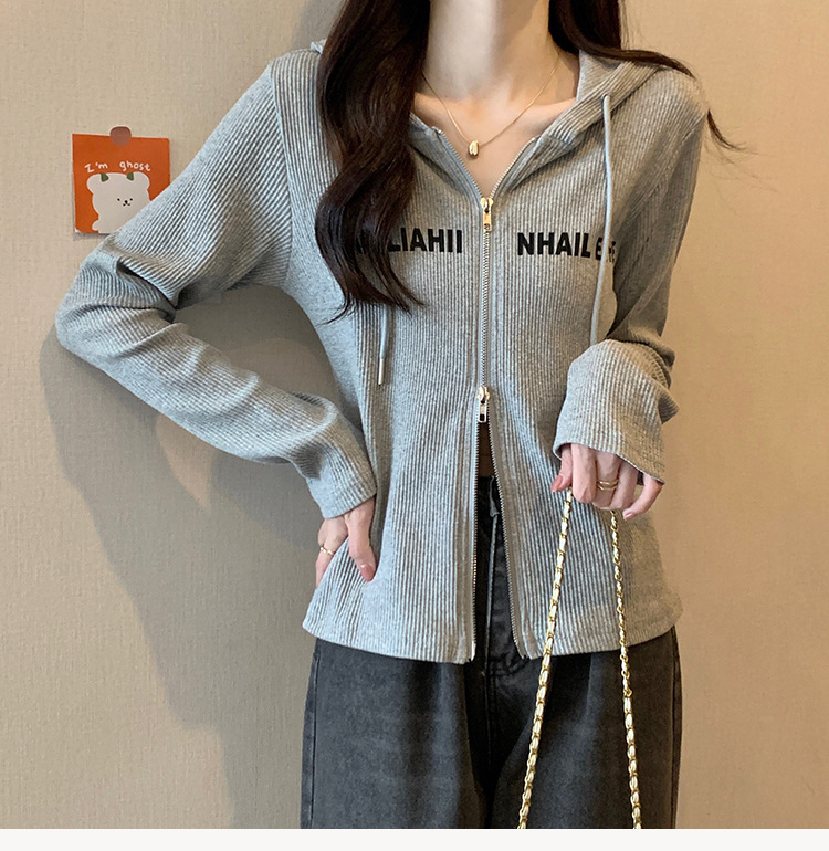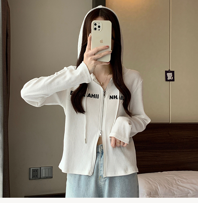 【原版做工】大码设计感小众双拉链连帽长袖T恤女秋季正肩显瘦上