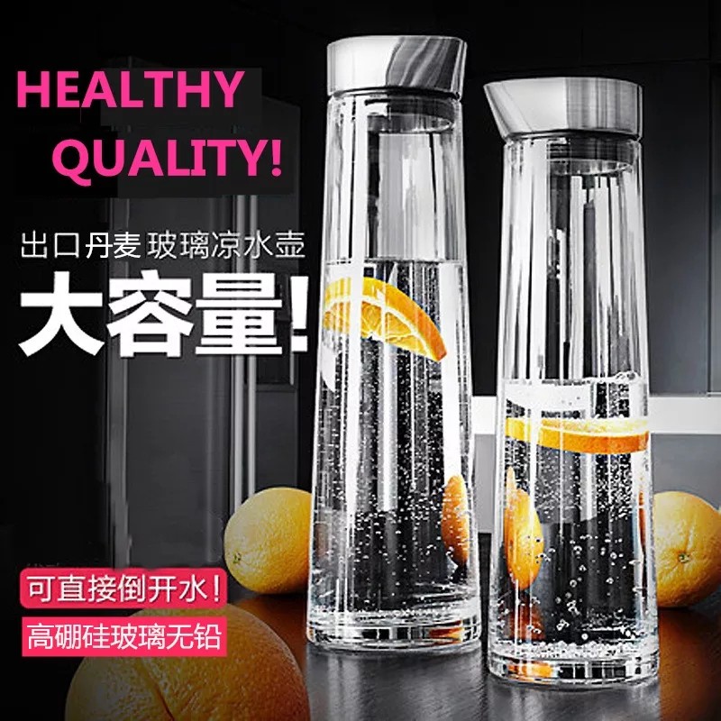 北欧加厚玻璃果汁壶耐热冷水杯大容量柠檬壶防侧漏带盖冷水夸张潮